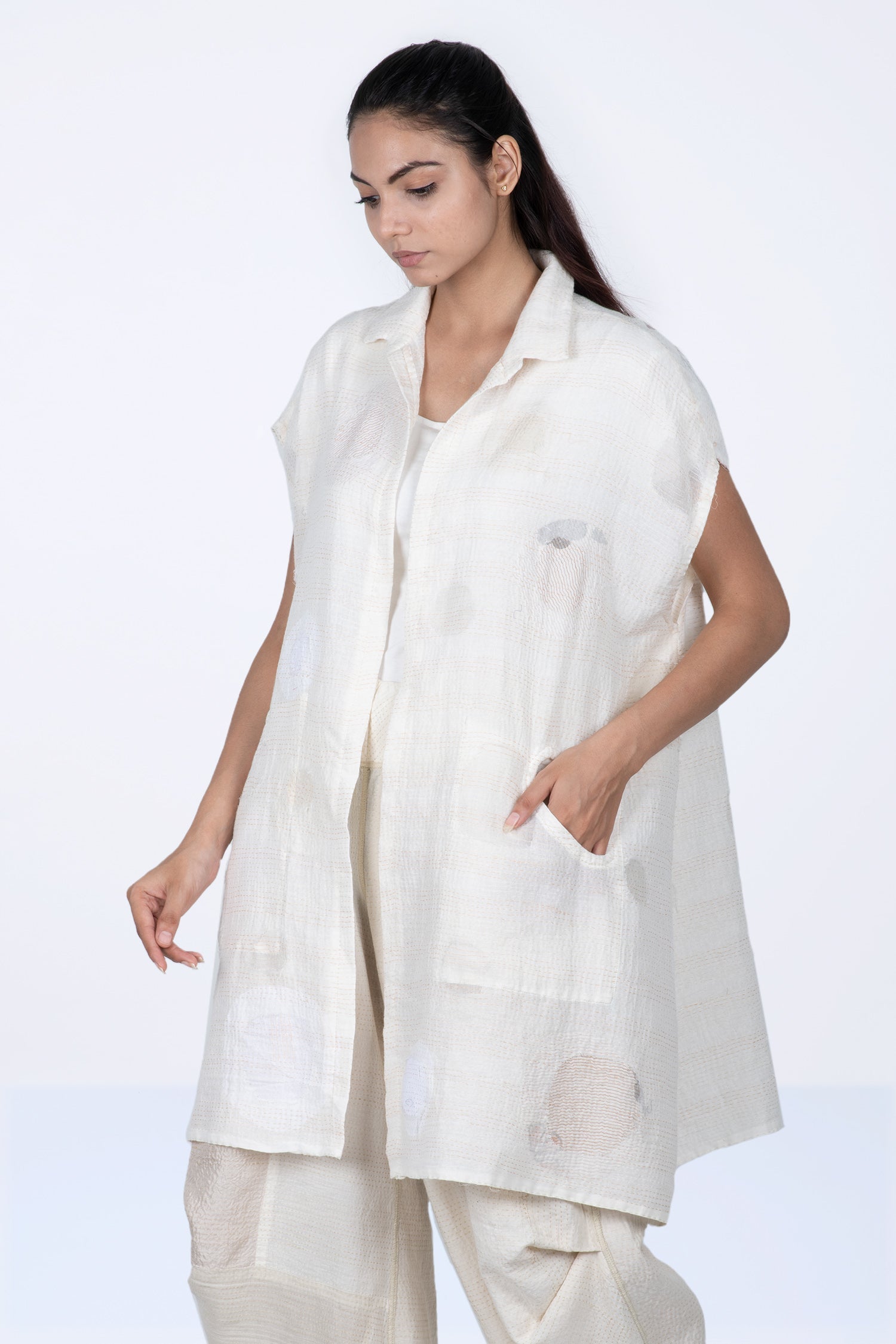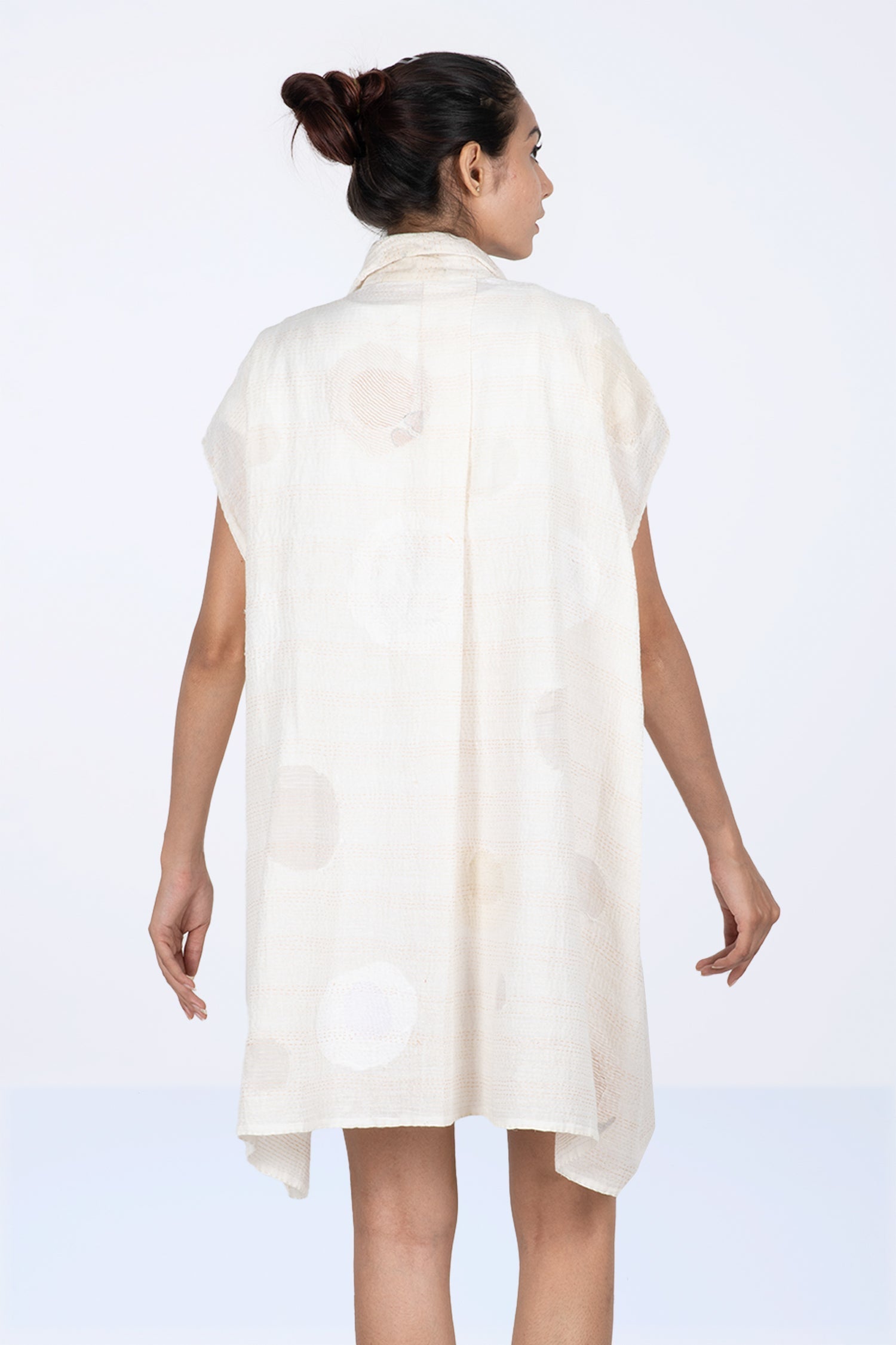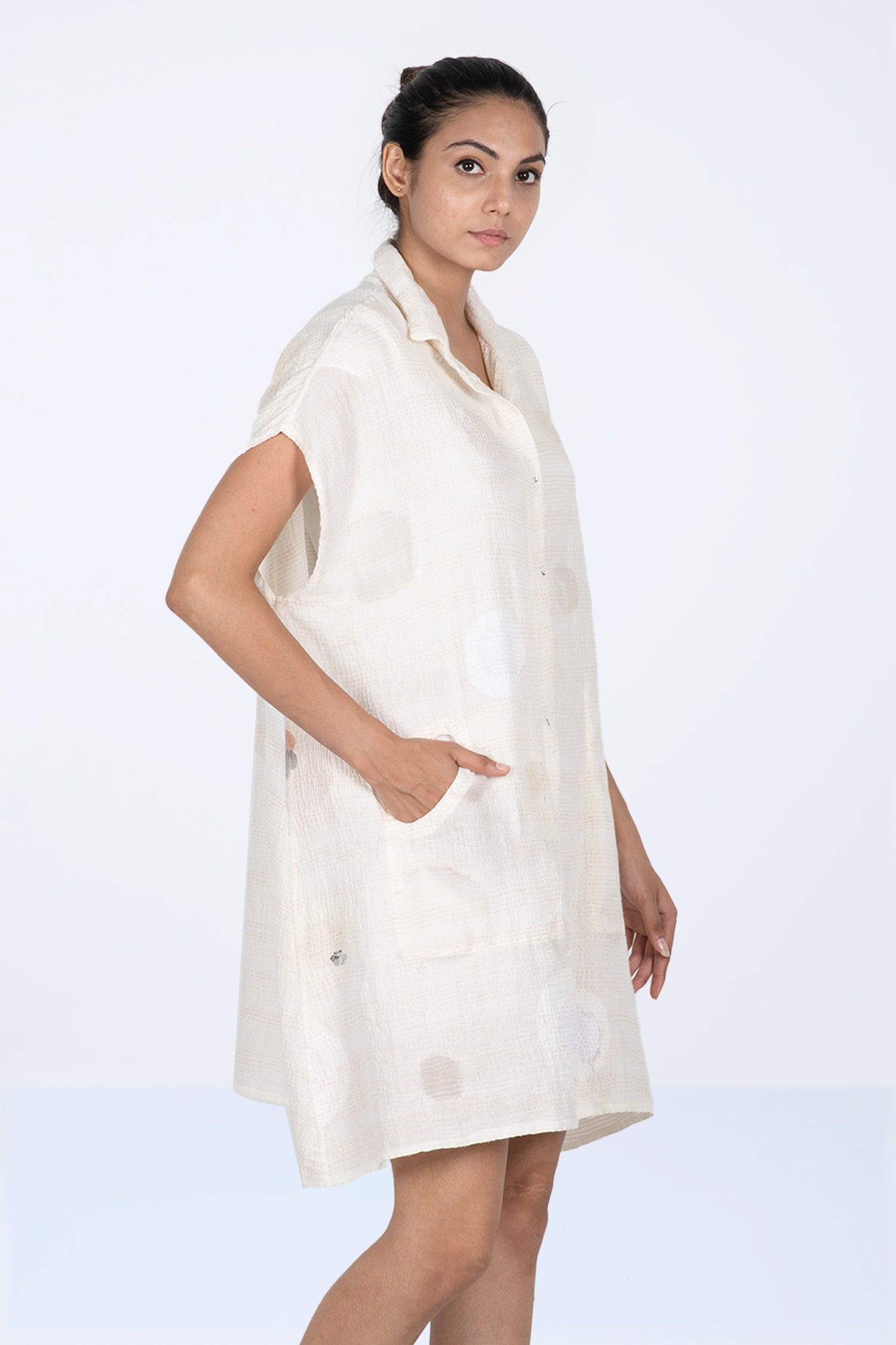 CUT THROUGH DOT AND HOLES KANTHA SHIRT DRESS - cd2426-ivy -