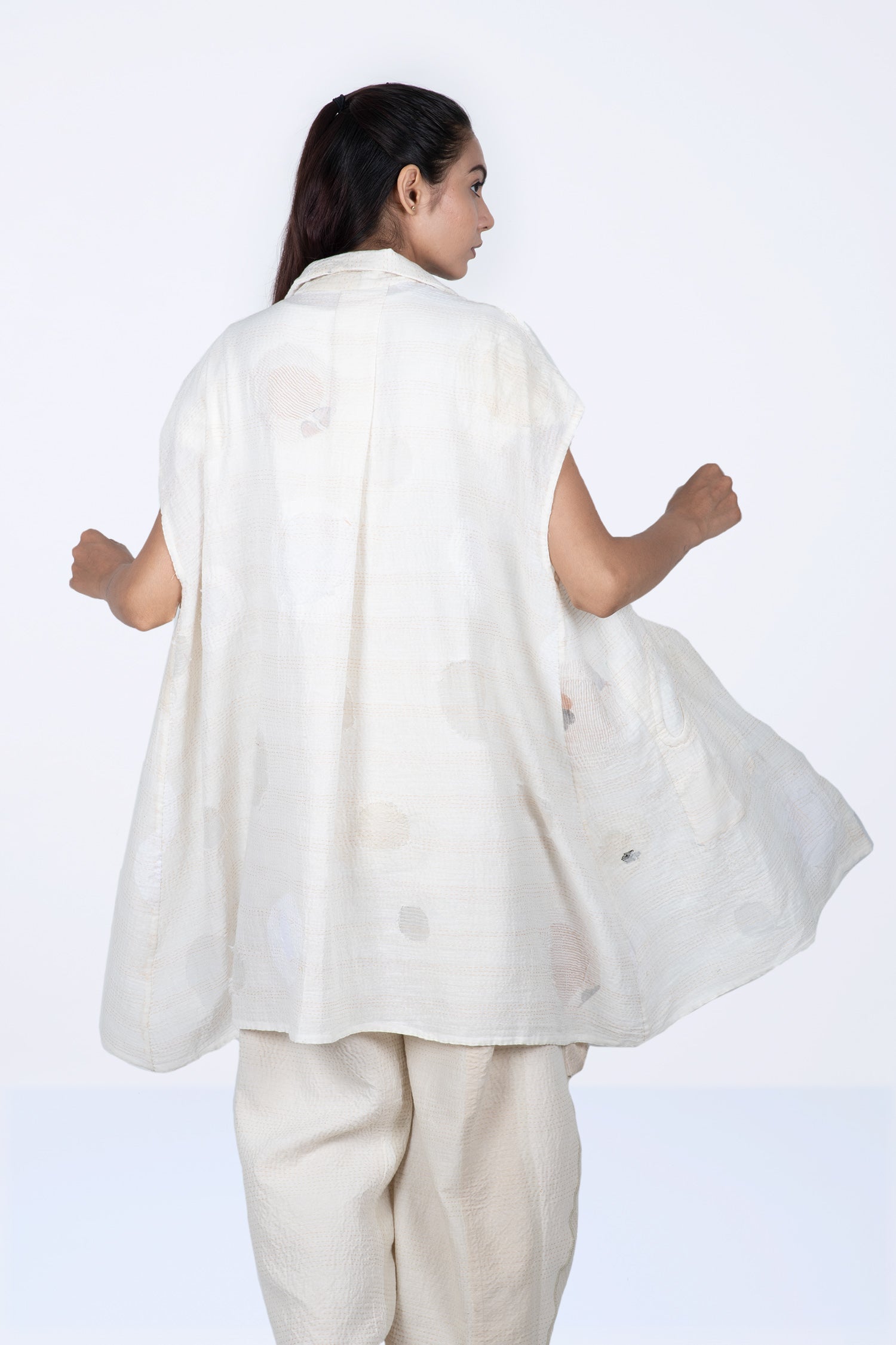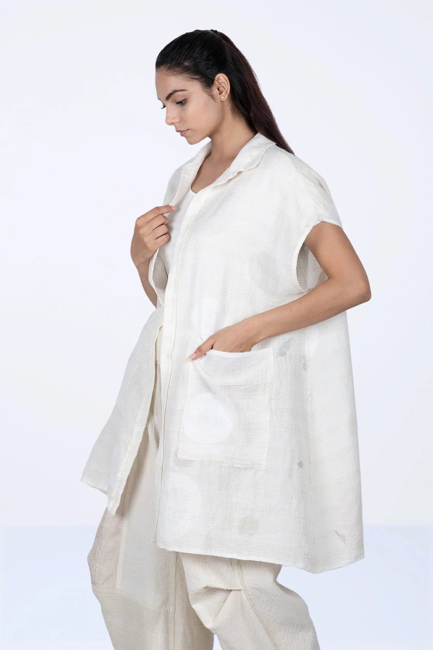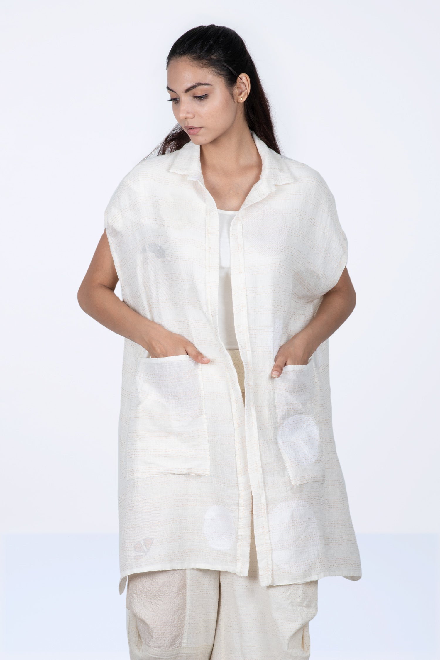 CUT THROUGH DOT AND HOLES KANTHA SHIRT DRESS - cd2426-ivy -