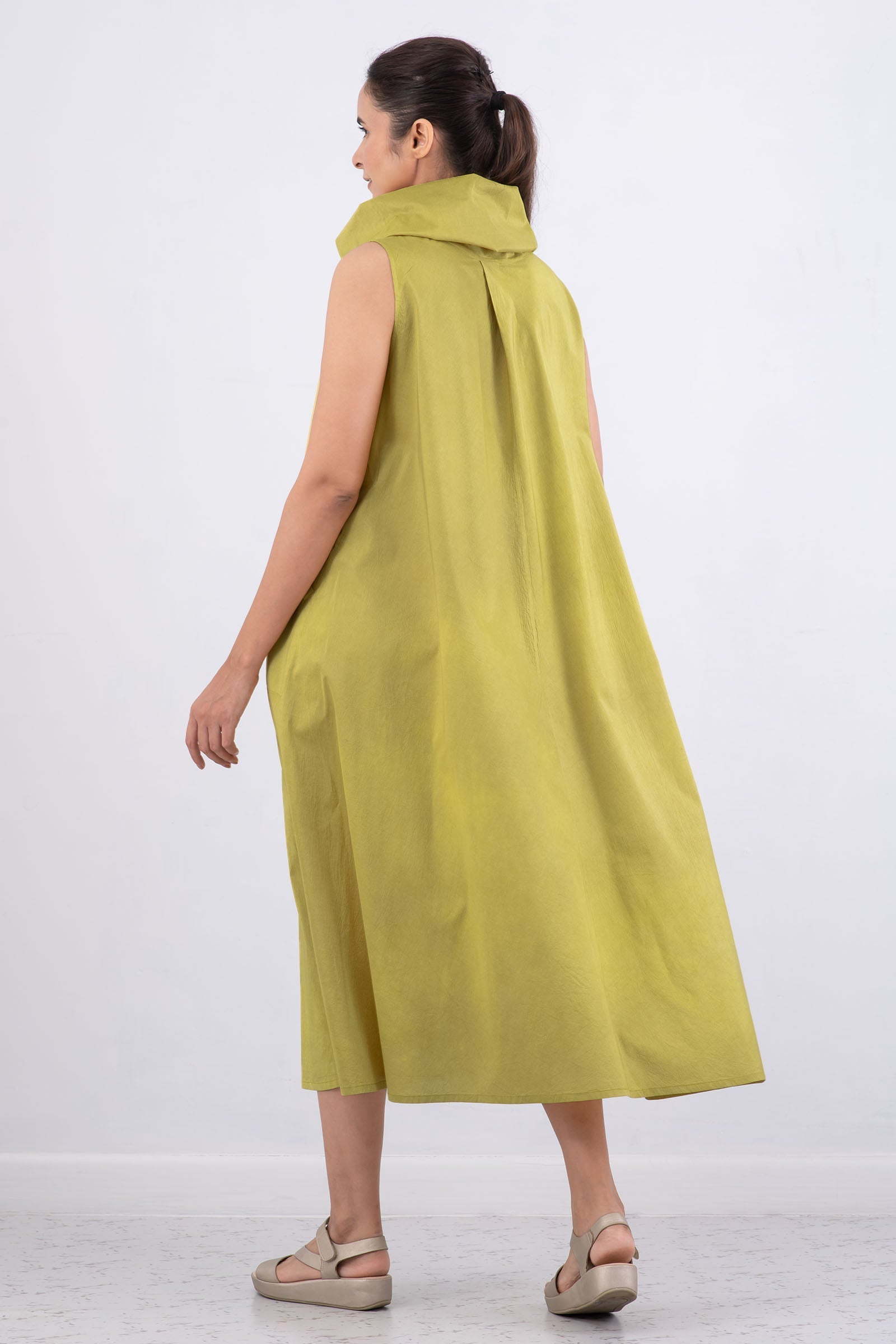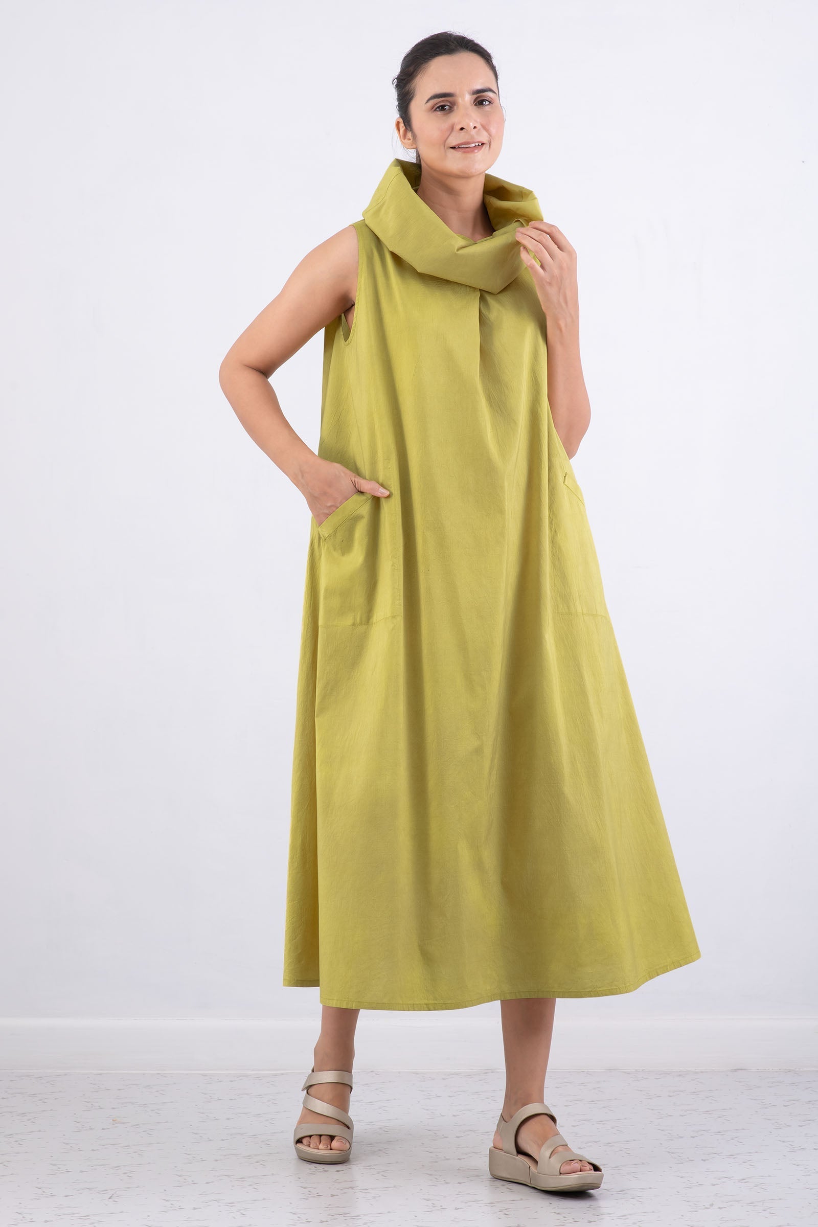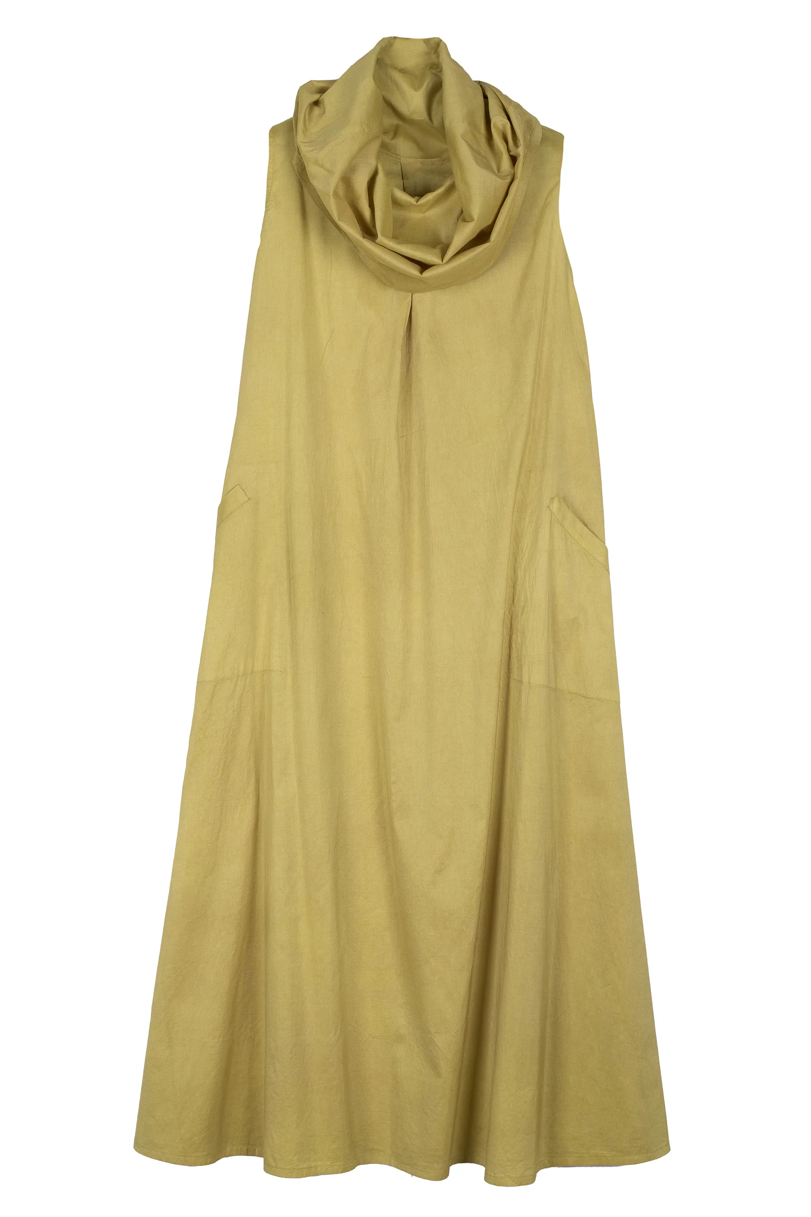 DYED COTTON SILK HEAVY VOILE WAVY COWL NECK MAXI DRESS - dh1438-cha -