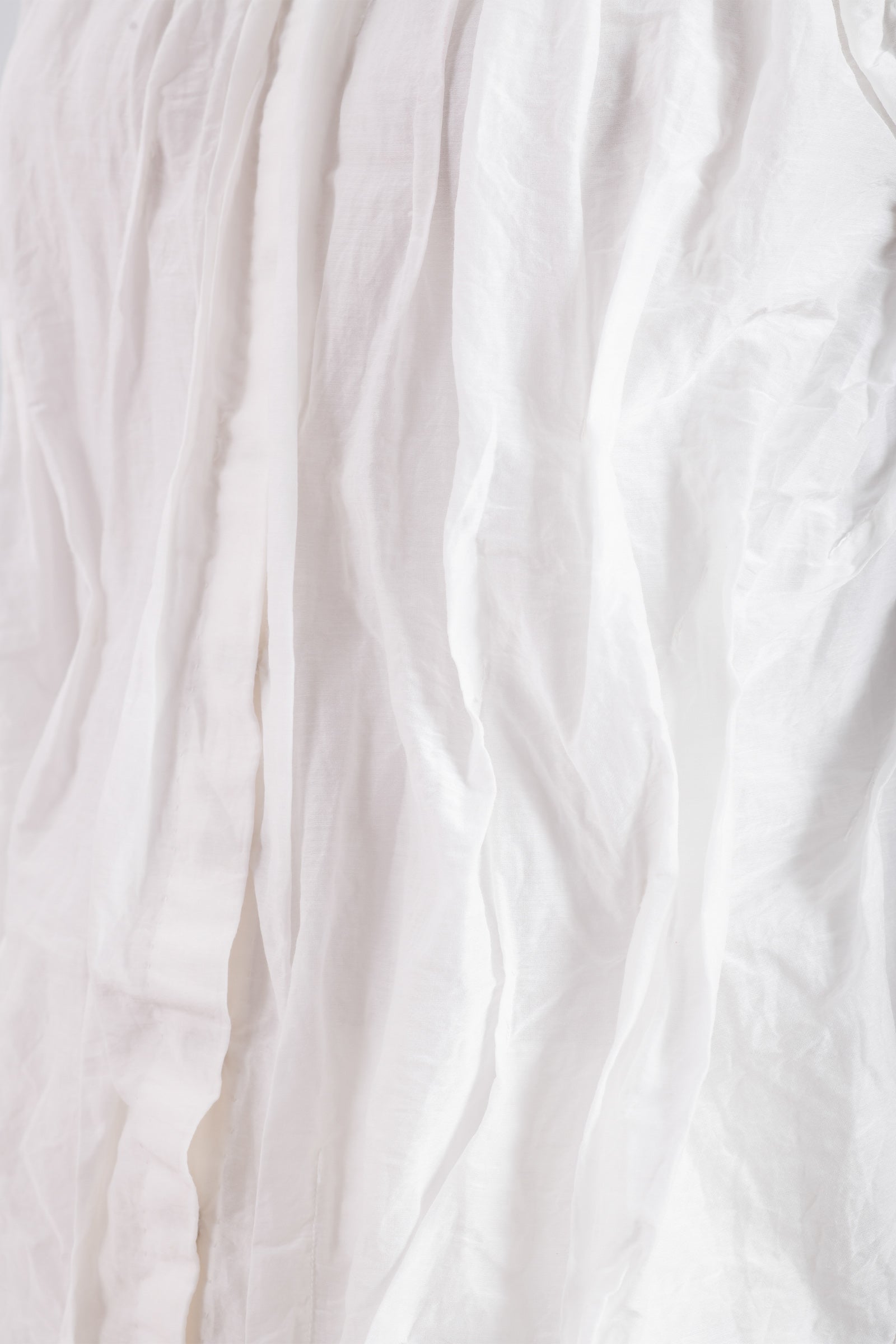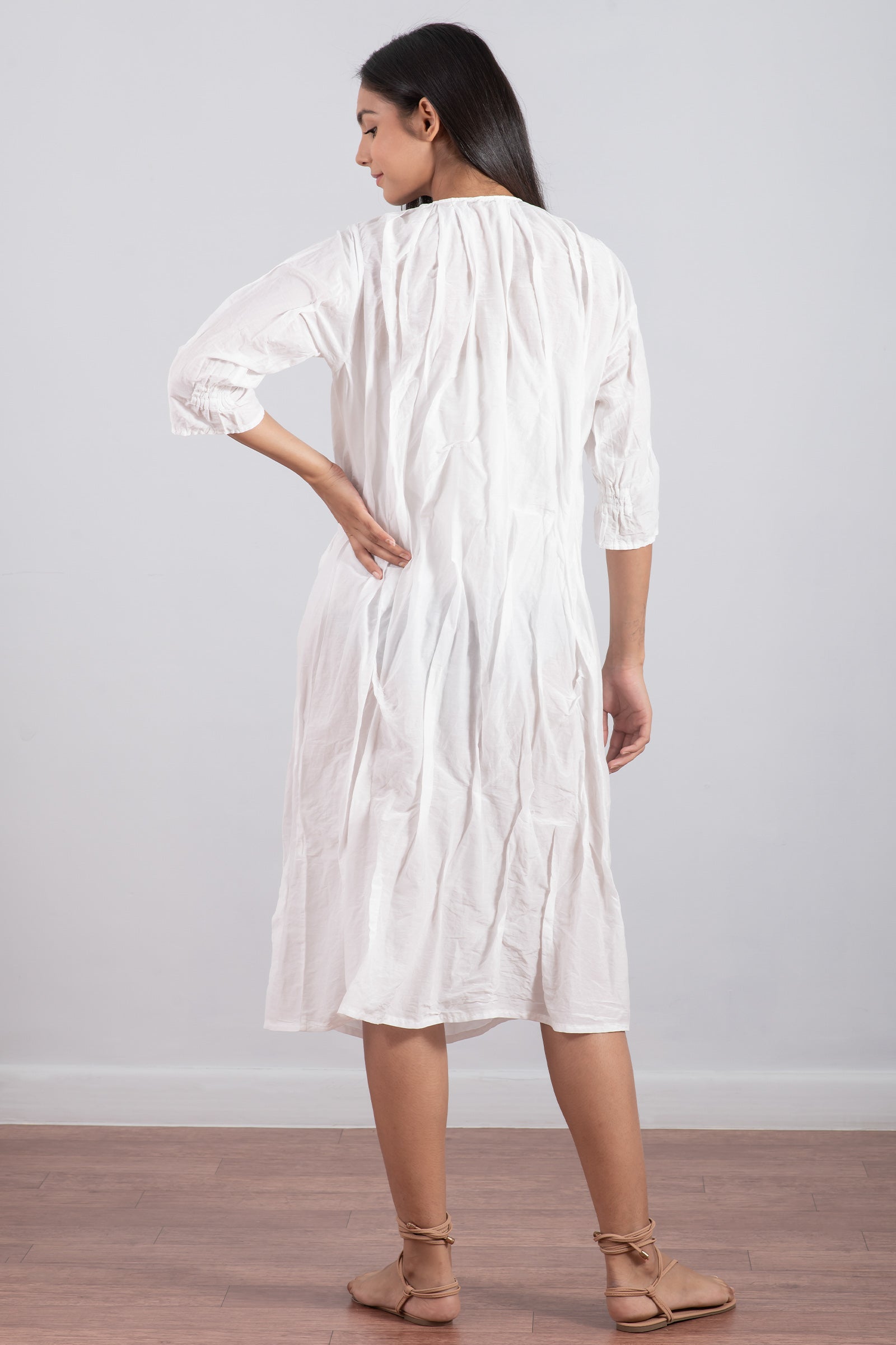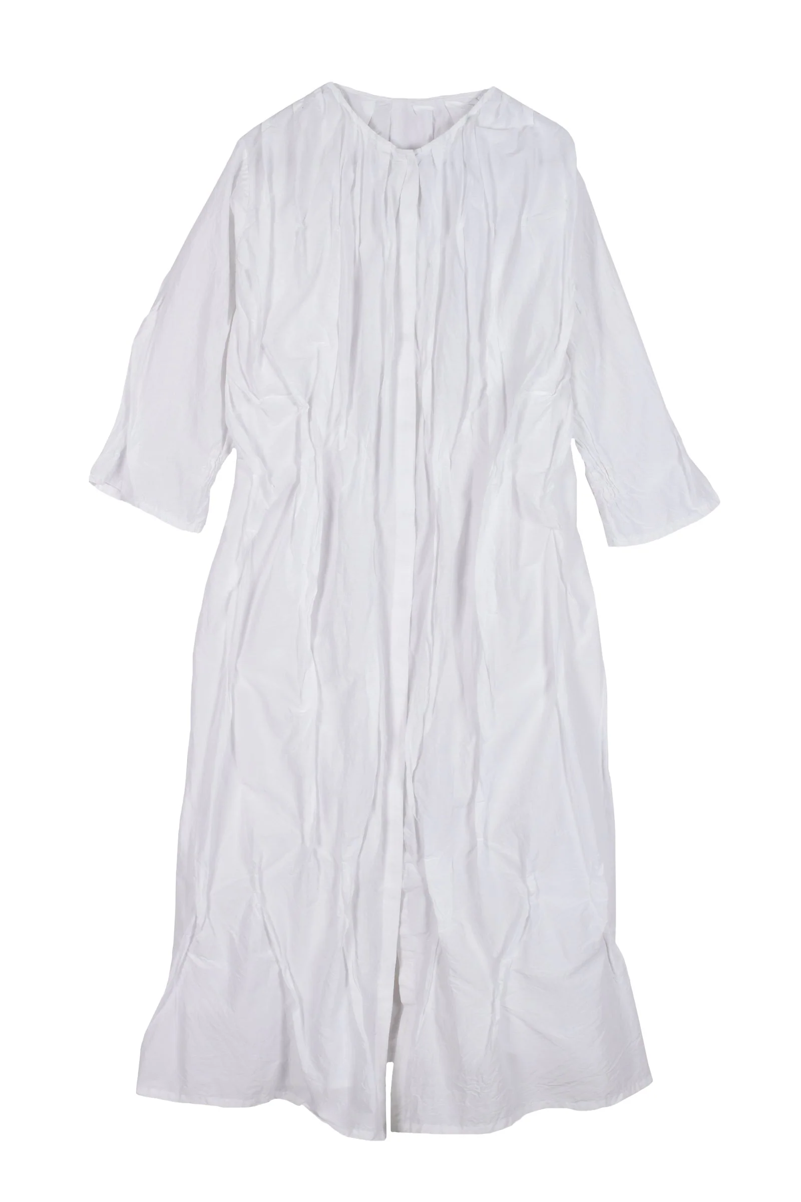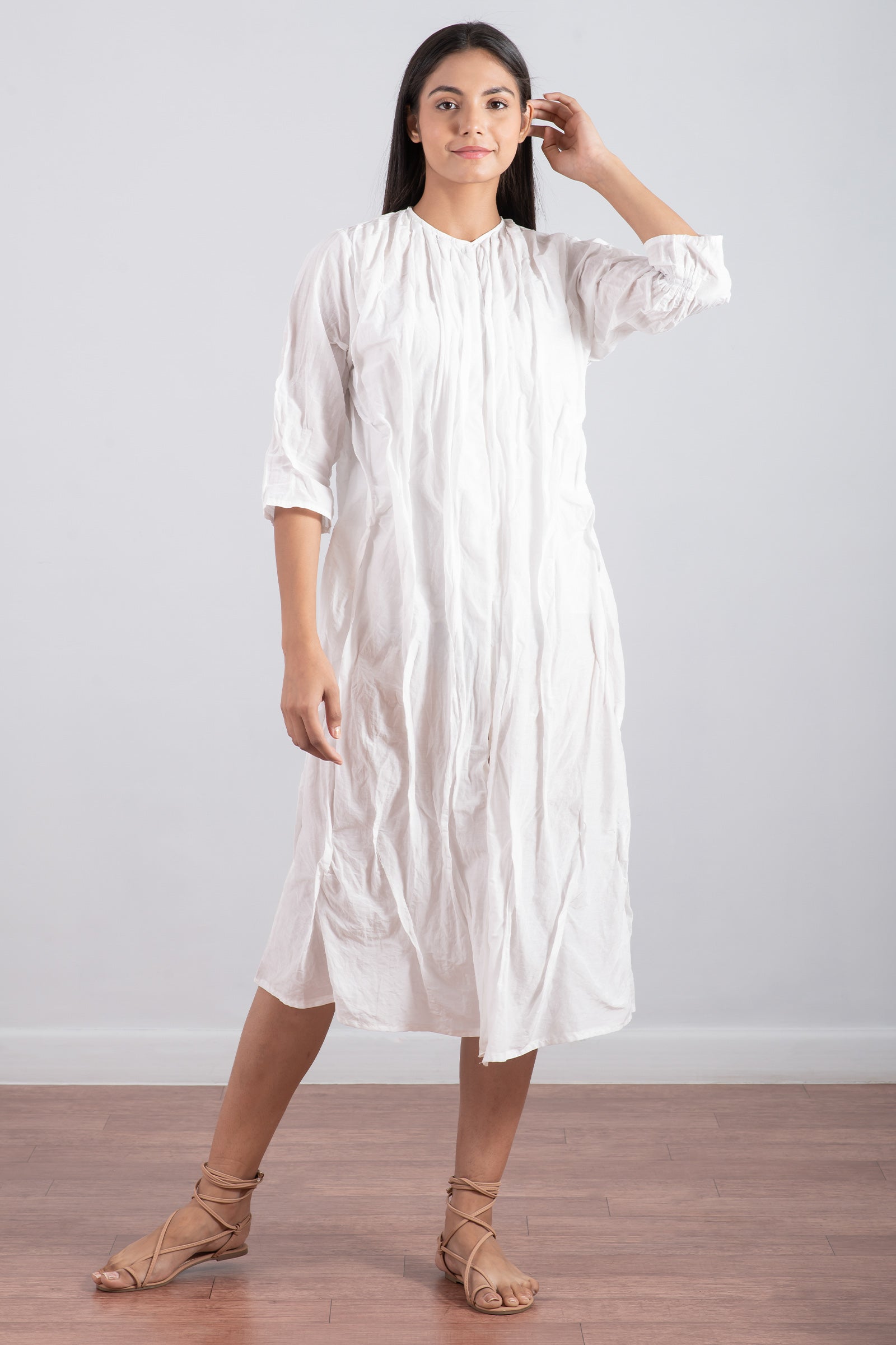 DYED COTTON SILK HEAVY VOILE WAVY TUCK CROPPED SLV. DRESS - dh1434-wht -