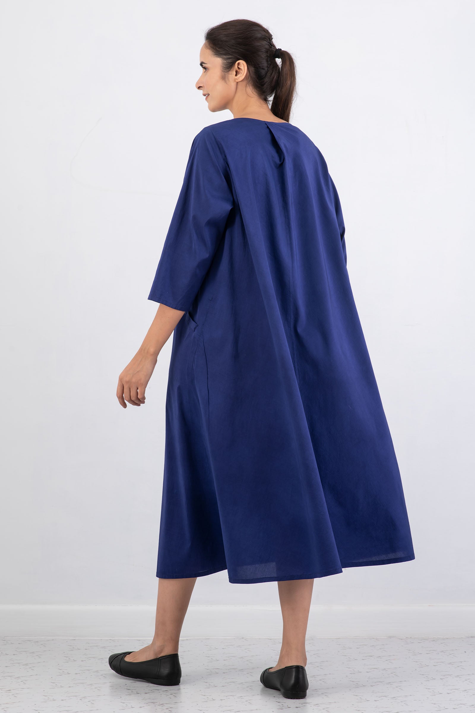 DYED COTTON SILK HEAVY VOILE WAVY V-NECK MAXI WITH SLEEVES - dh1441-blu -
