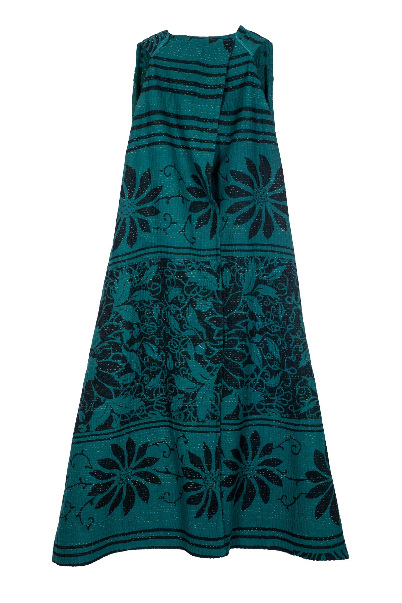 EMERALD GREEN KANTHA BACK PLEATED VEST MAX - eg4222-tel -