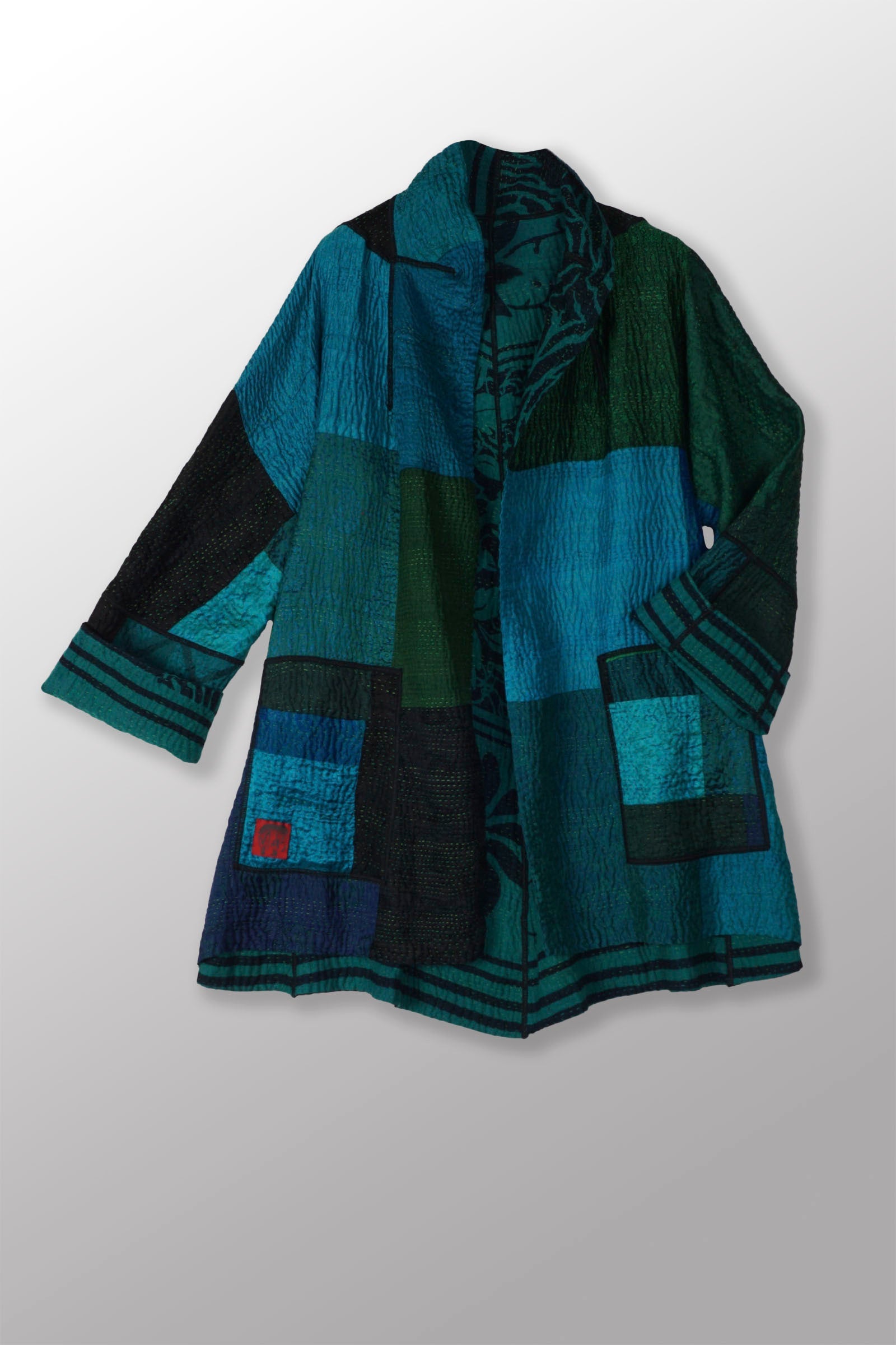 4 Layer Vintage Saris with Hand Stitches on Entire Garment - Reversible