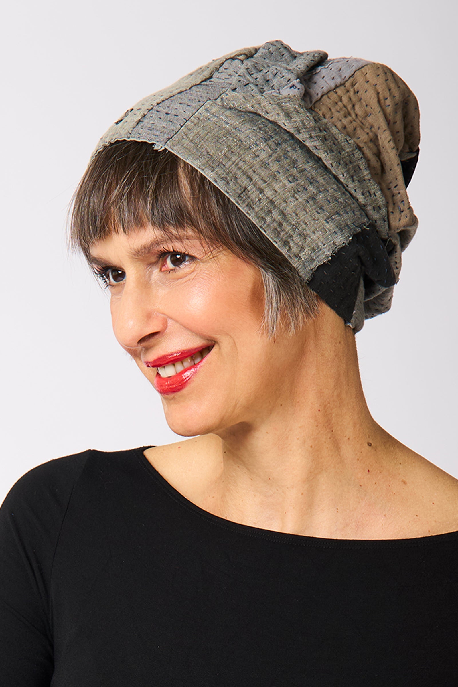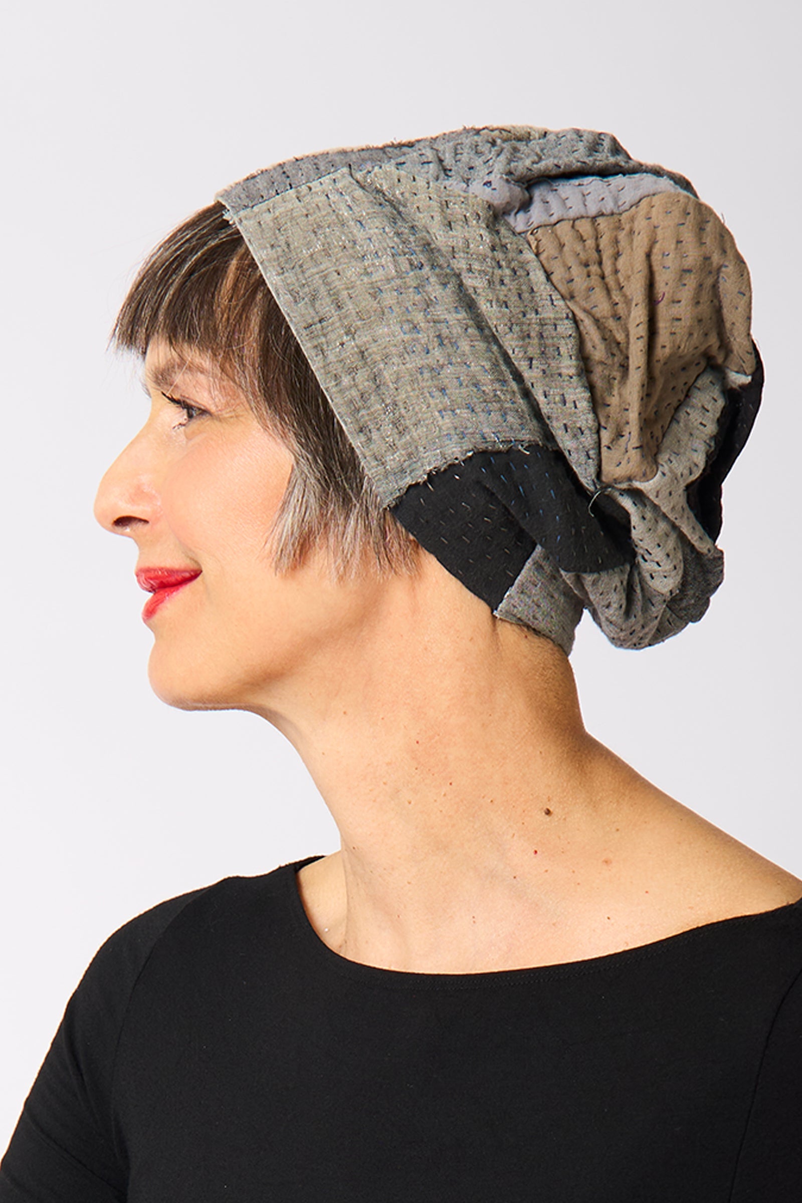 FRAYED PATCH KANTHA PATCHWORK HAT - fi4880-glk -