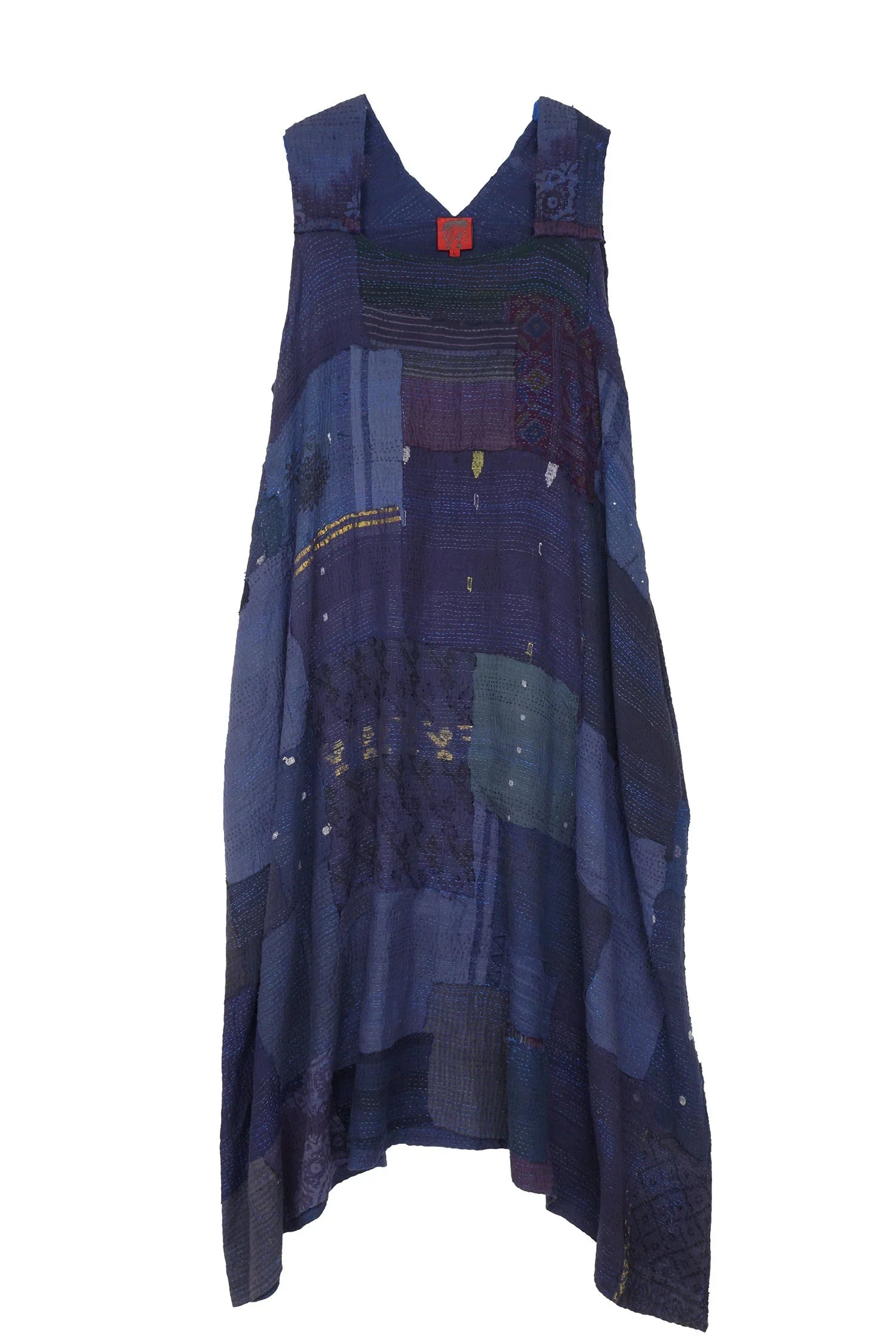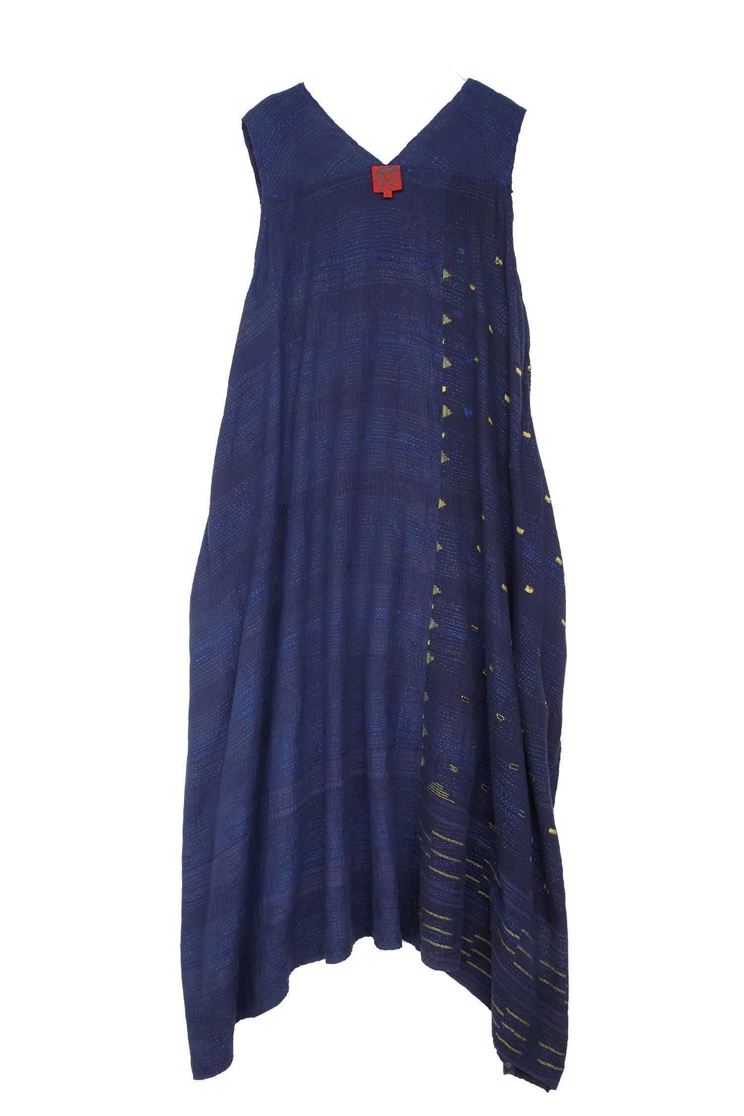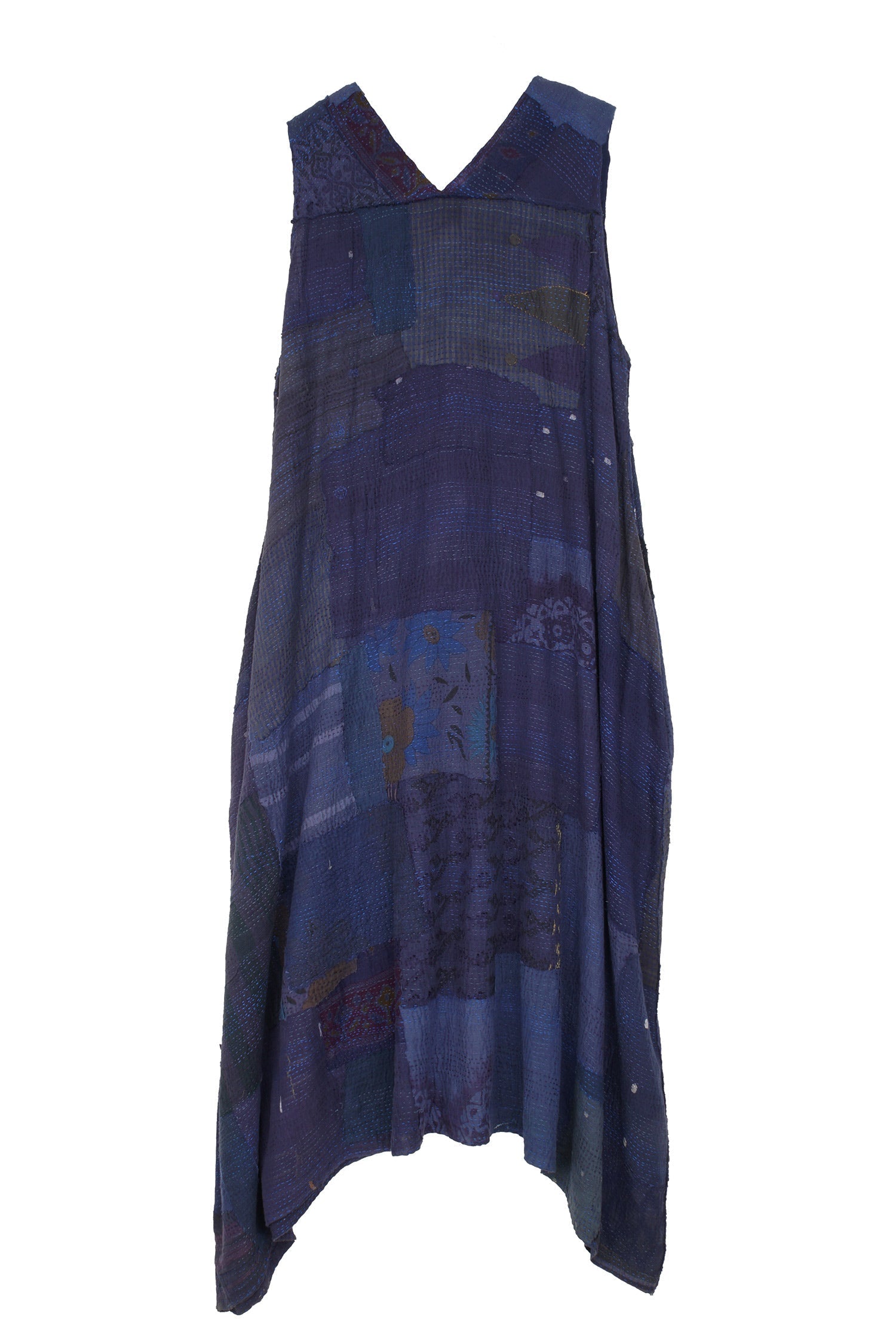 FRAYED PATCH KANTHA TENT DRESS - fi2413-nvy -