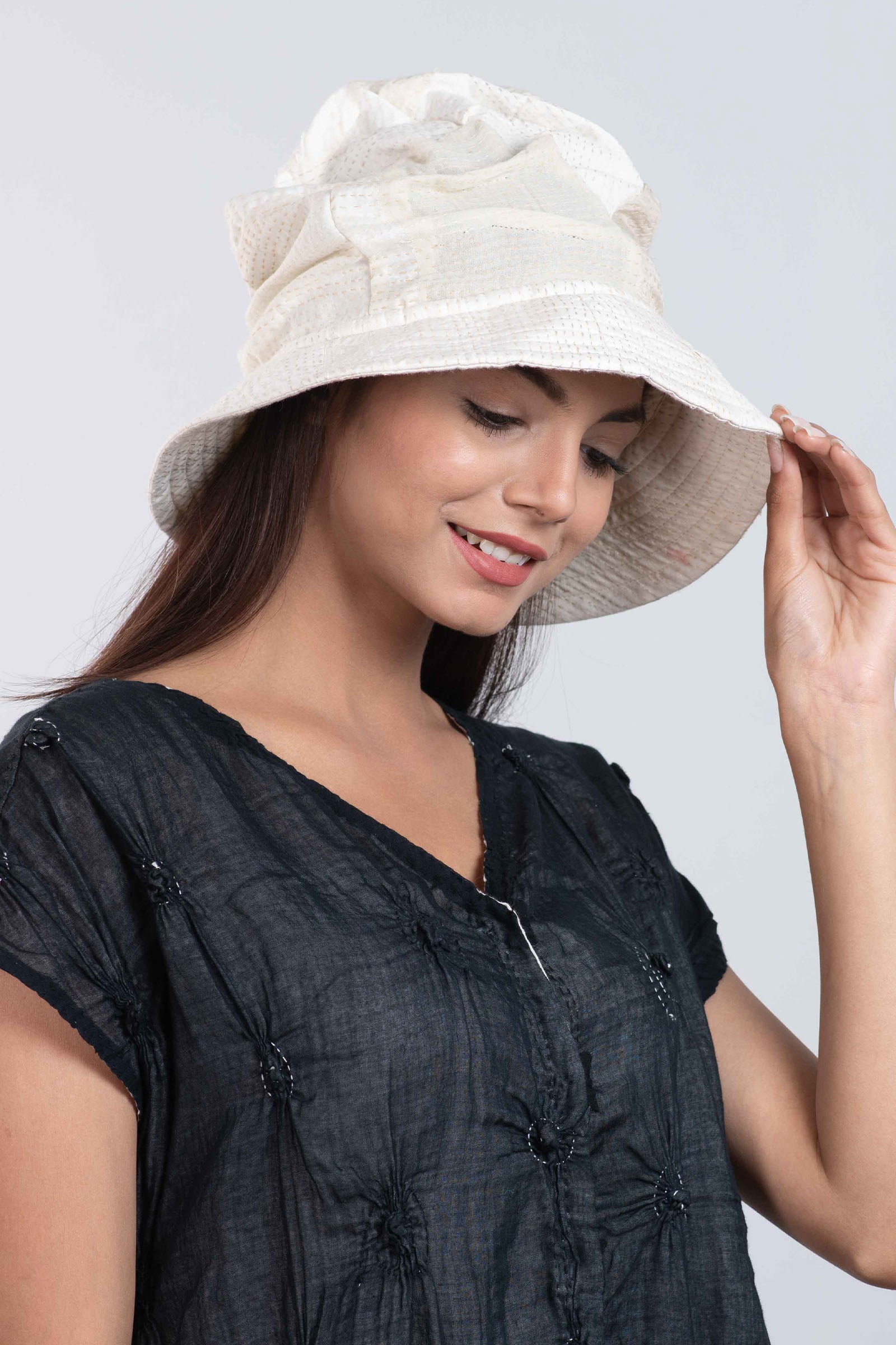 JAIPUR WHITE KANTHA FULL BRIM HAT - jw2889-ivy -