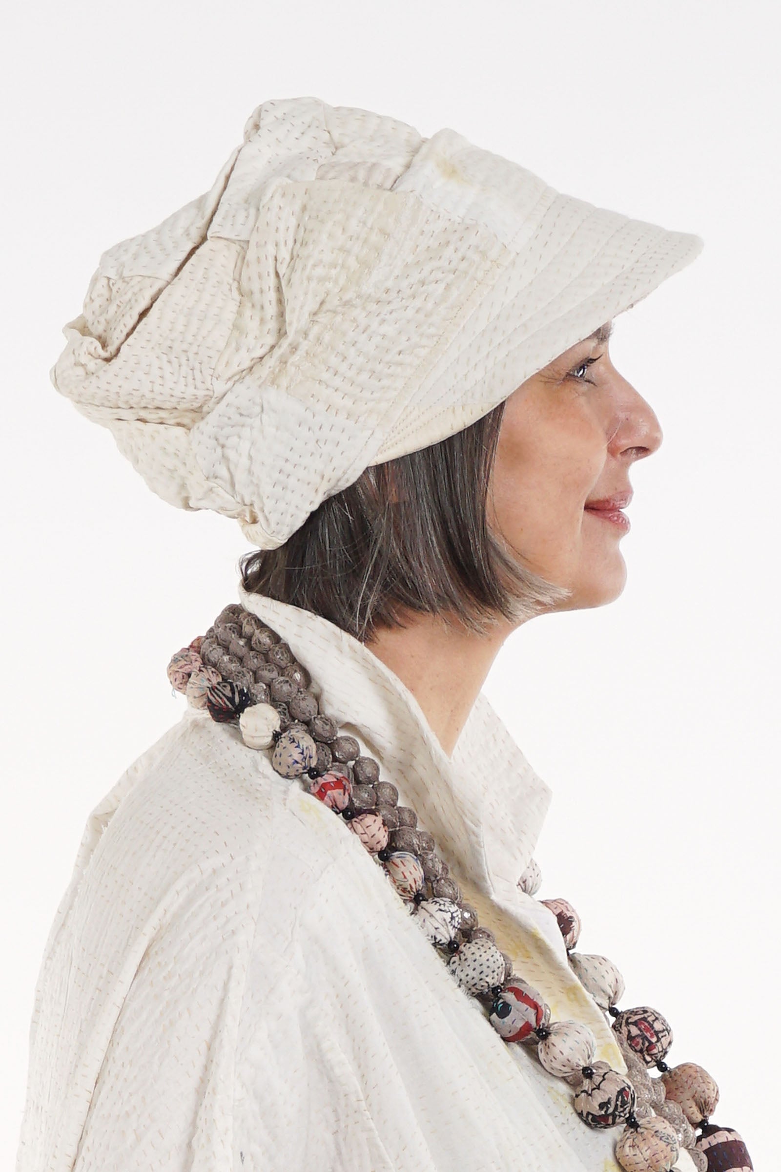JAIPUR WHITE KANTHA HALF BRIM HAT - jw4881-ivy -