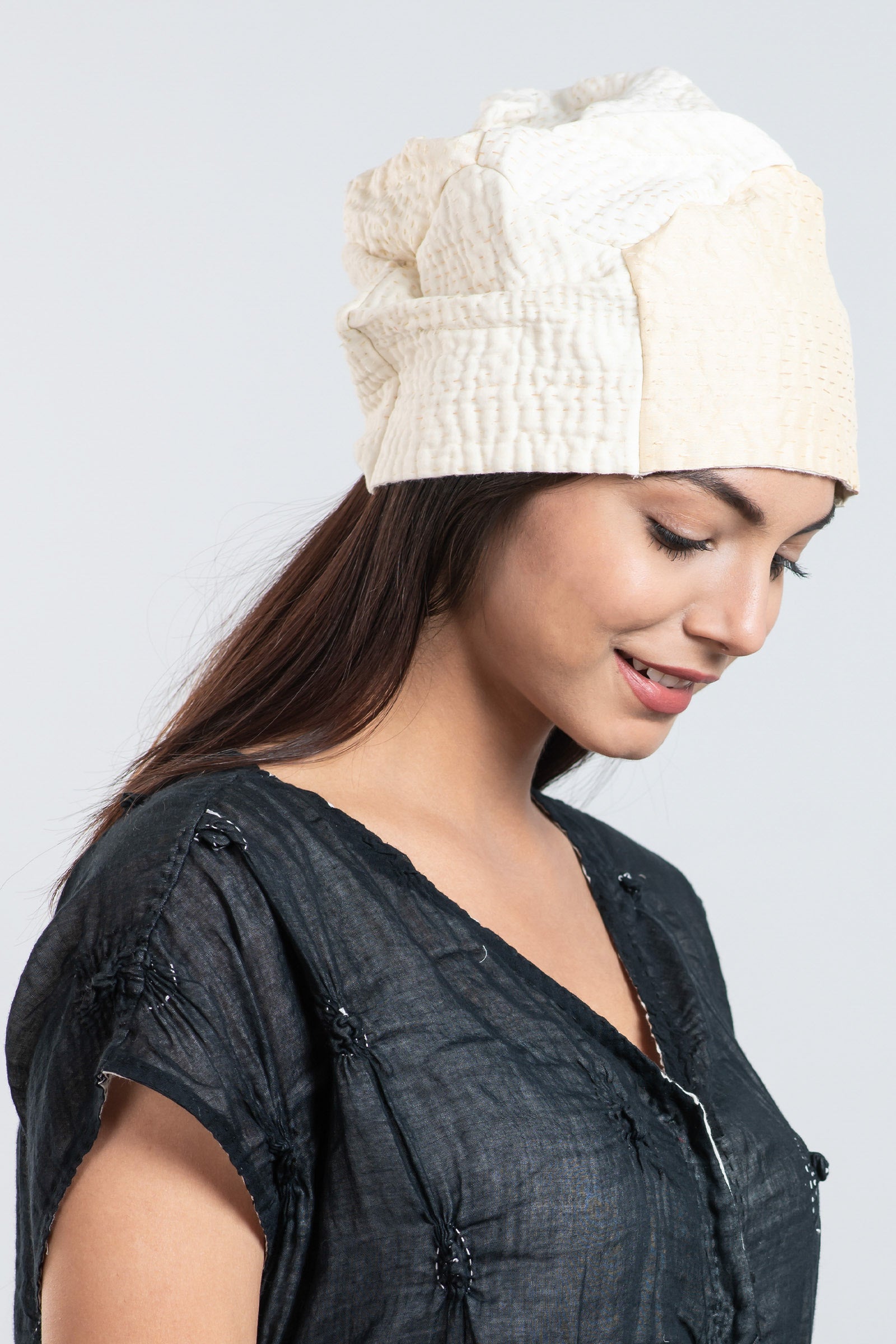 JAIPUR WHITE KANTHA PATCHWORK HAT - jw4880-ivy -