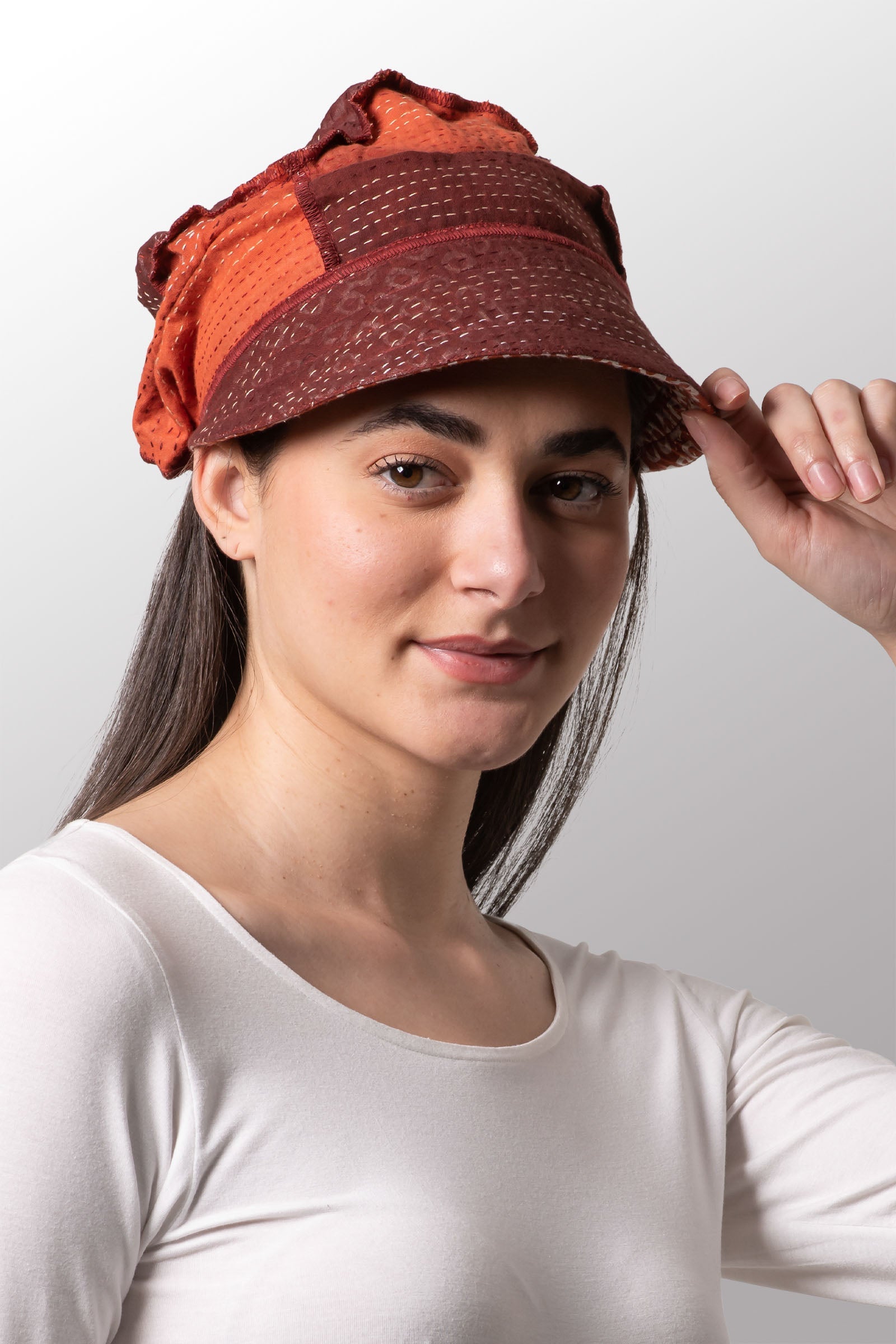 KIMONO COTTON KANTHA HALF BRIM HAT - kc2881-org -