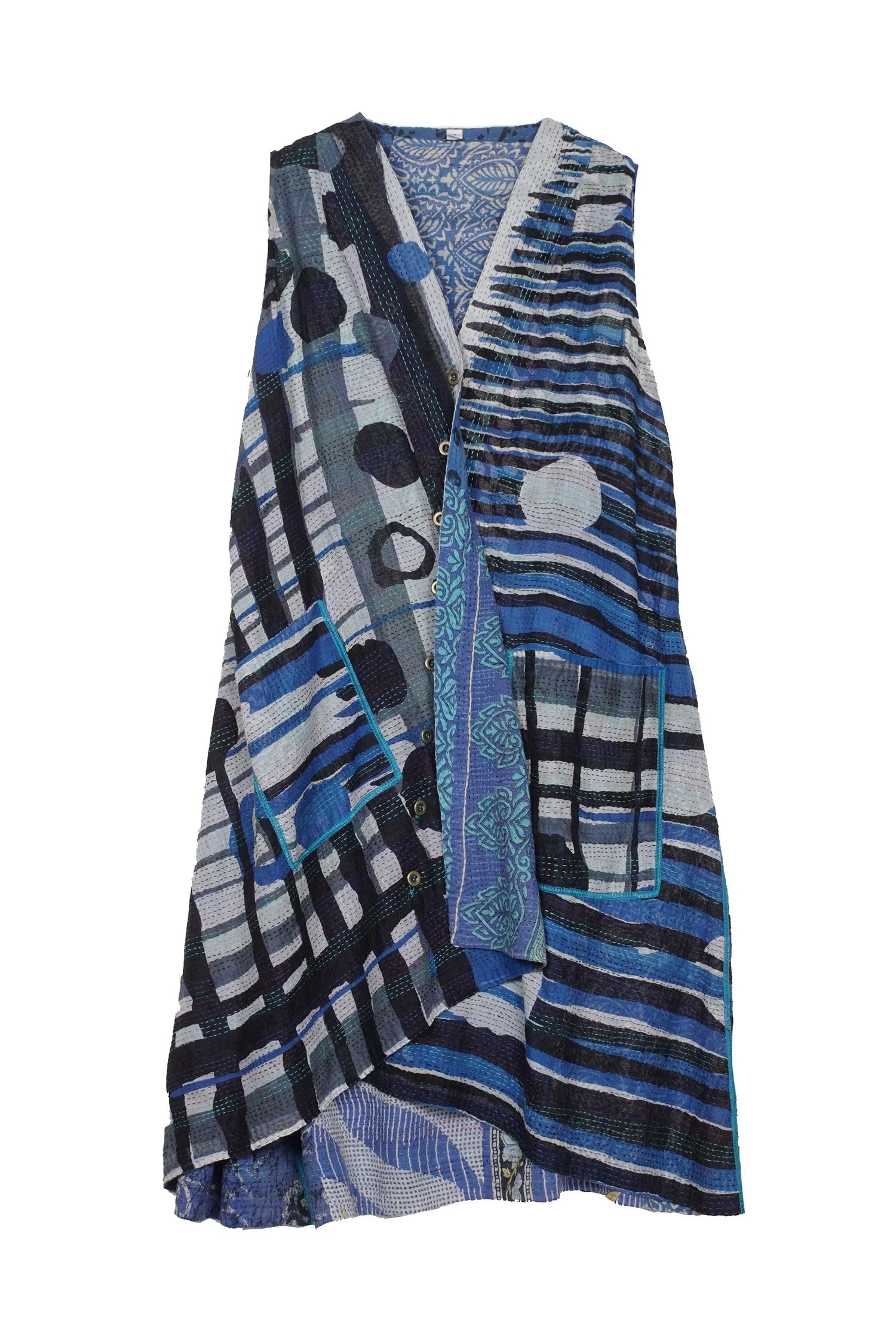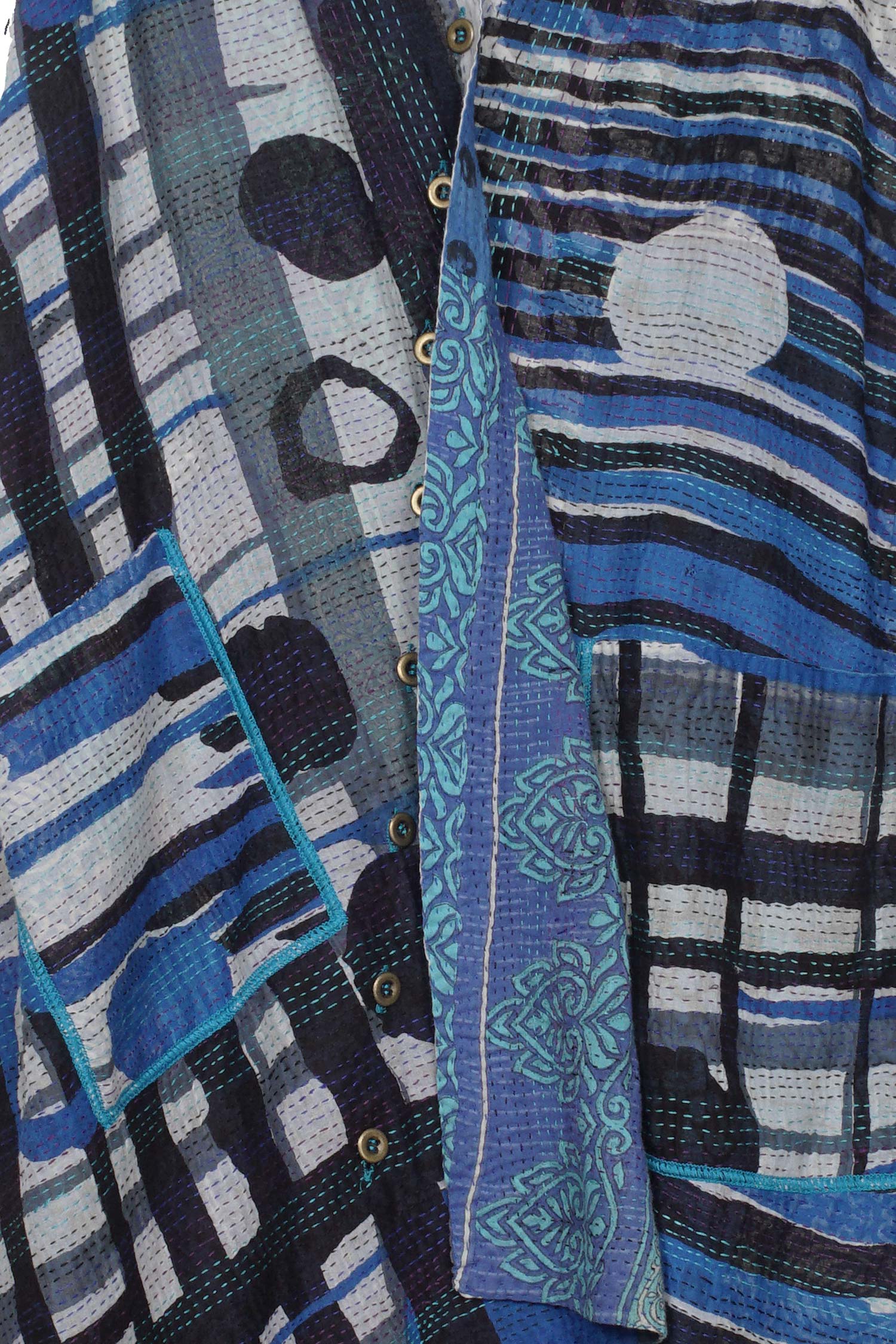2 Layer Vintage Saris with Hand Stitches on Entire Garment - Reversible
