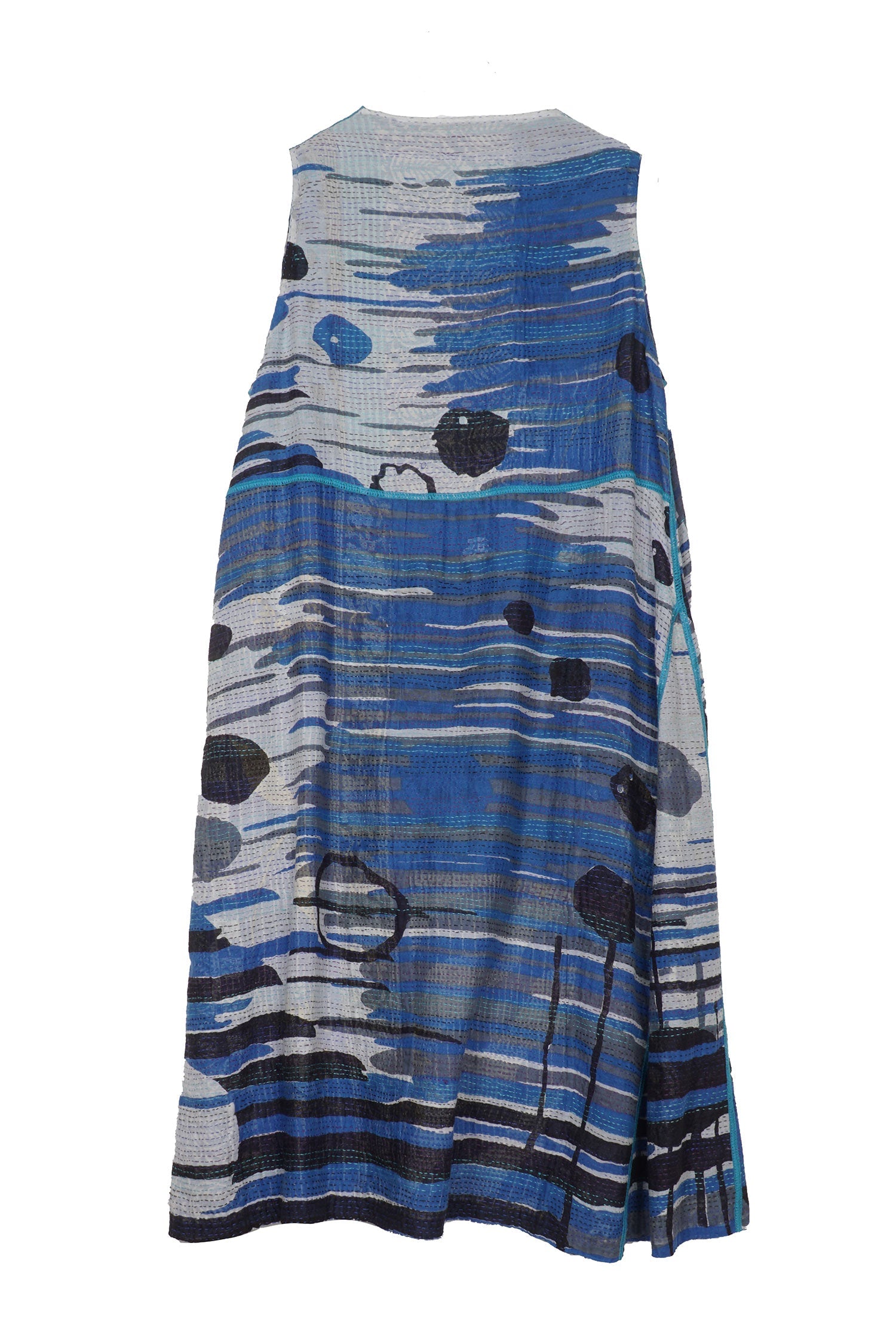 LAKESIDE PRINT KANTHA WRAP DRESS - lp2411-blu -