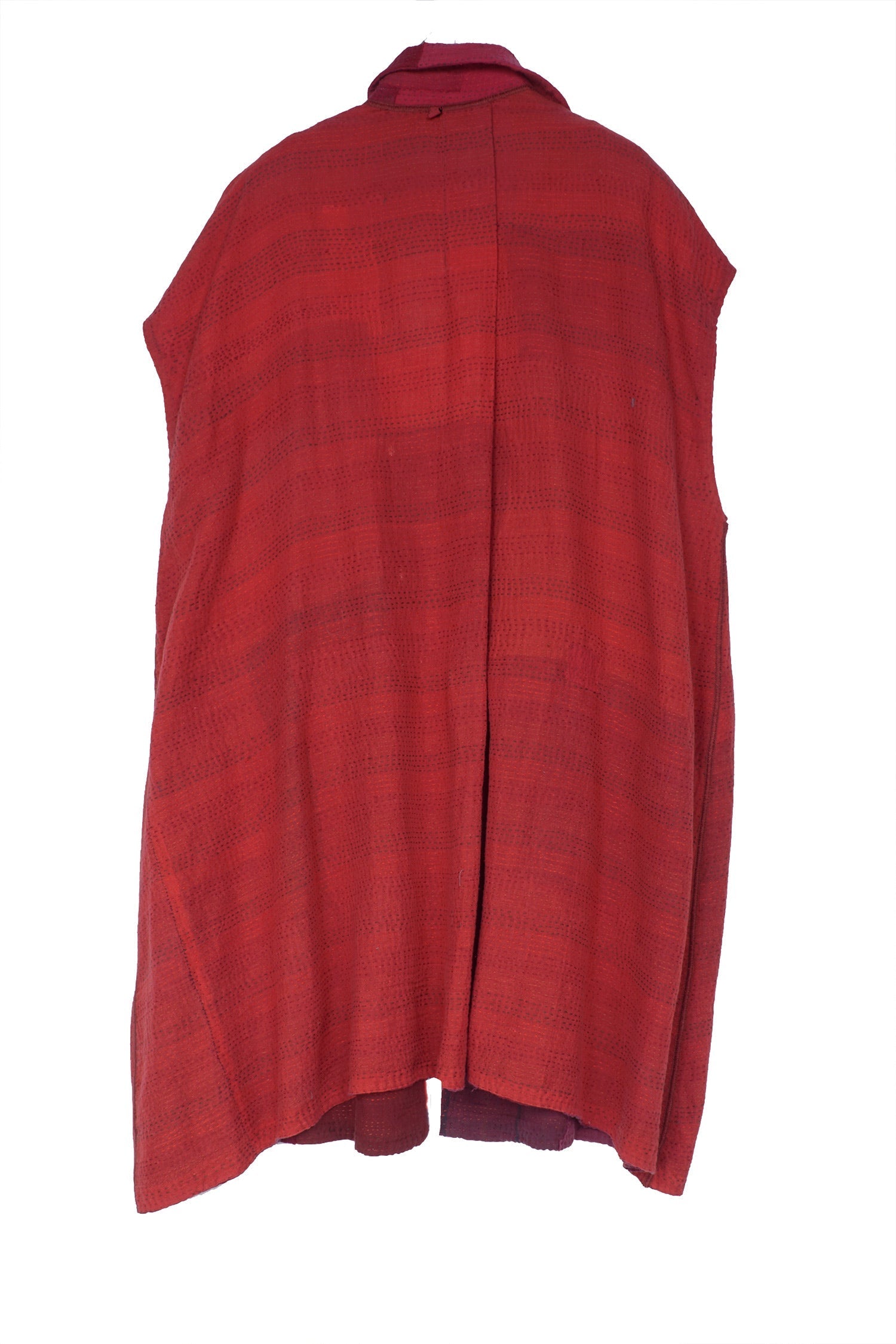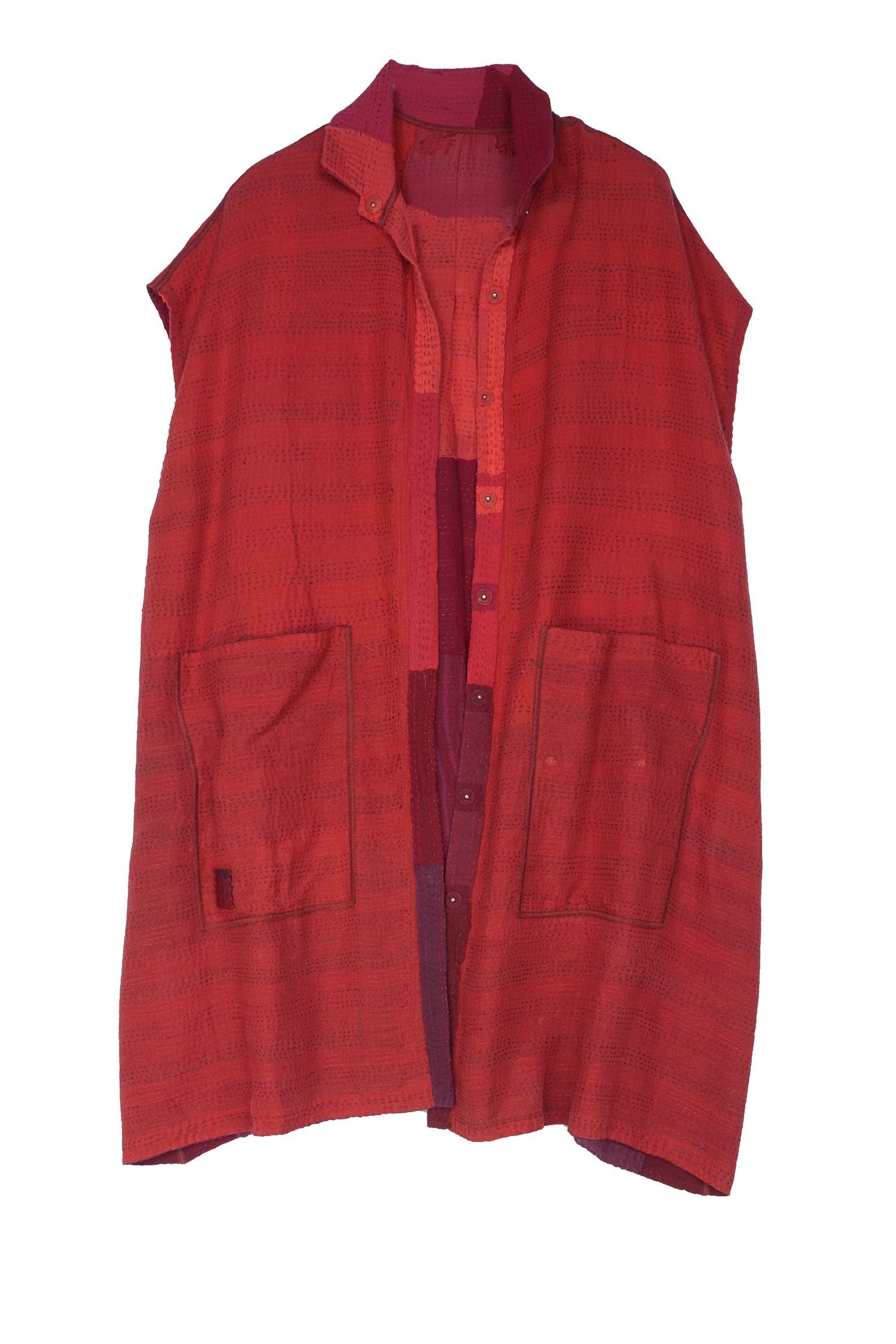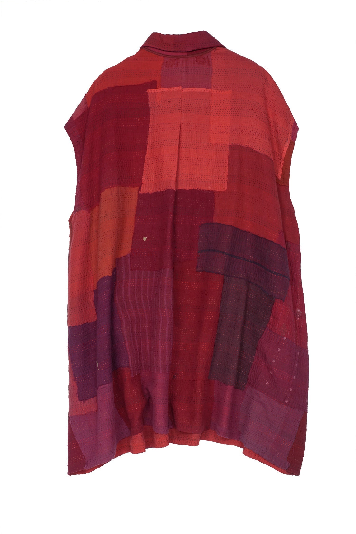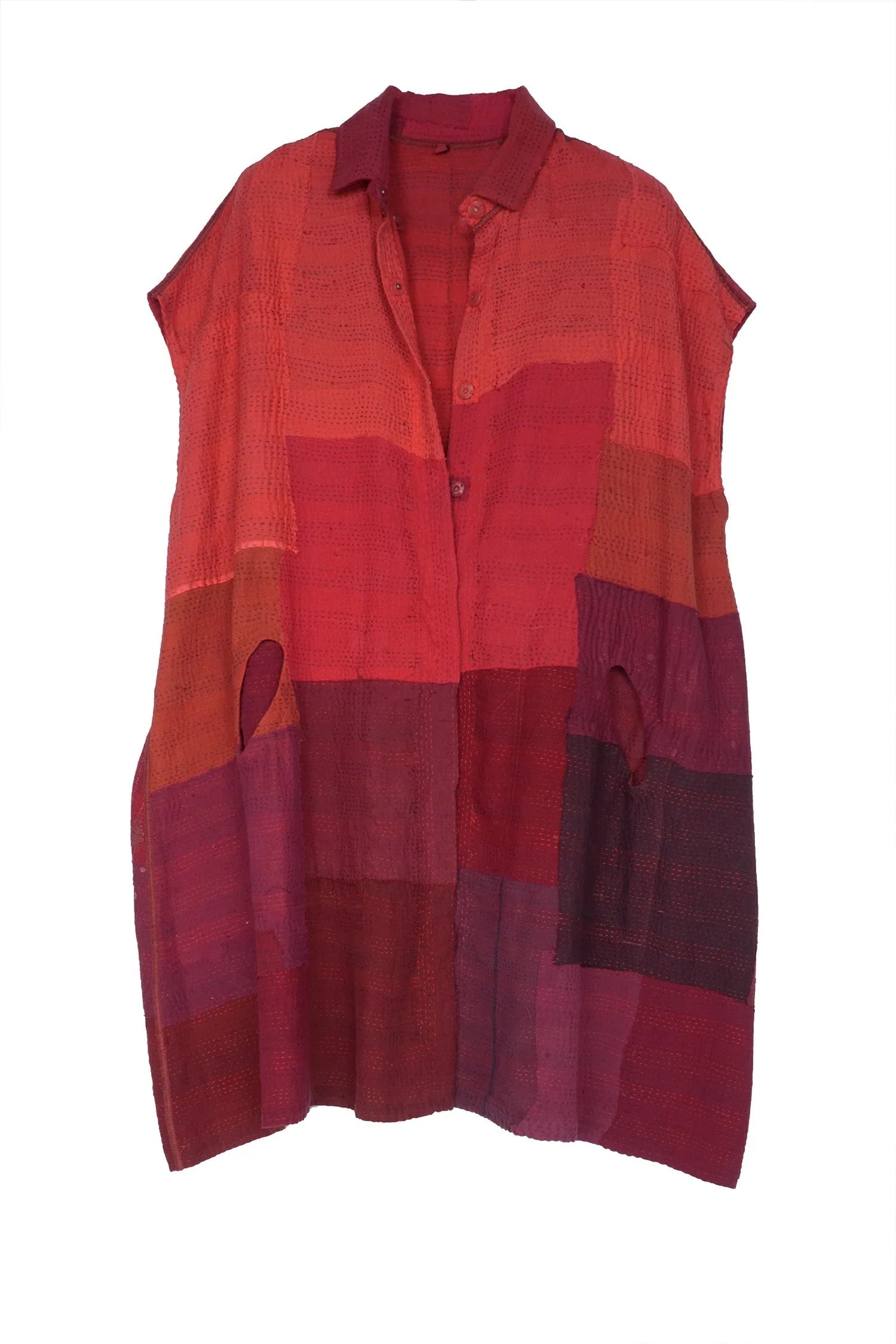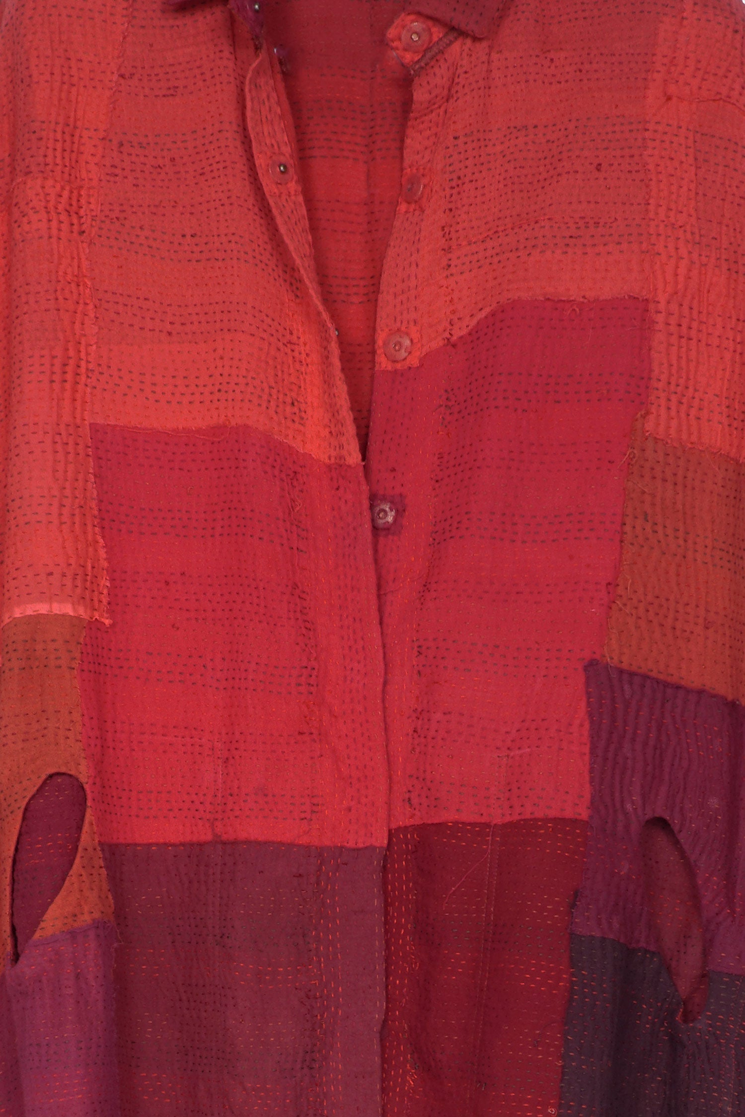 LANDSCAPE FRAYED PATCH KANTHA SHIRT DRESS - lf2426-red -