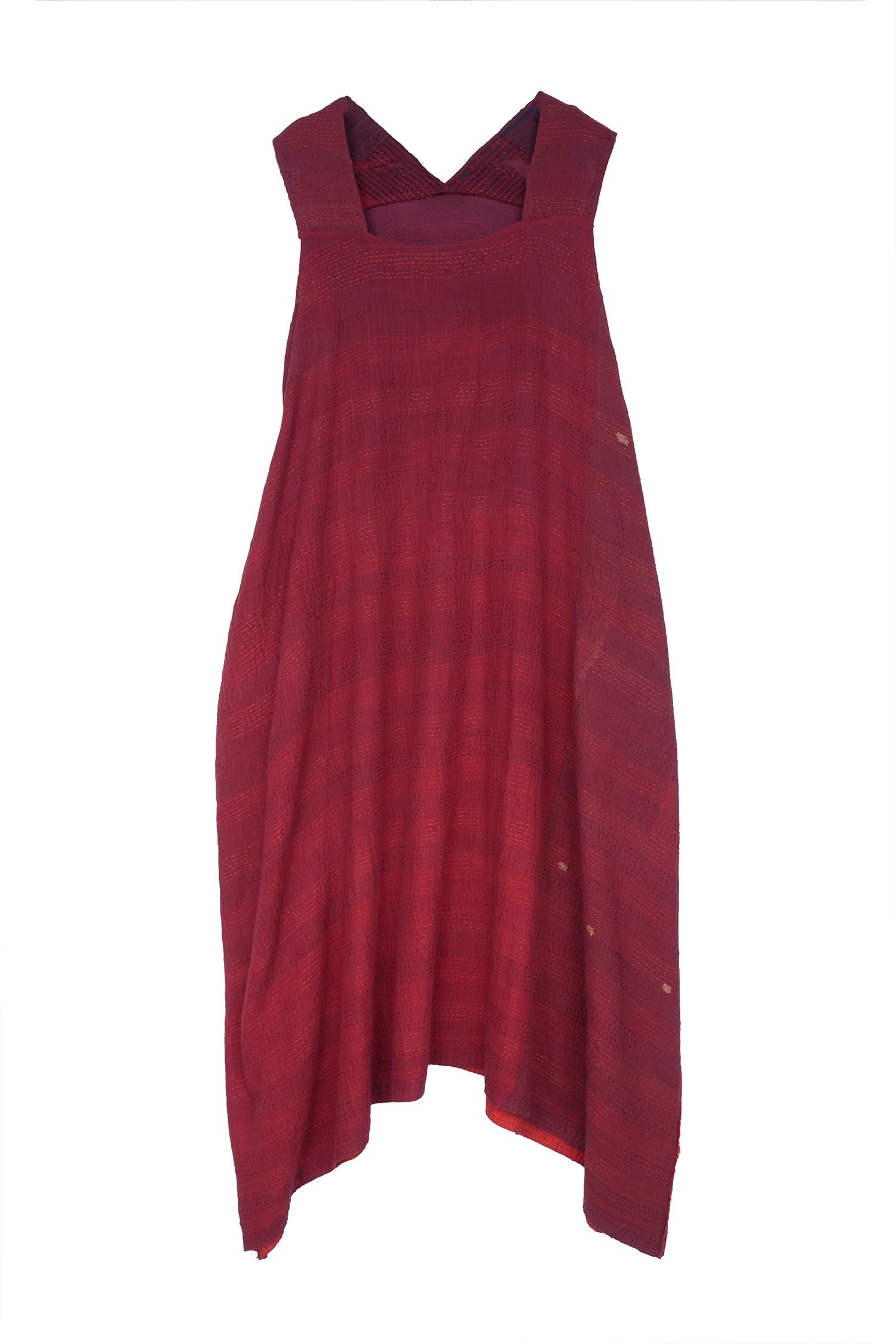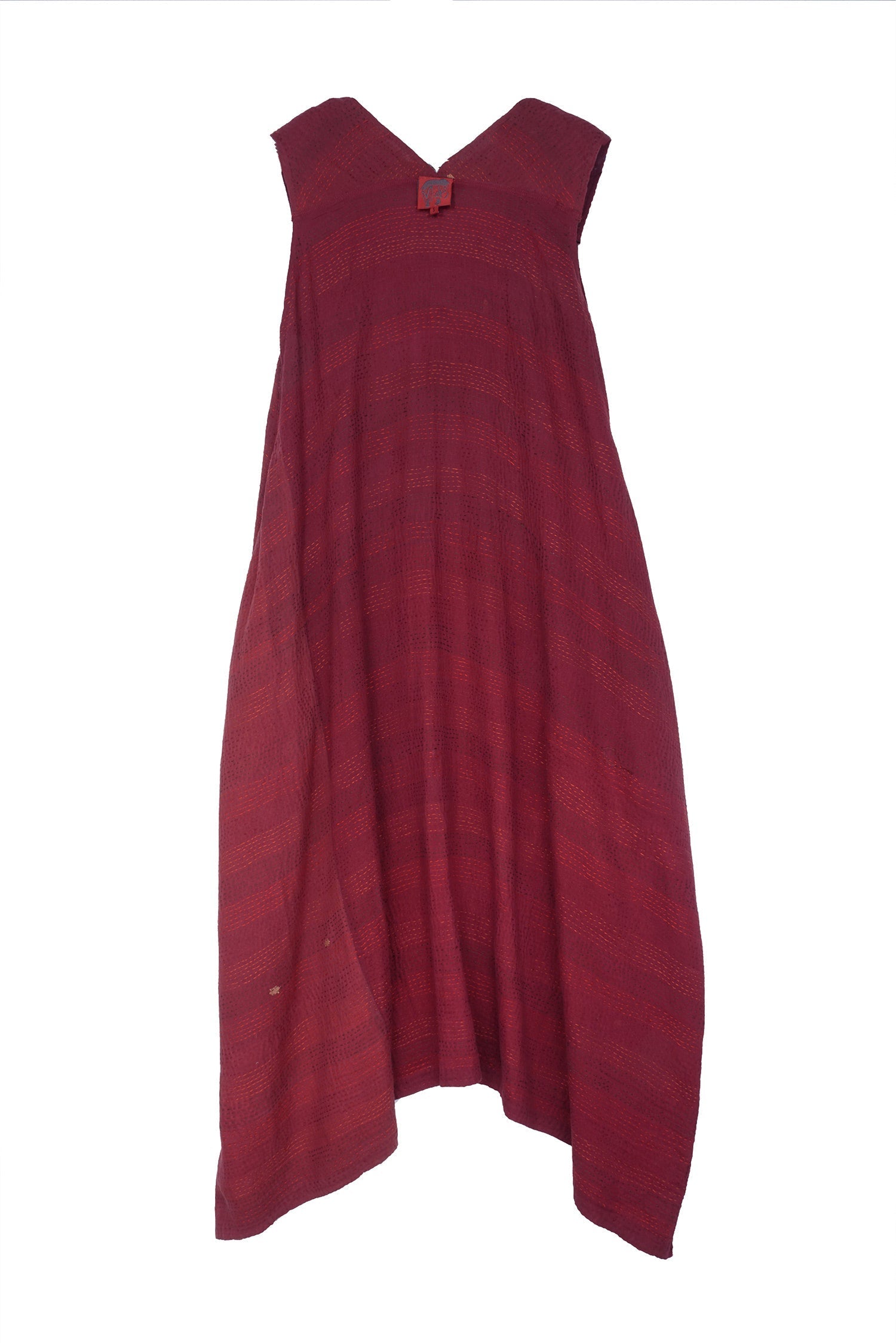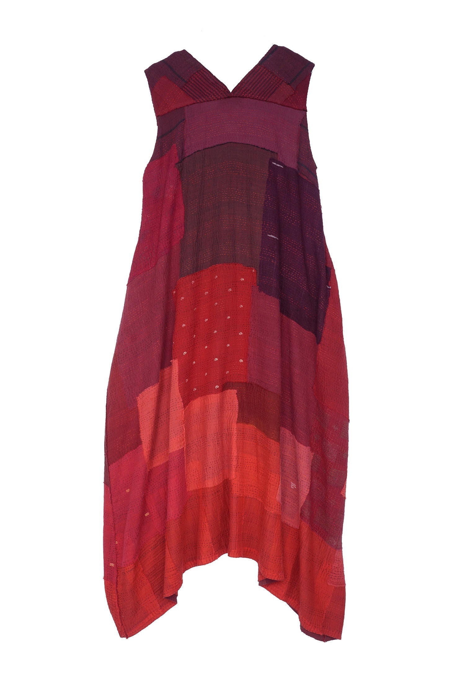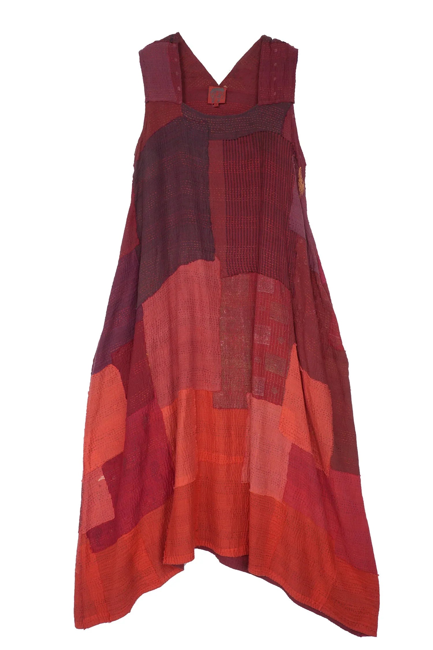 LANDSCAPE FRAYED PATCH KANTHA TENT DRESS - lf2413-red -