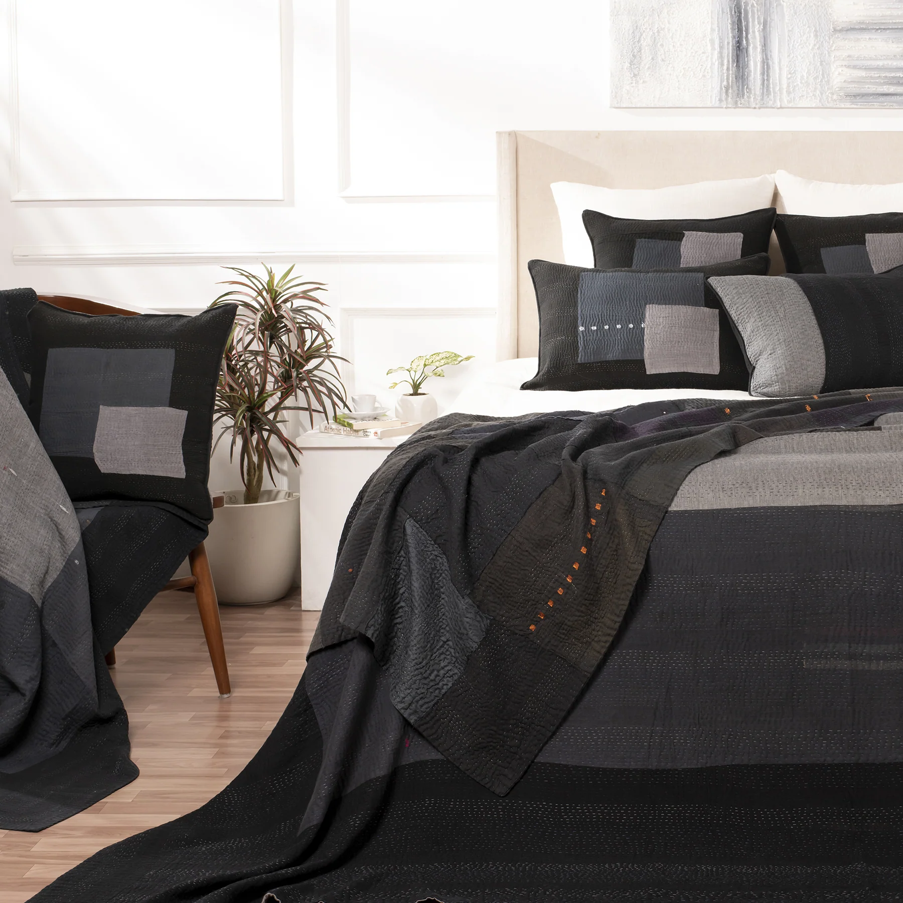Landscape Handmade Vintage Kantha Bedcover -Black-