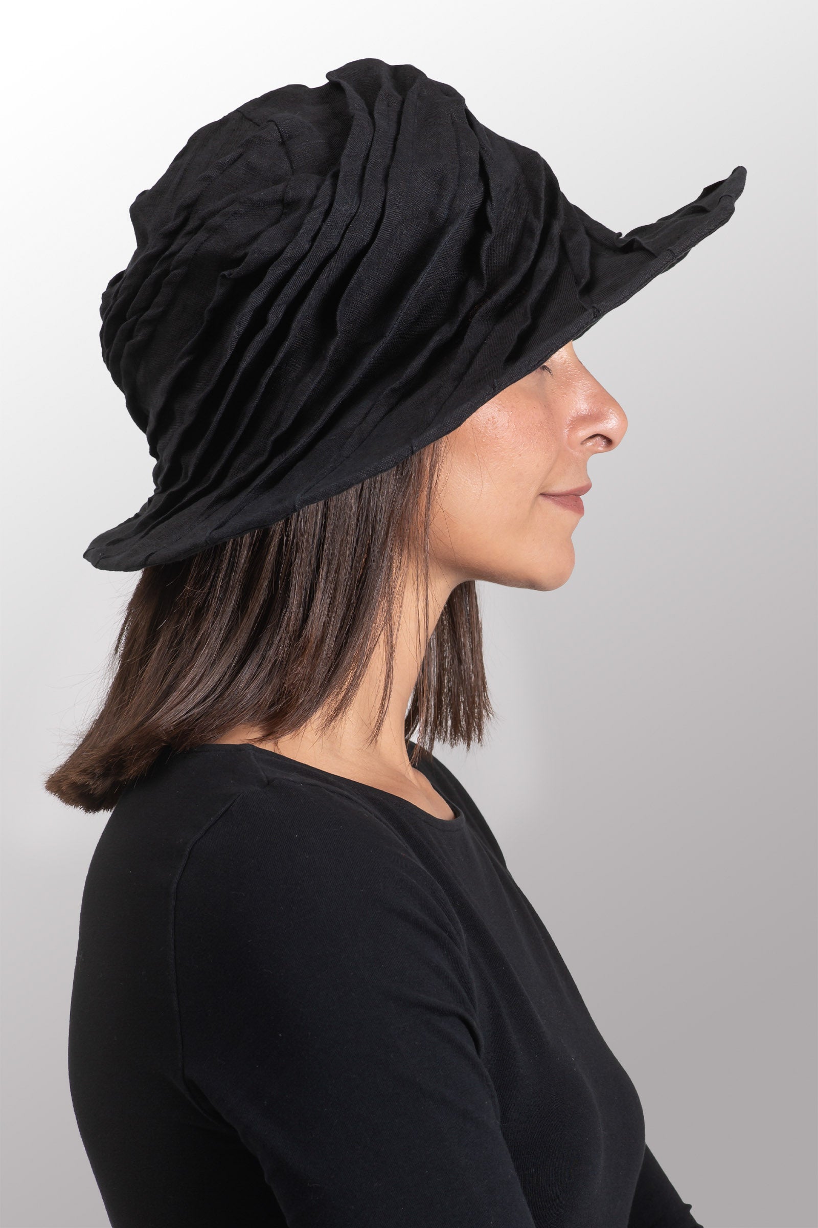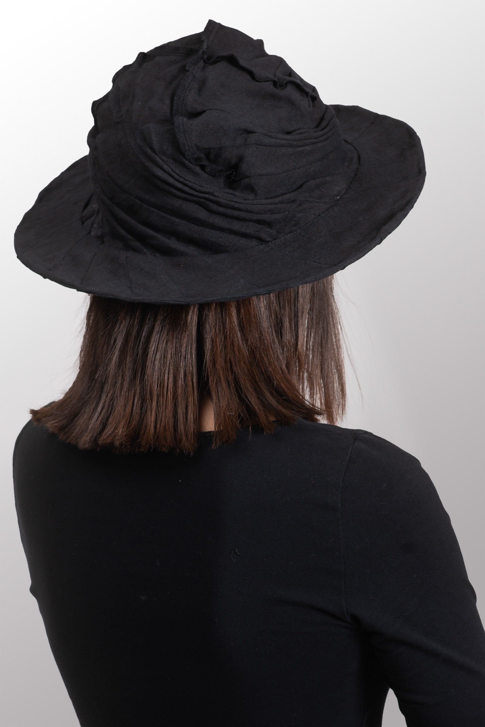 LINEN TWIST TUCKED BRIM HAT - ln1886-blk -