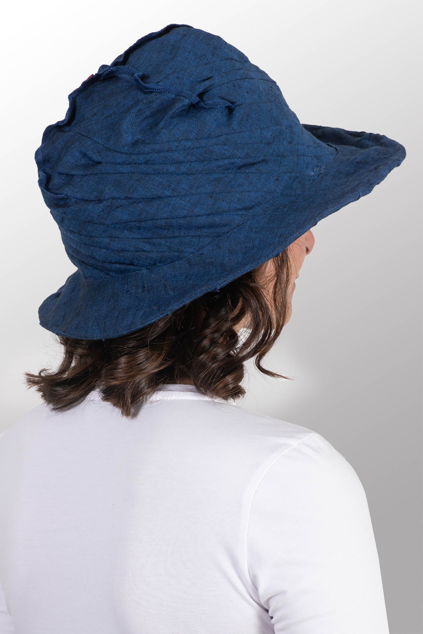LINEN TWIST TUCKED BRIM HAT - ln1886-nvy -