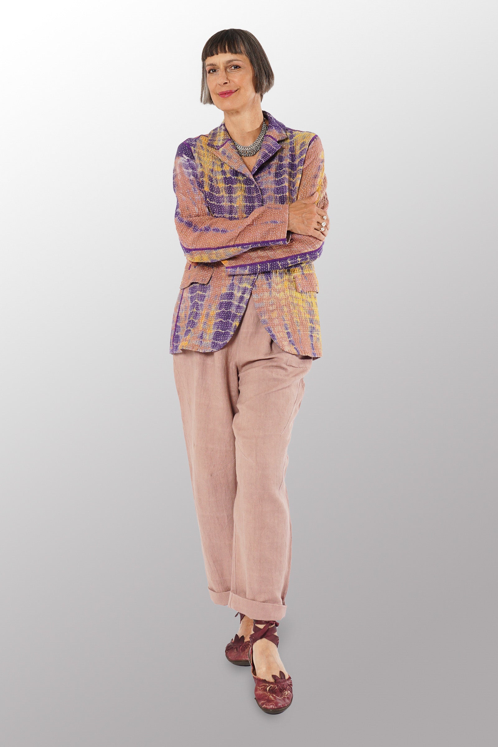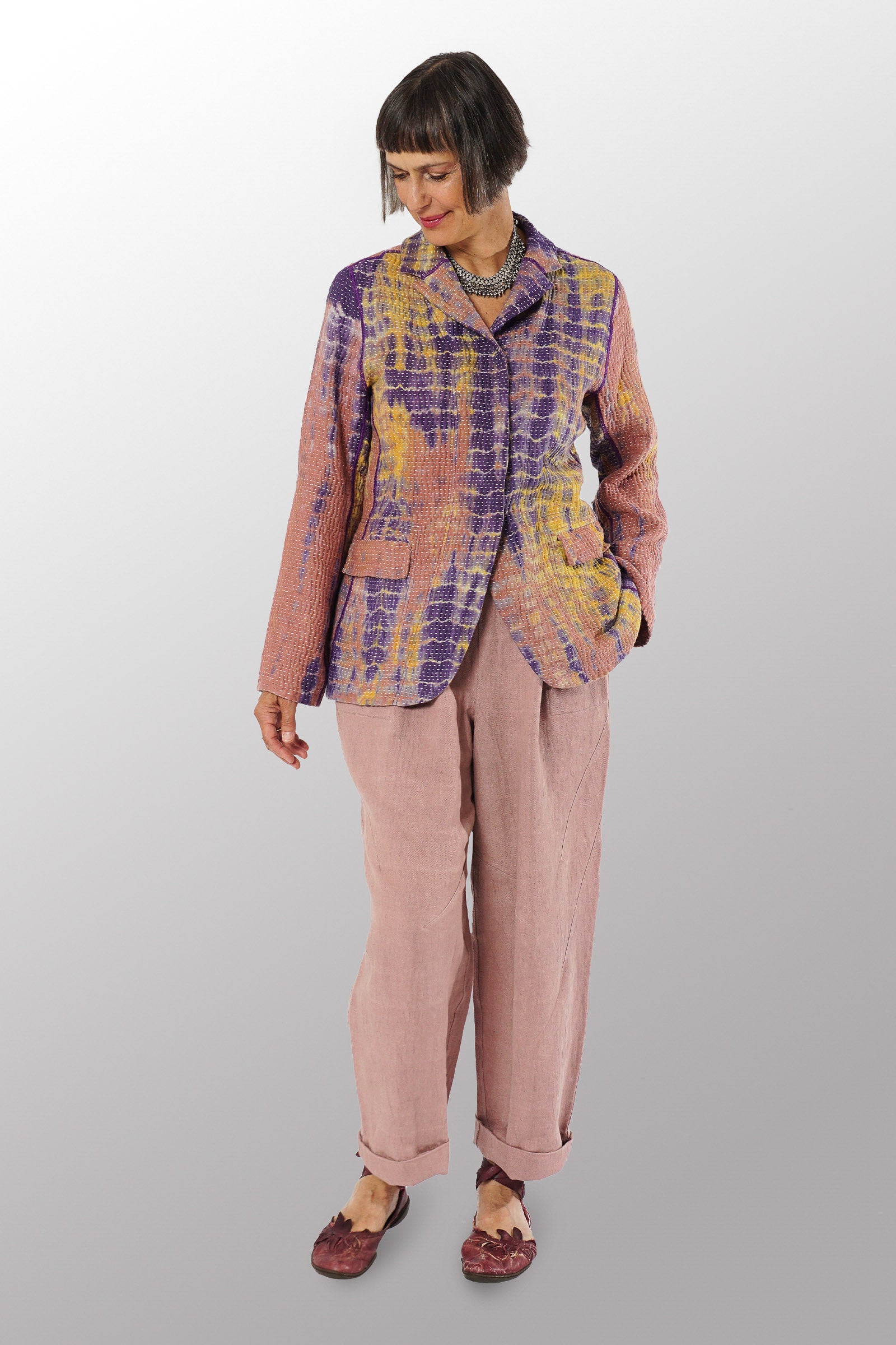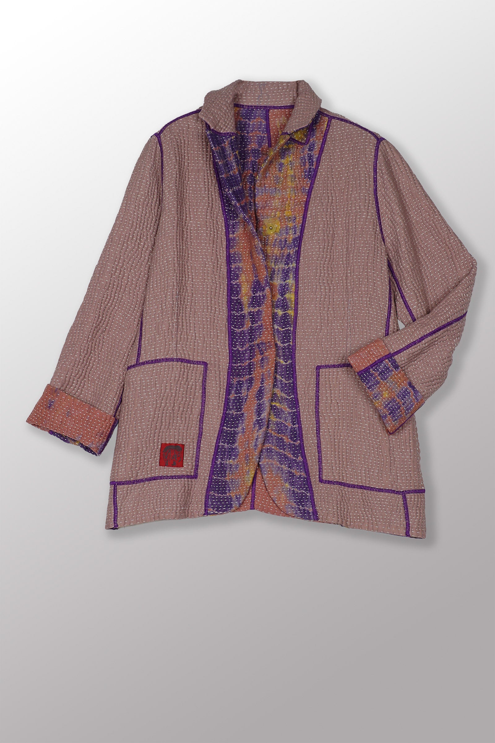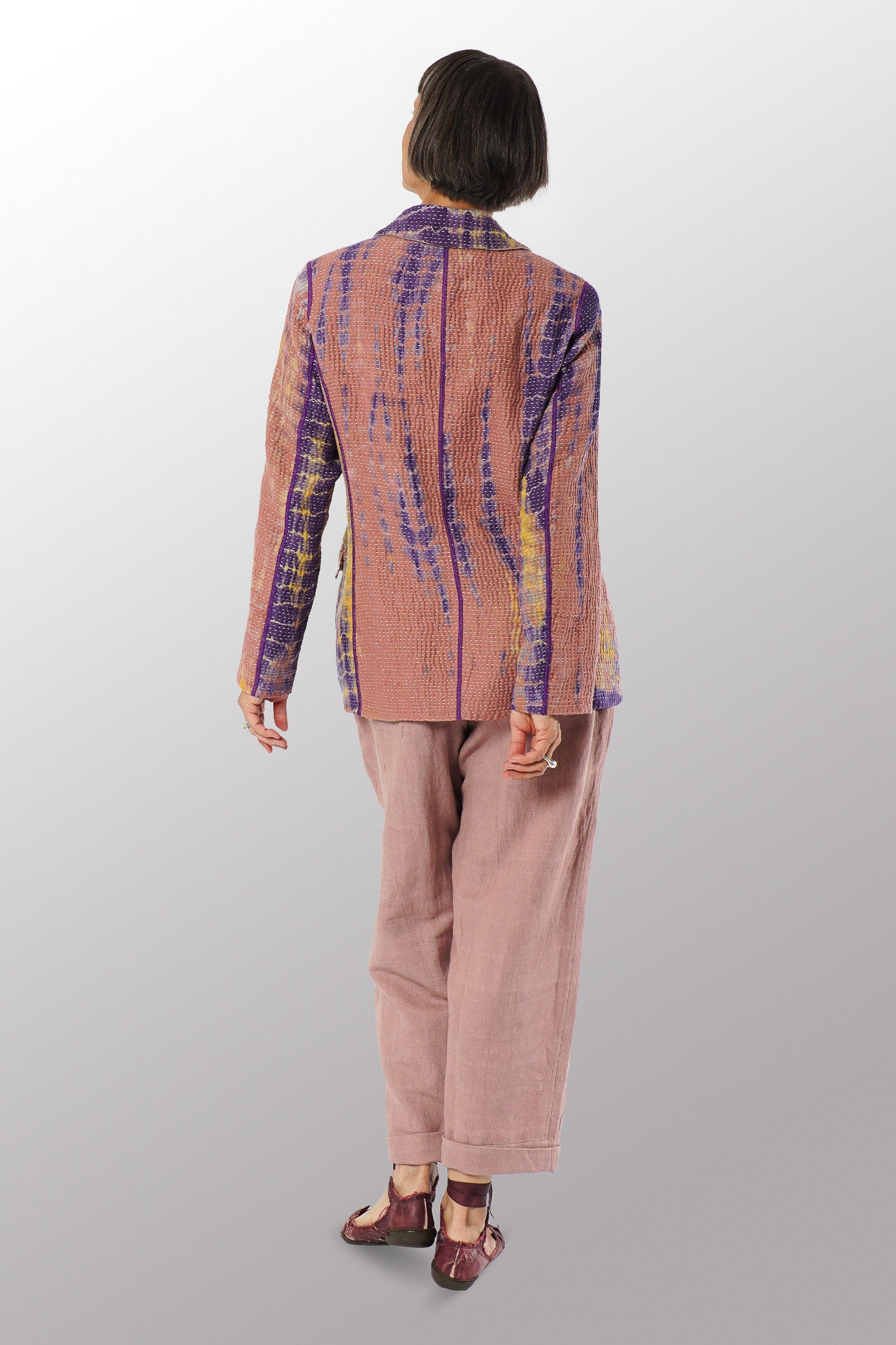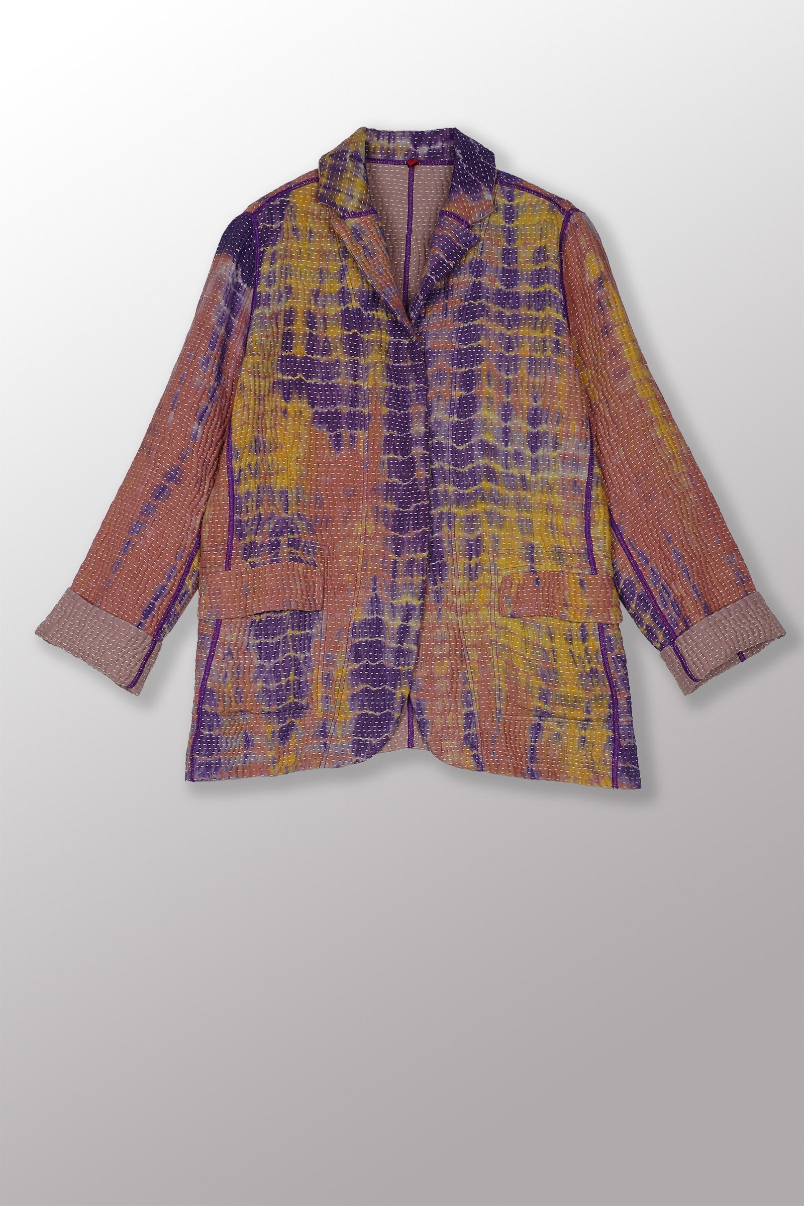 MONE SHIBORI TIE DYE KANTHA BASIC JACKET - ms5052-prp -