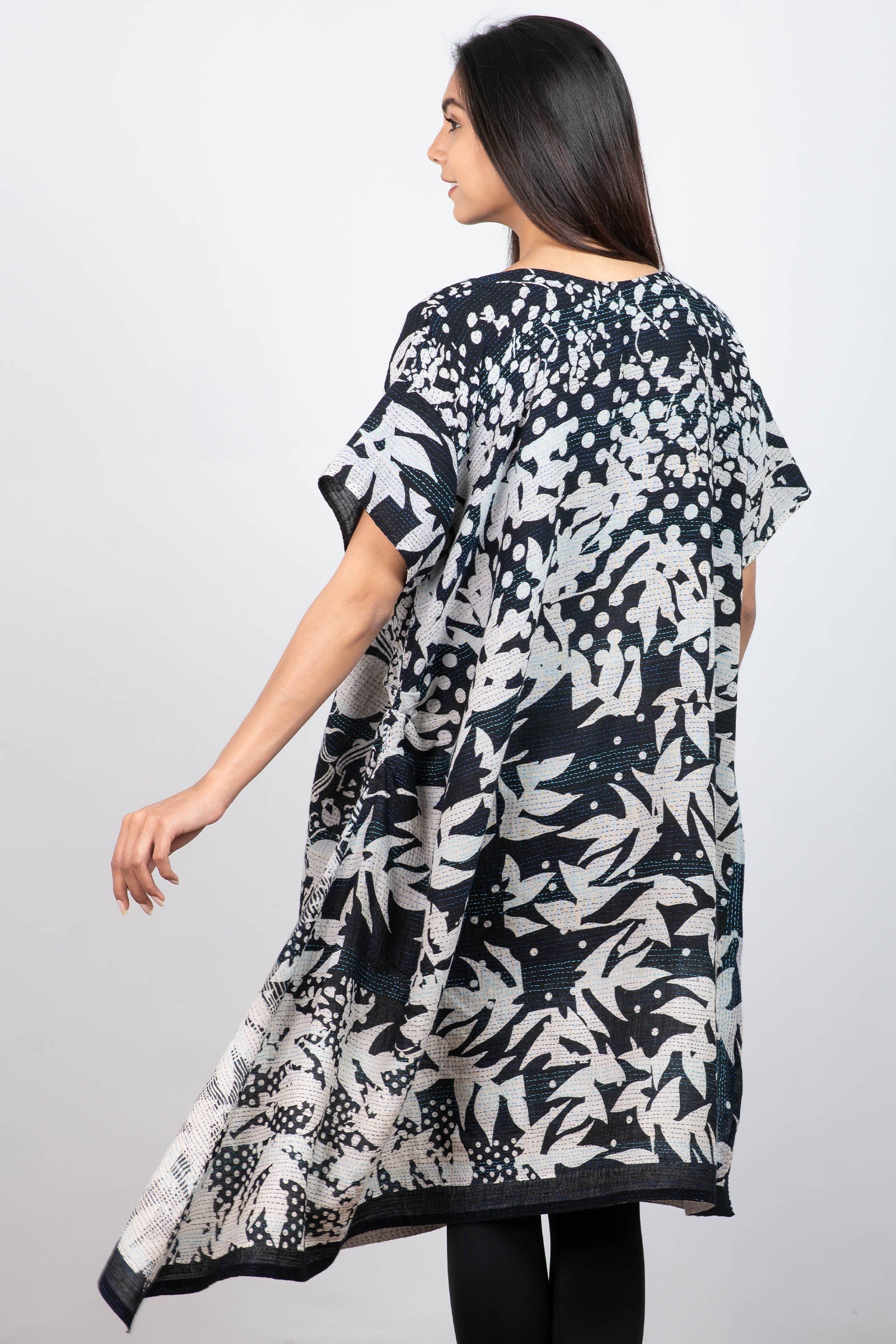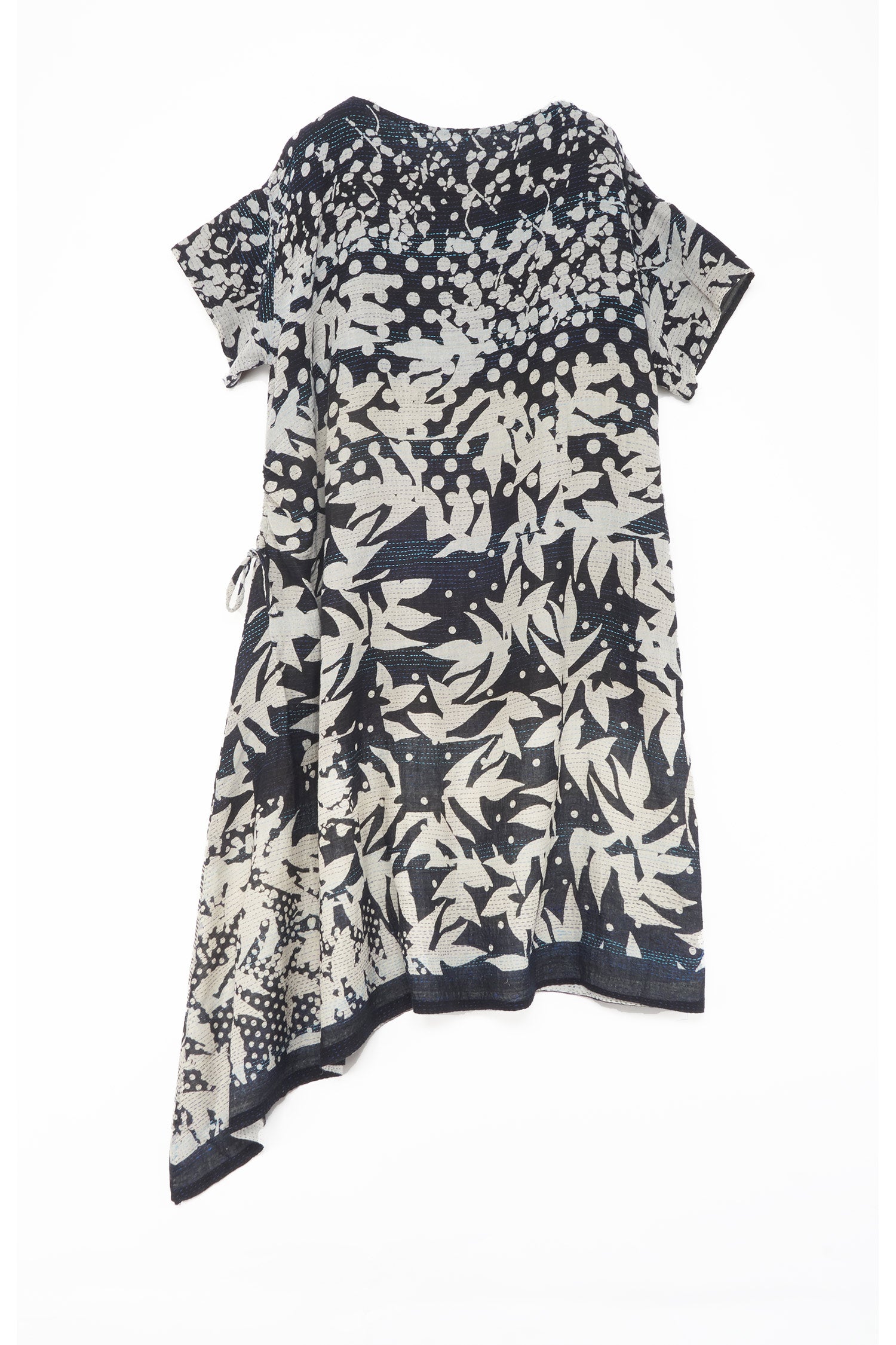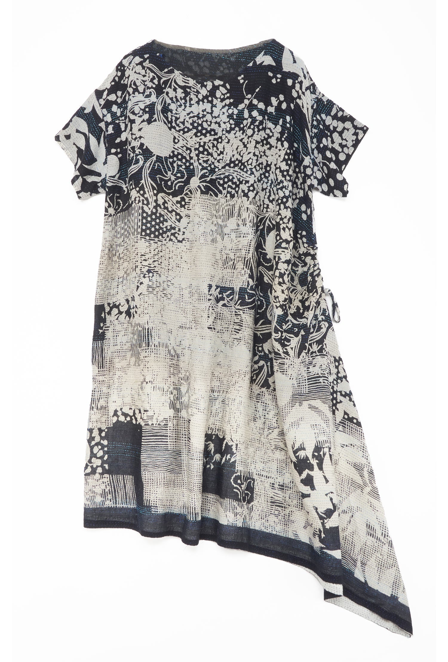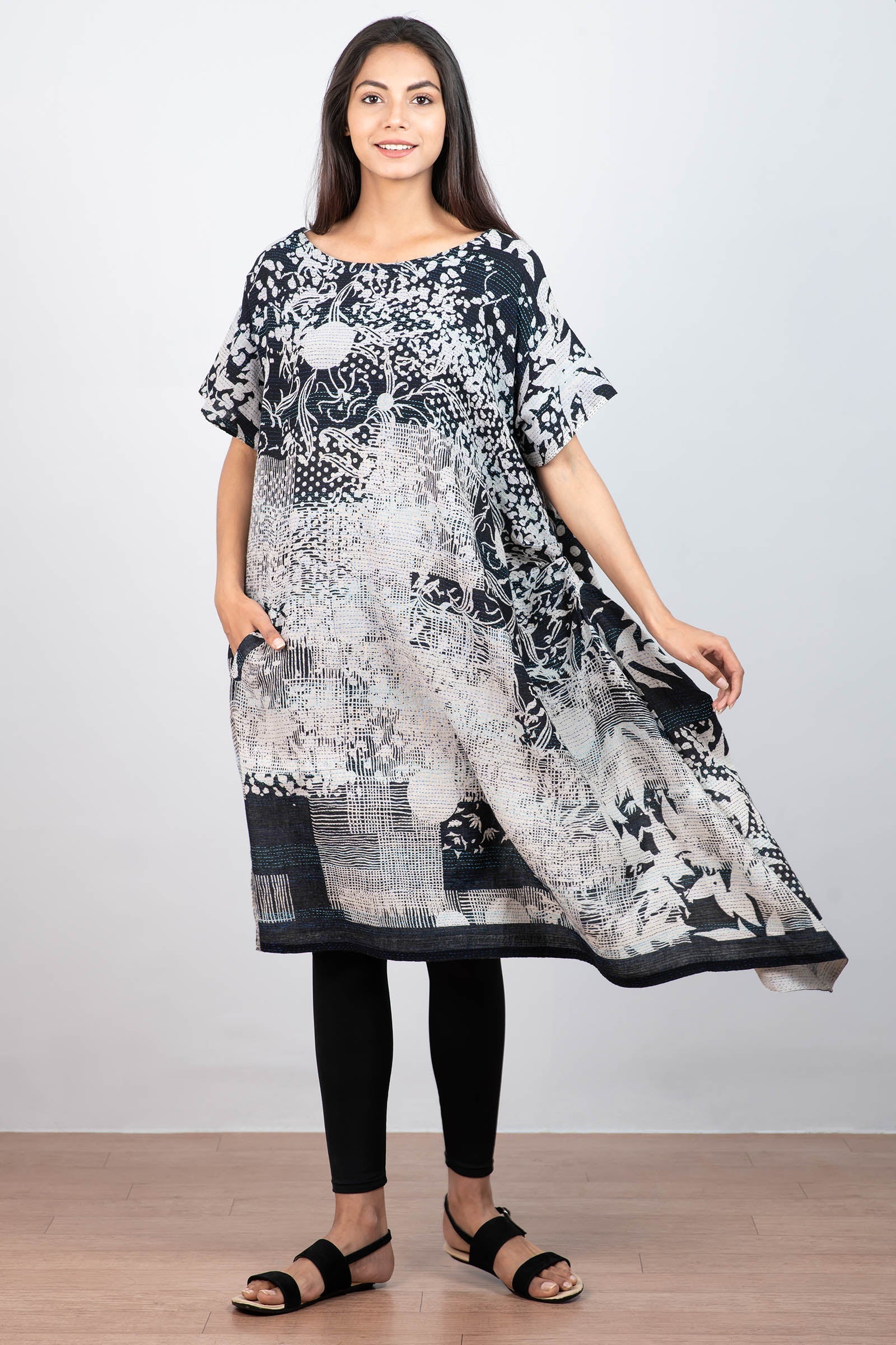 MONOTONE TWILIGHT PRINT KANTHA BOAT NECK T. DRESS - tp2430-blk -