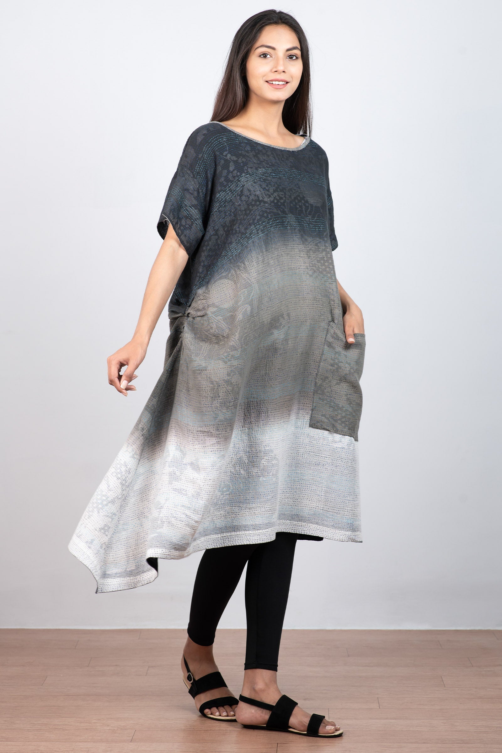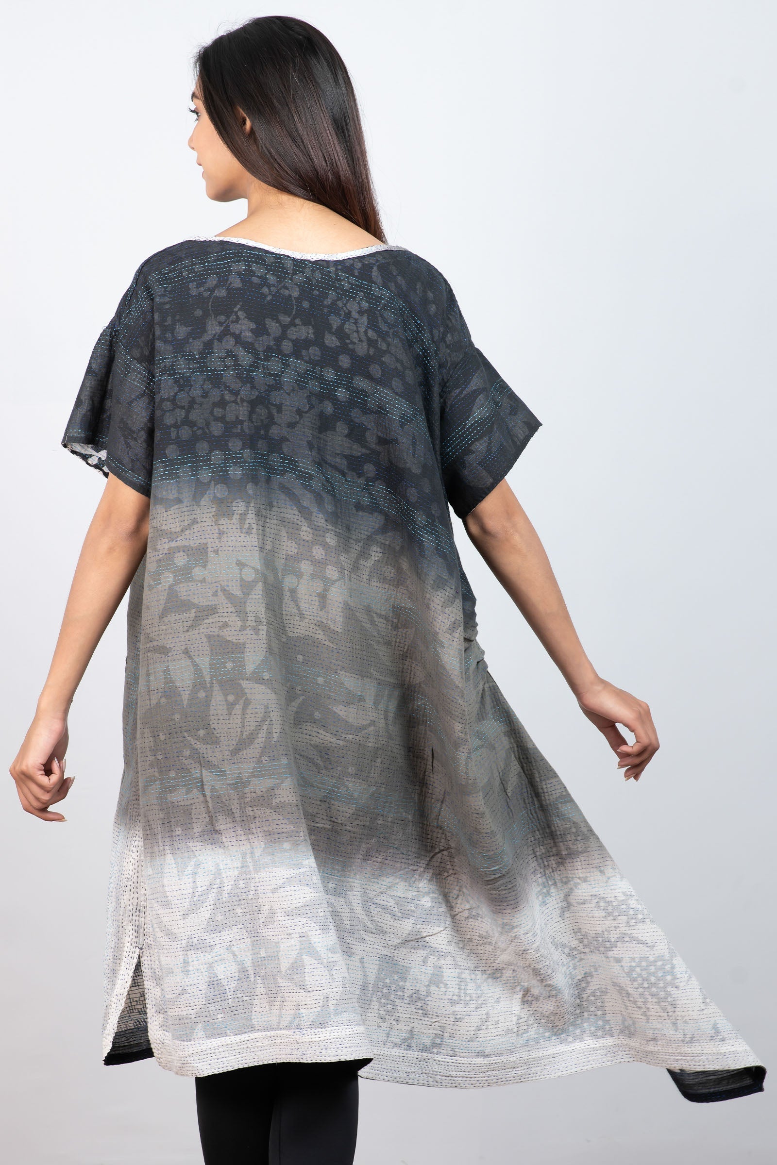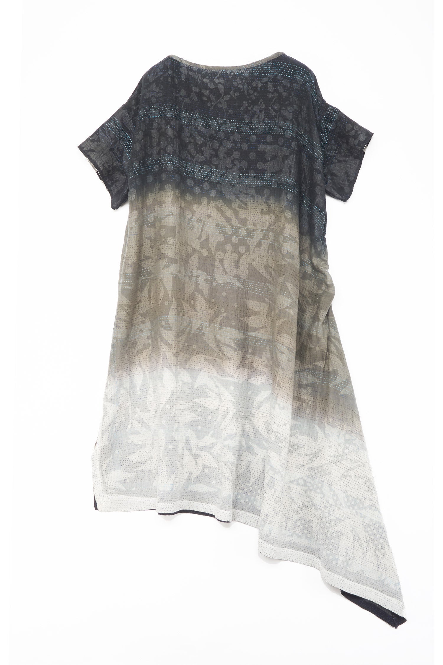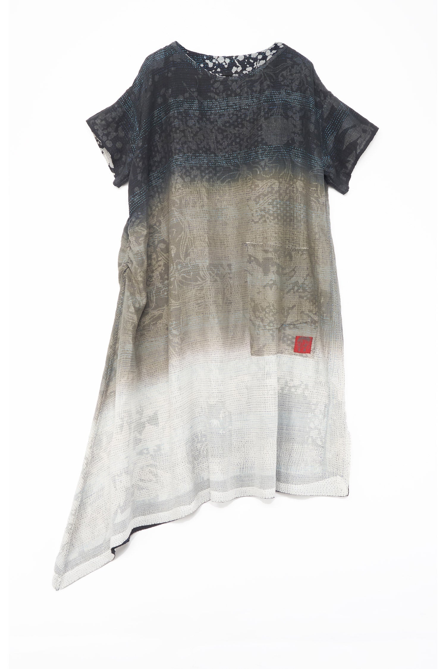 MONOTONE TWILIGHT PRINT KANTHA BOAT NECK T. DRESS - tp2430-blk -