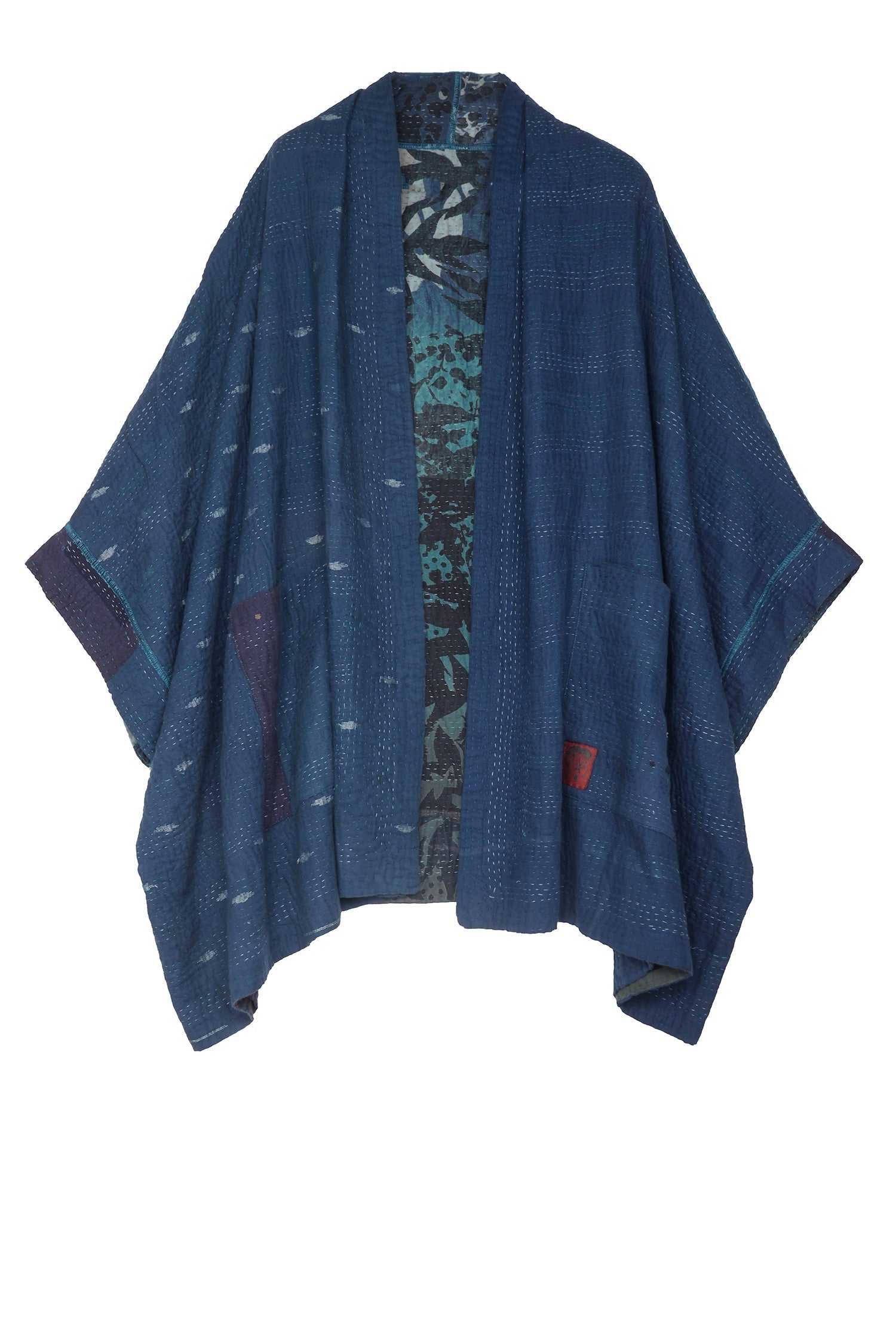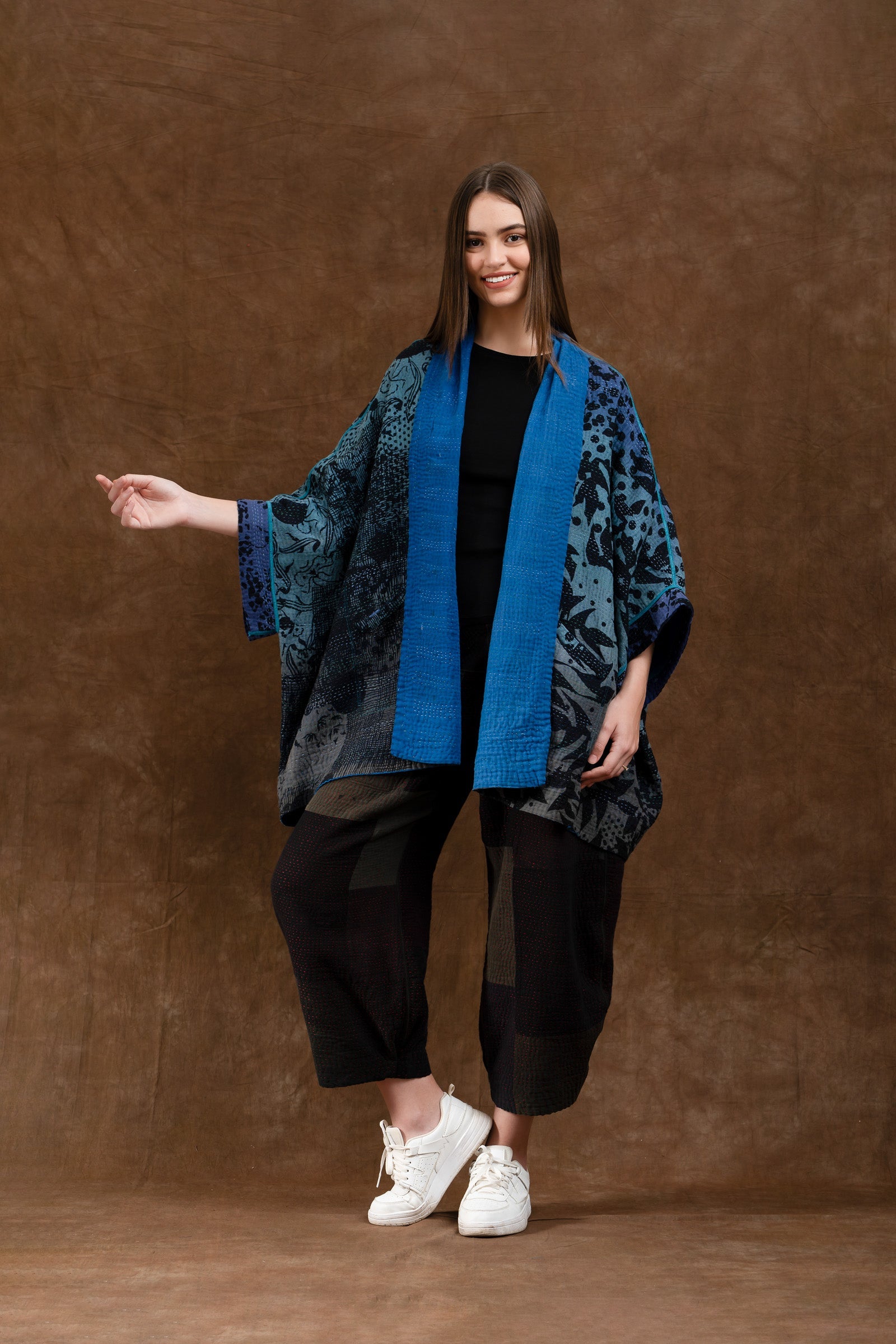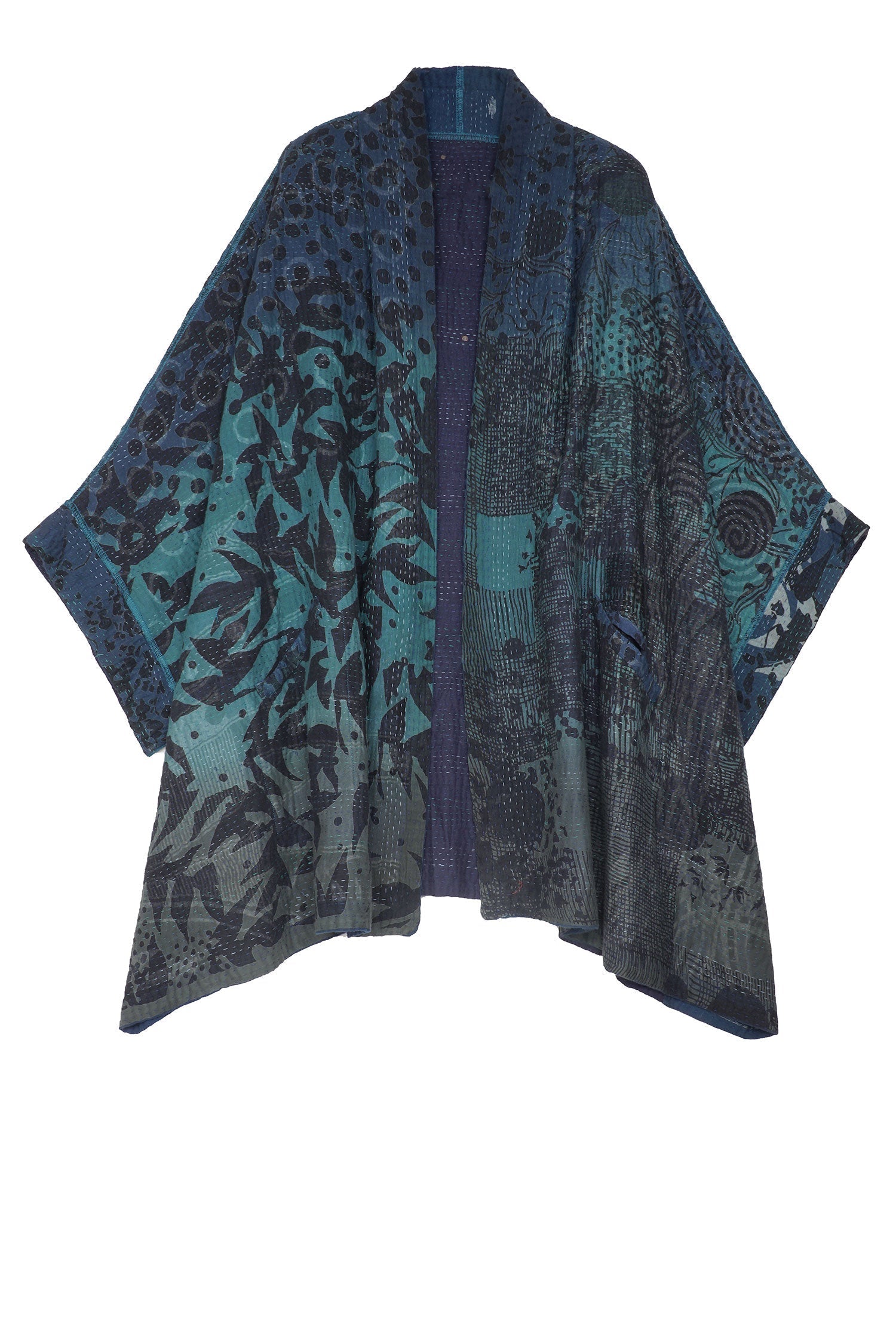 4 Layer Vintage Saris with Hand Stitches on Entire Garment - Reversible