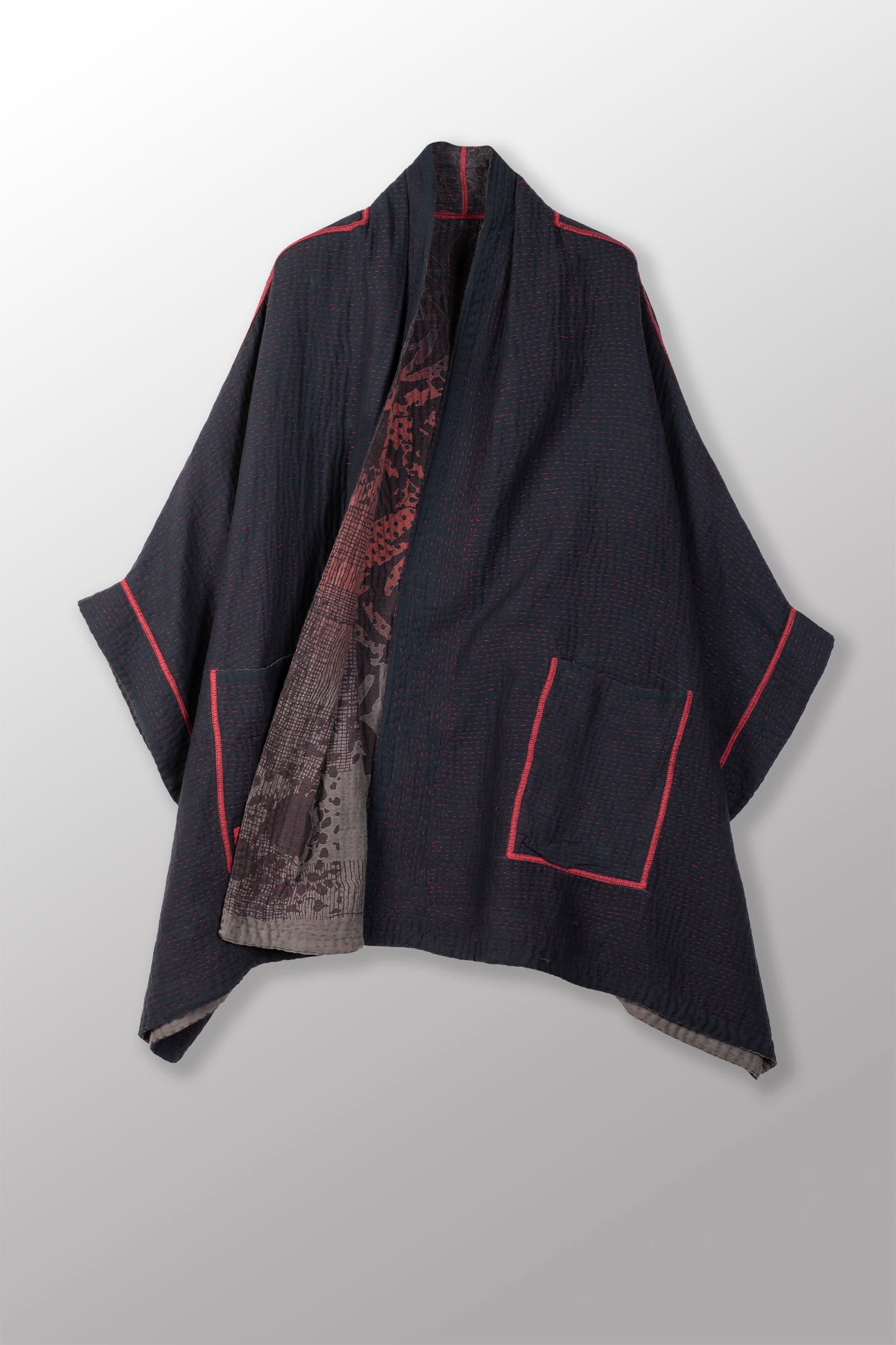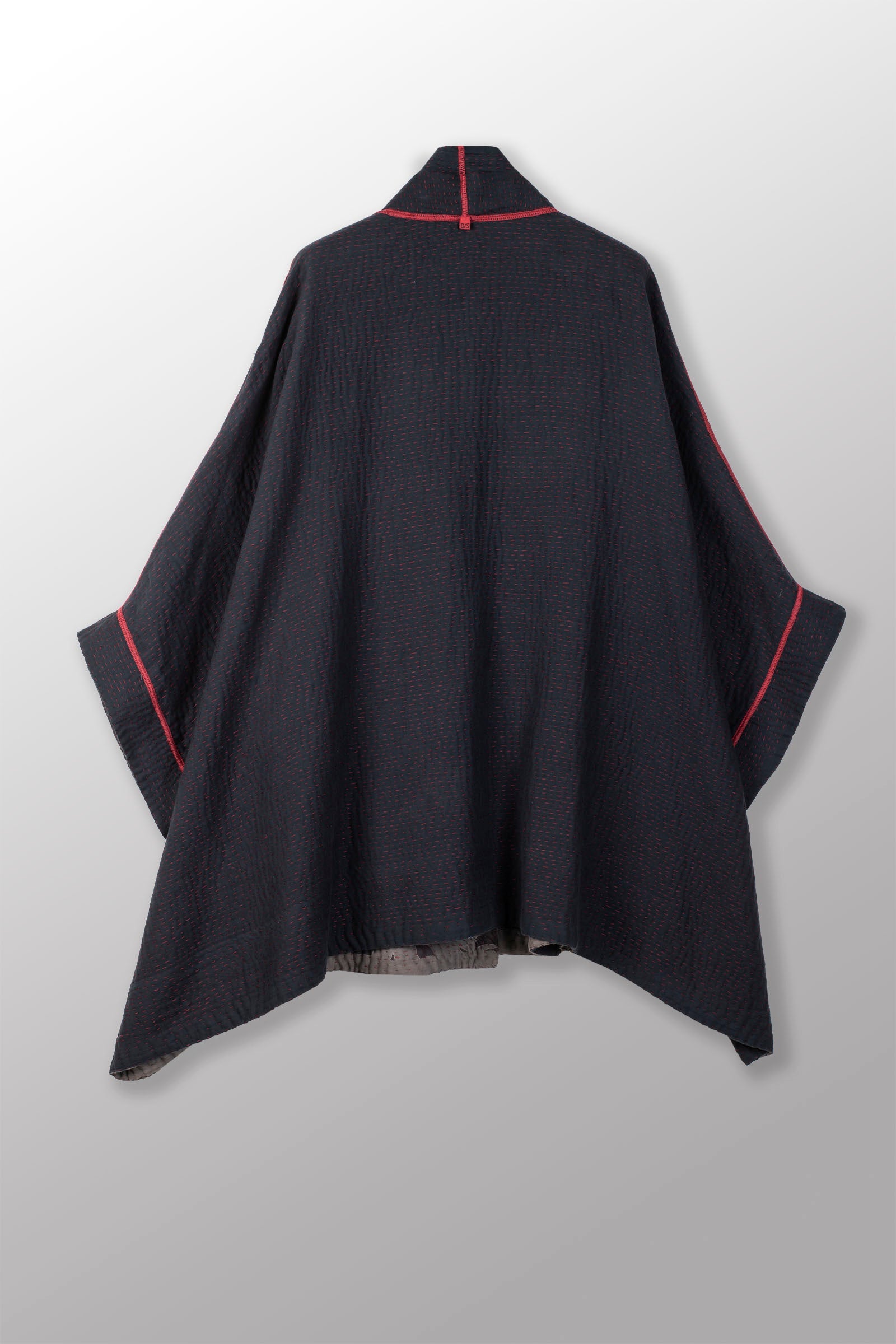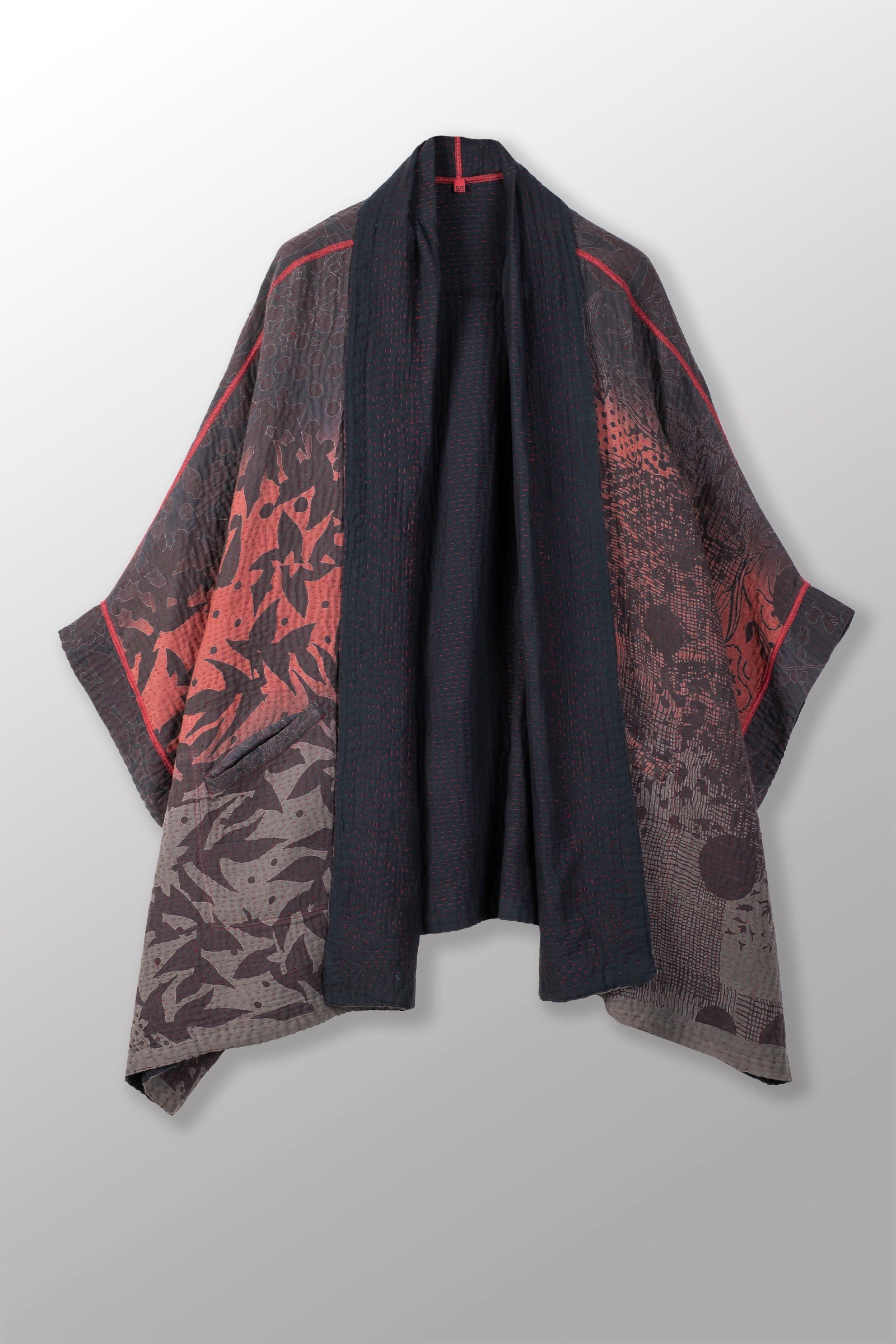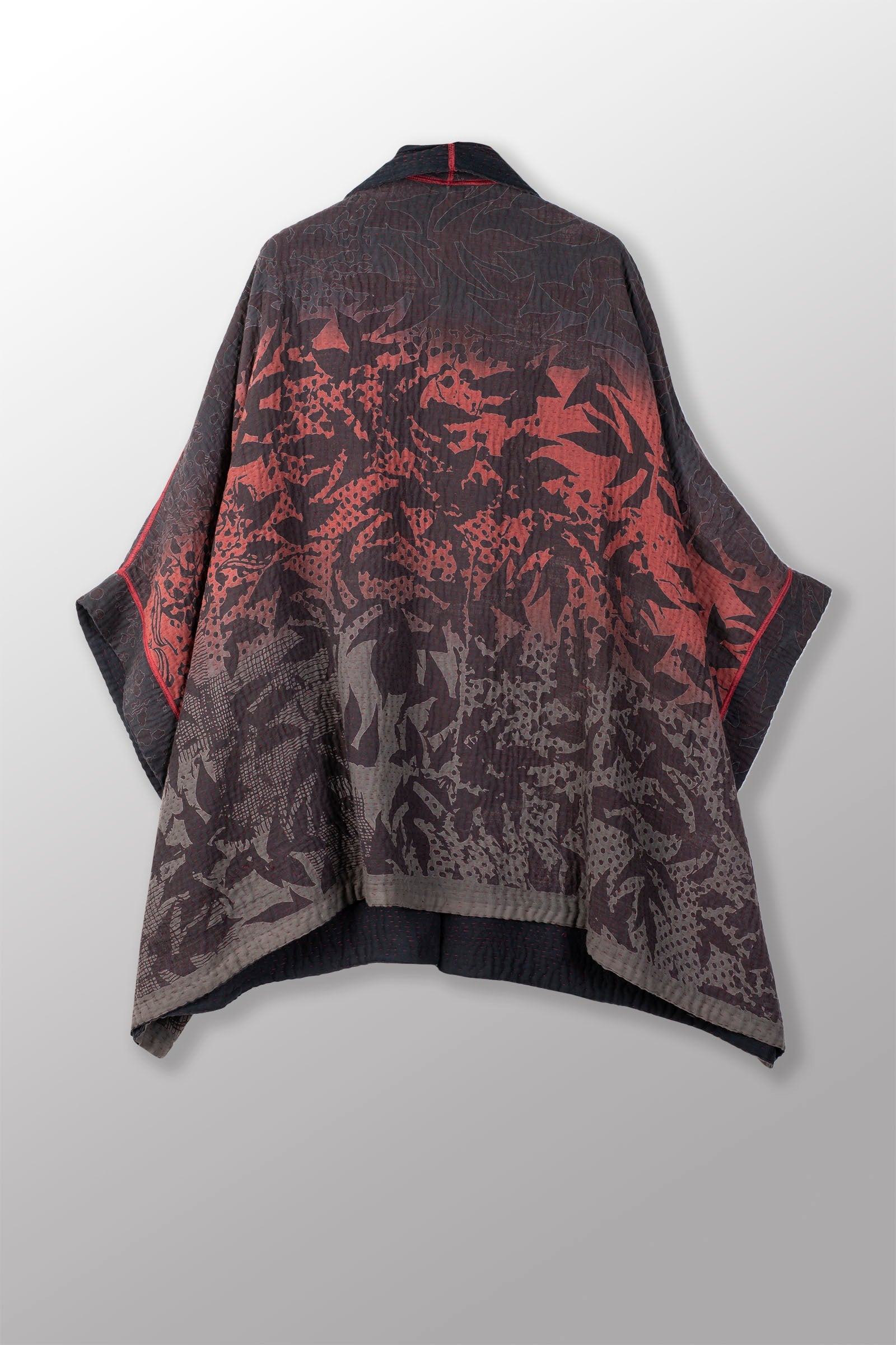 MONOTONE TWILIGHT PRINT KANTHA DOUBLE COLLAR PONCHO - tp4323-red -