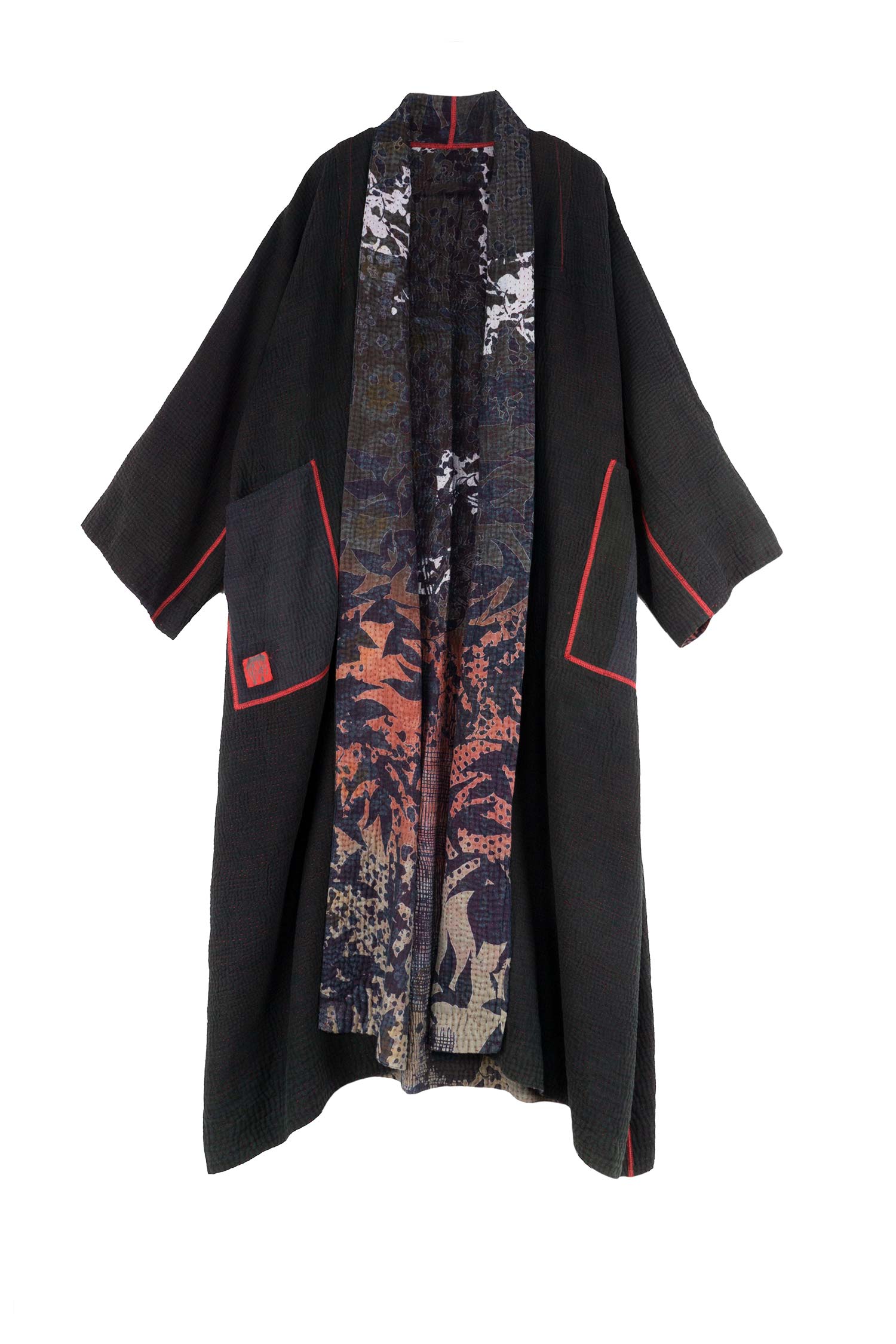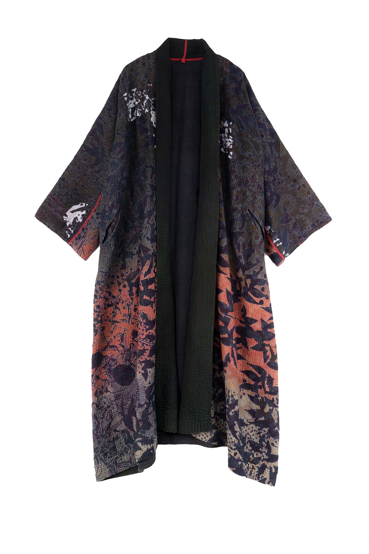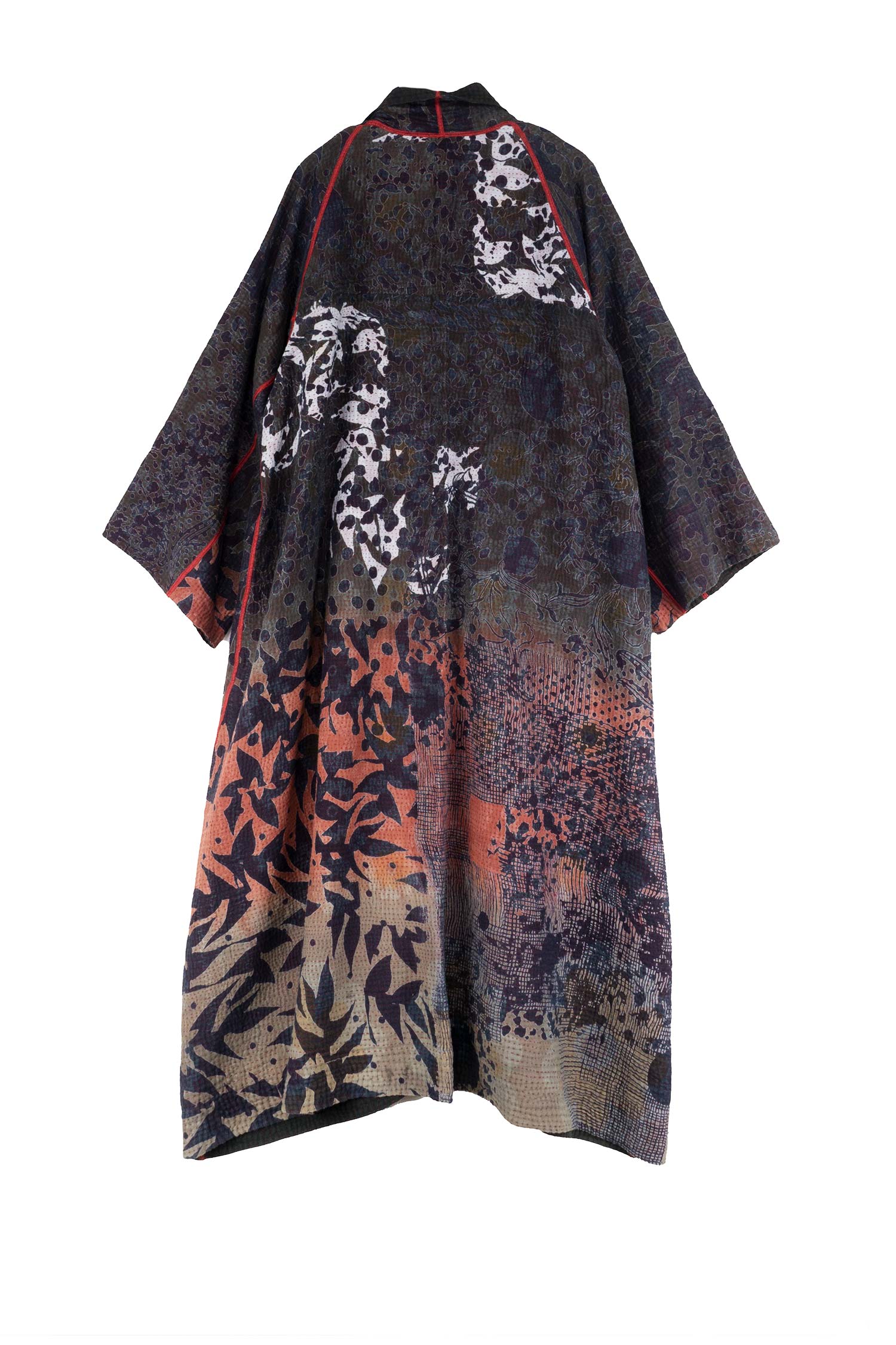 MONOTONE TWILIGHT PRINT KANTHA KIMONO ROBE - tp4322-red -