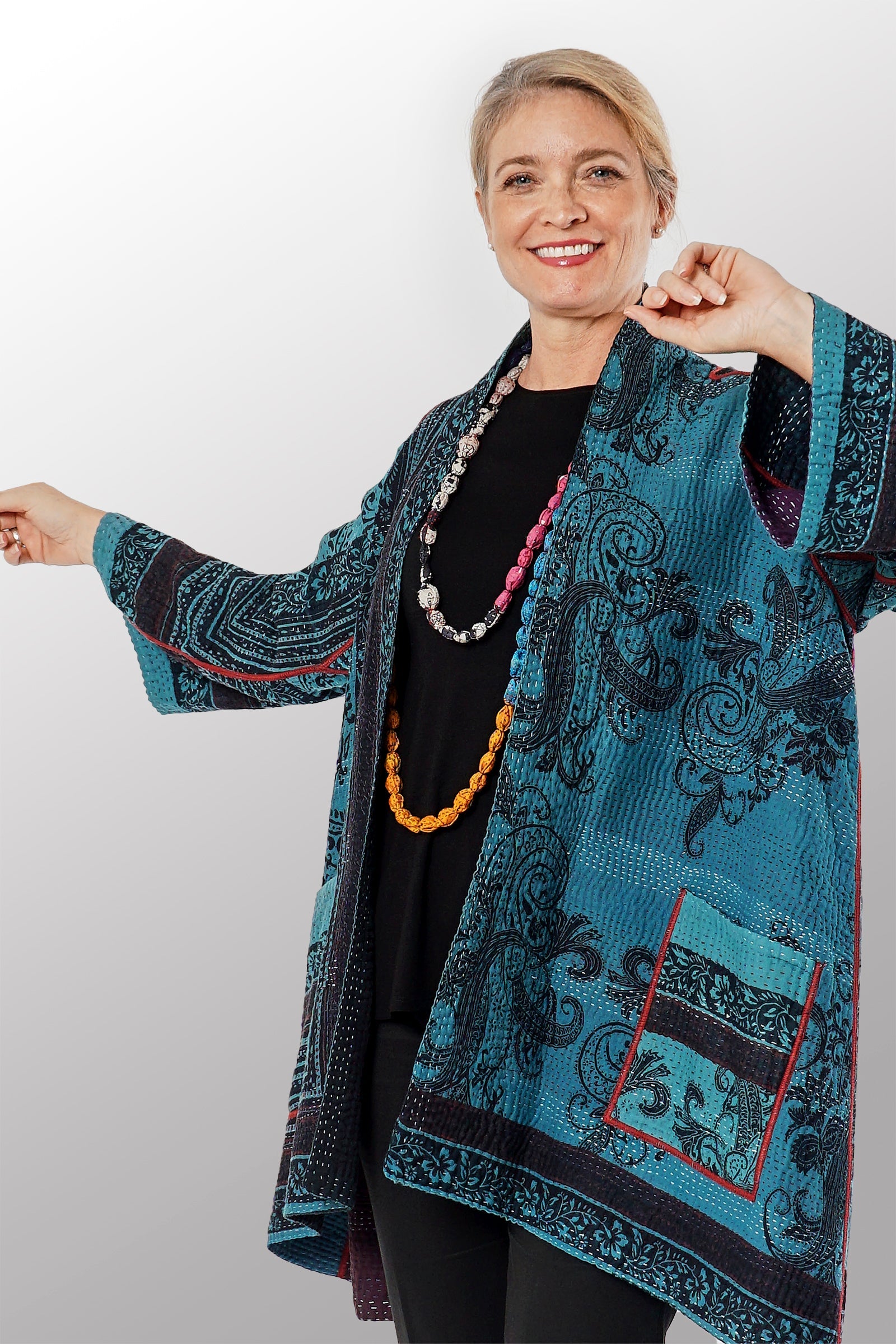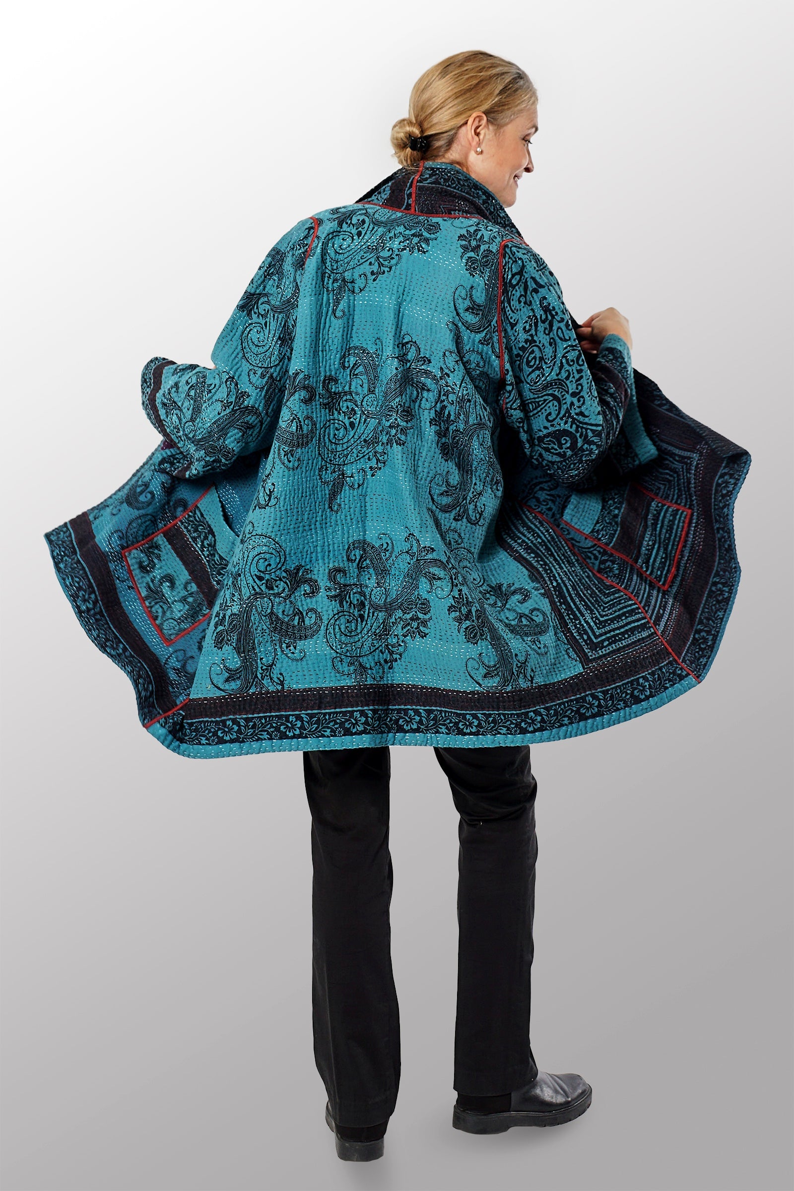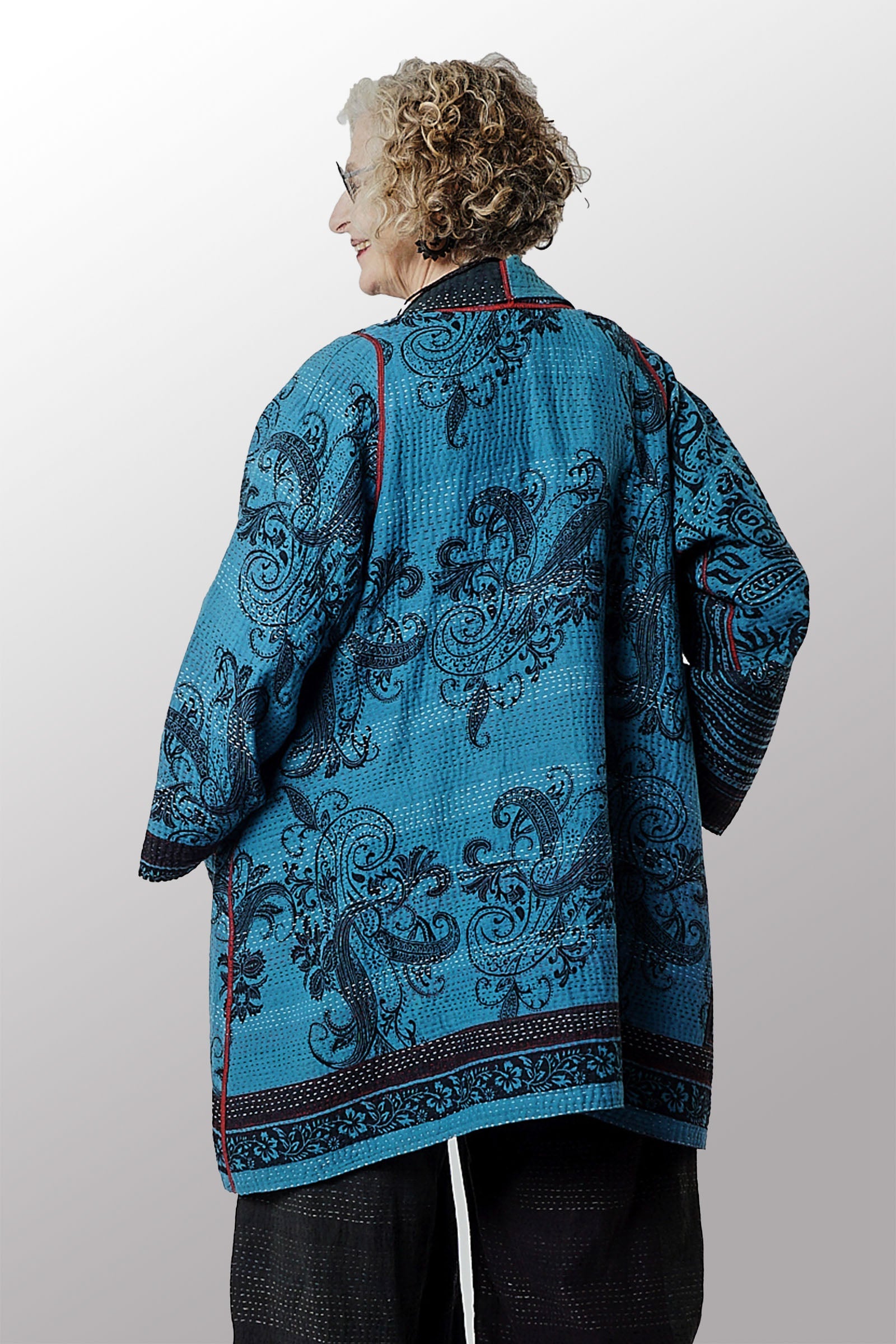 OVERDYED PAISLEY & PATCH KANTHA A-LINE JKT - py4003-blu -