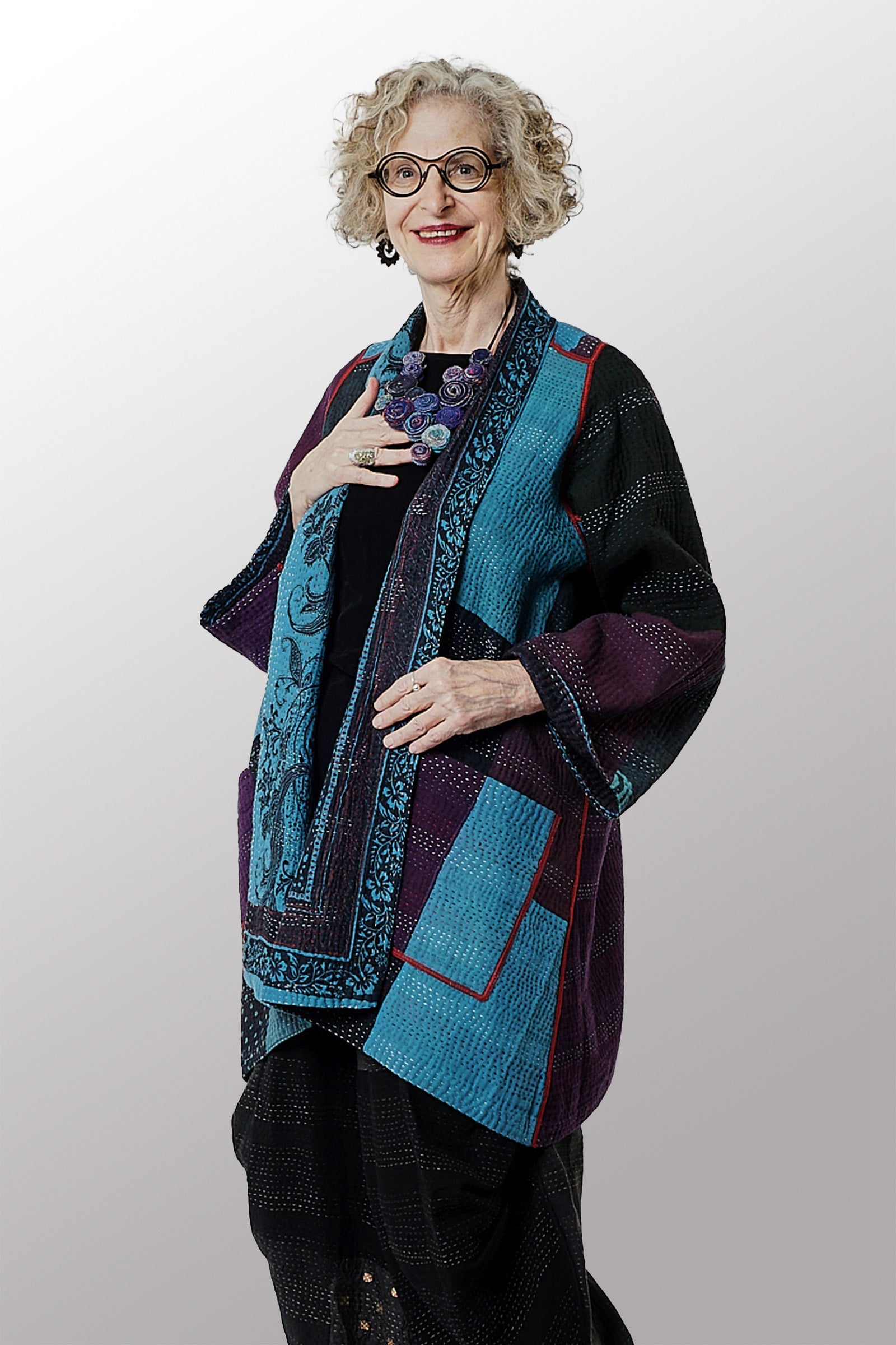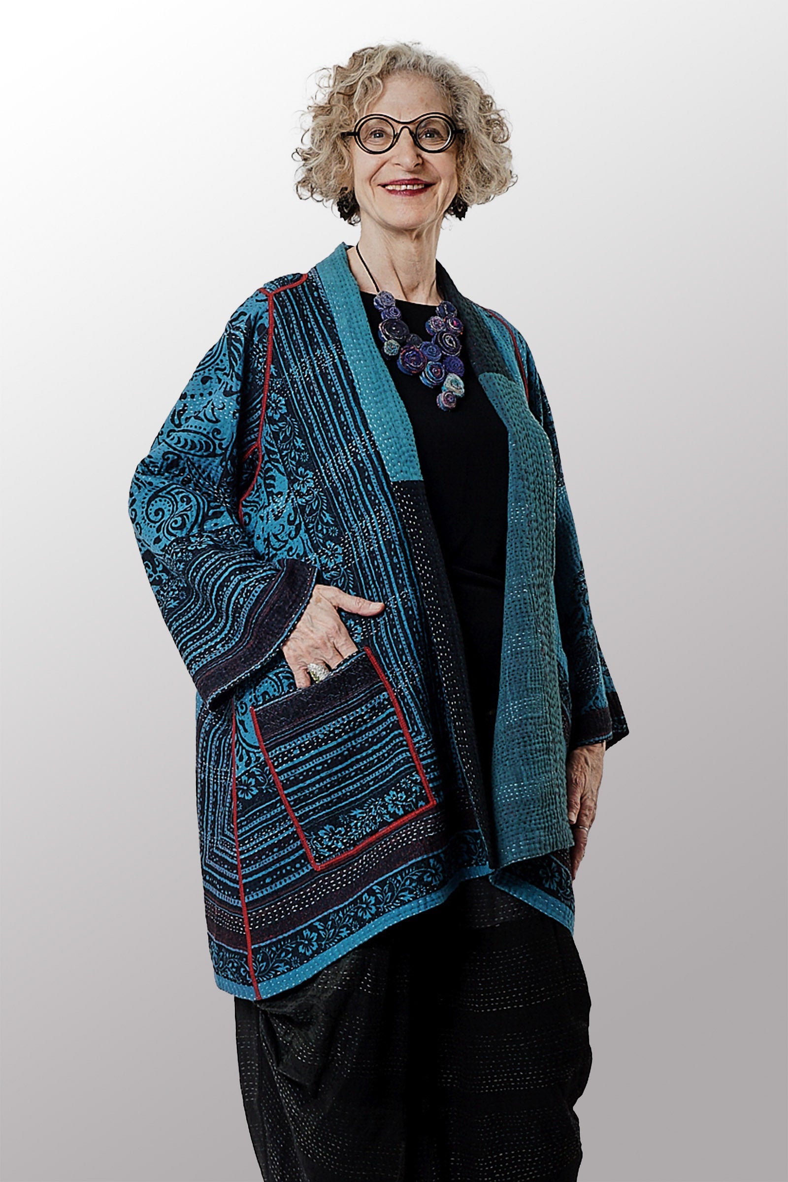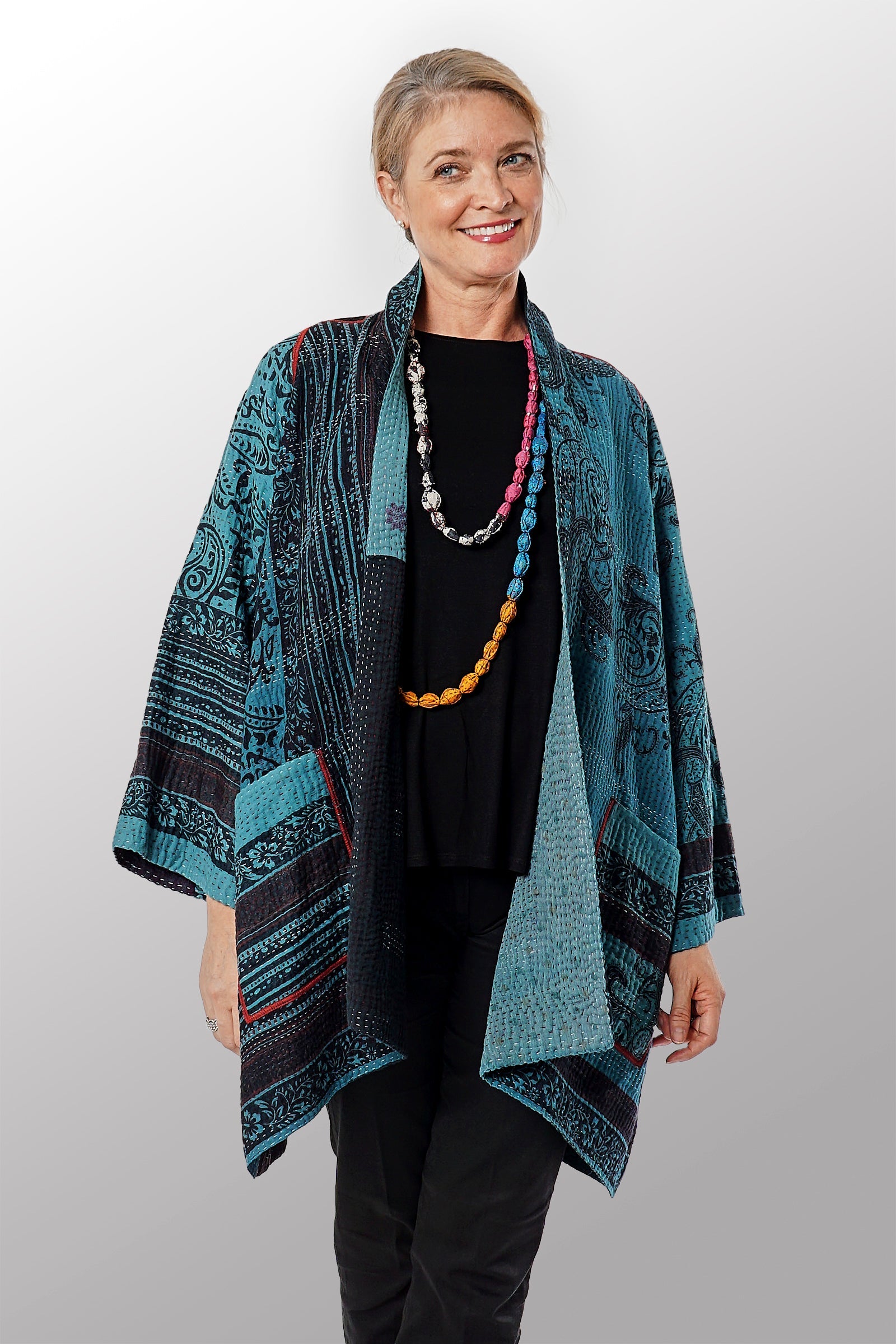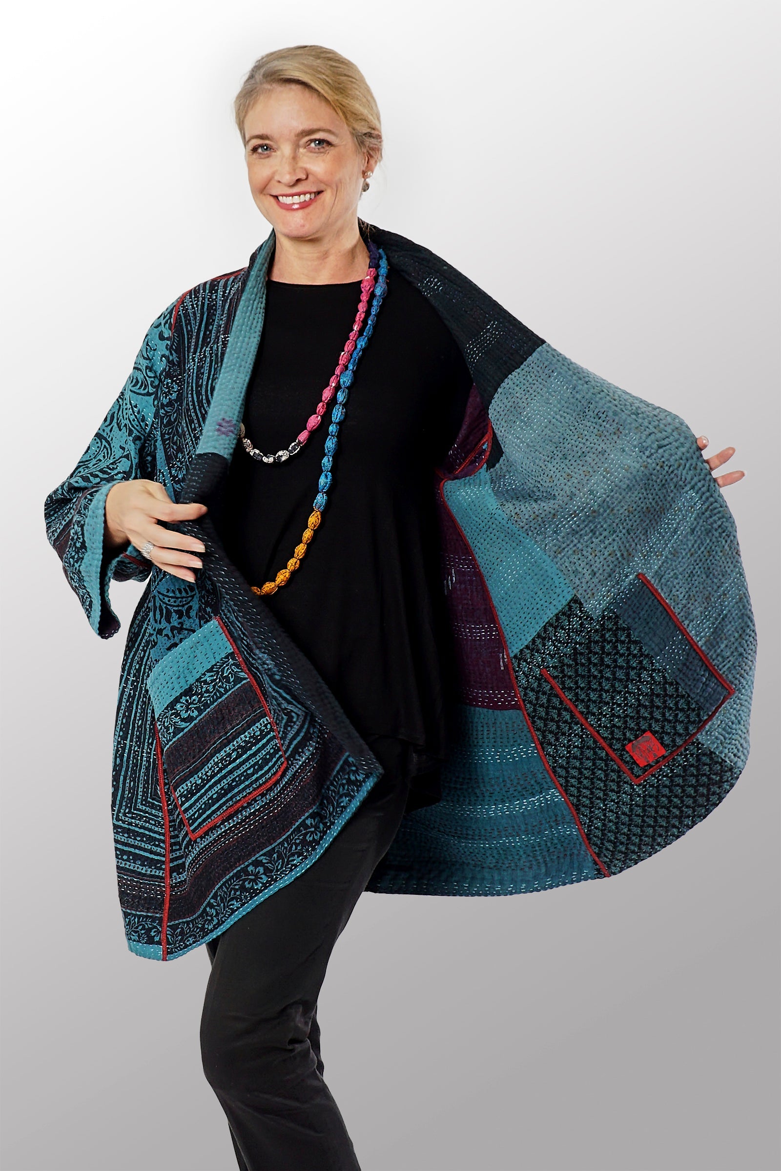 OVERDYED PAISLEY & PATCH KANTHA A-LINE JKT - py4003-blu -