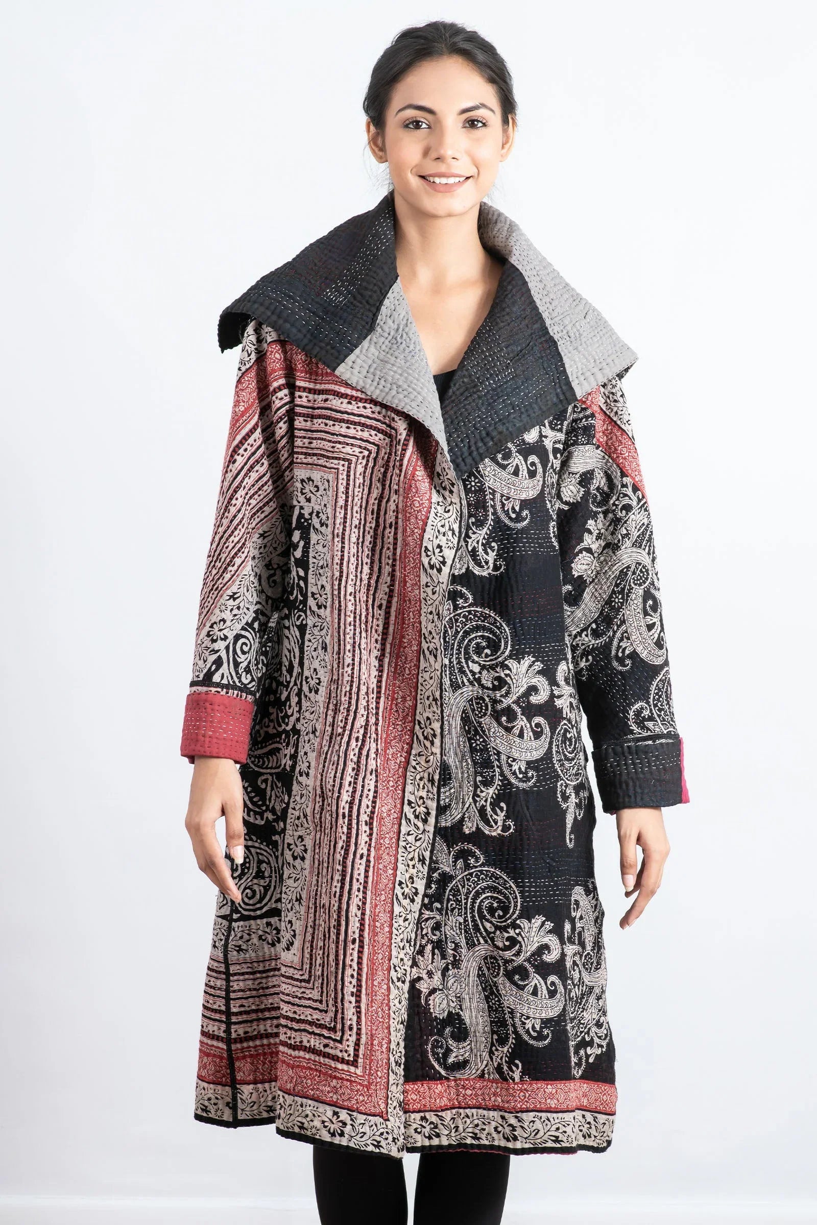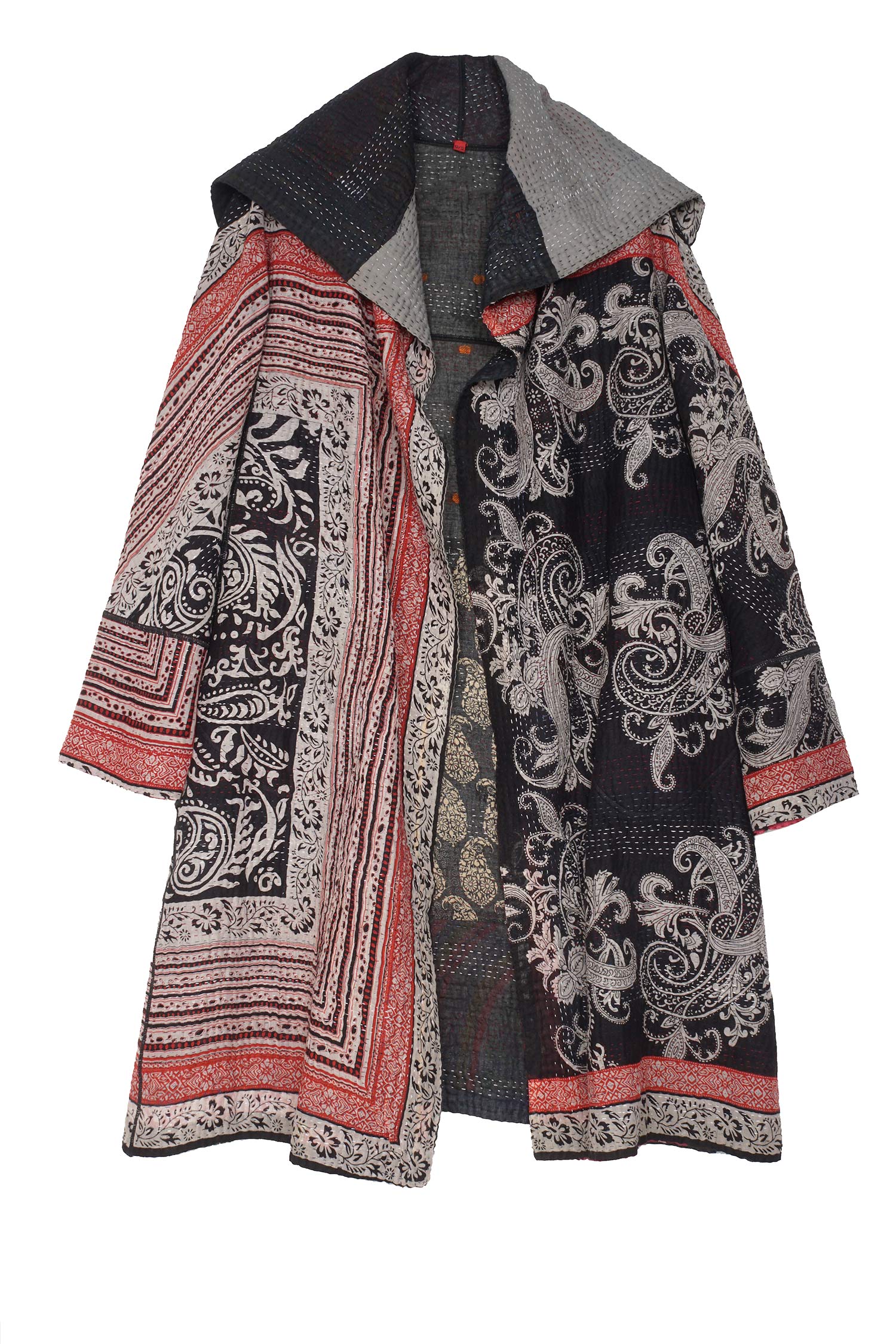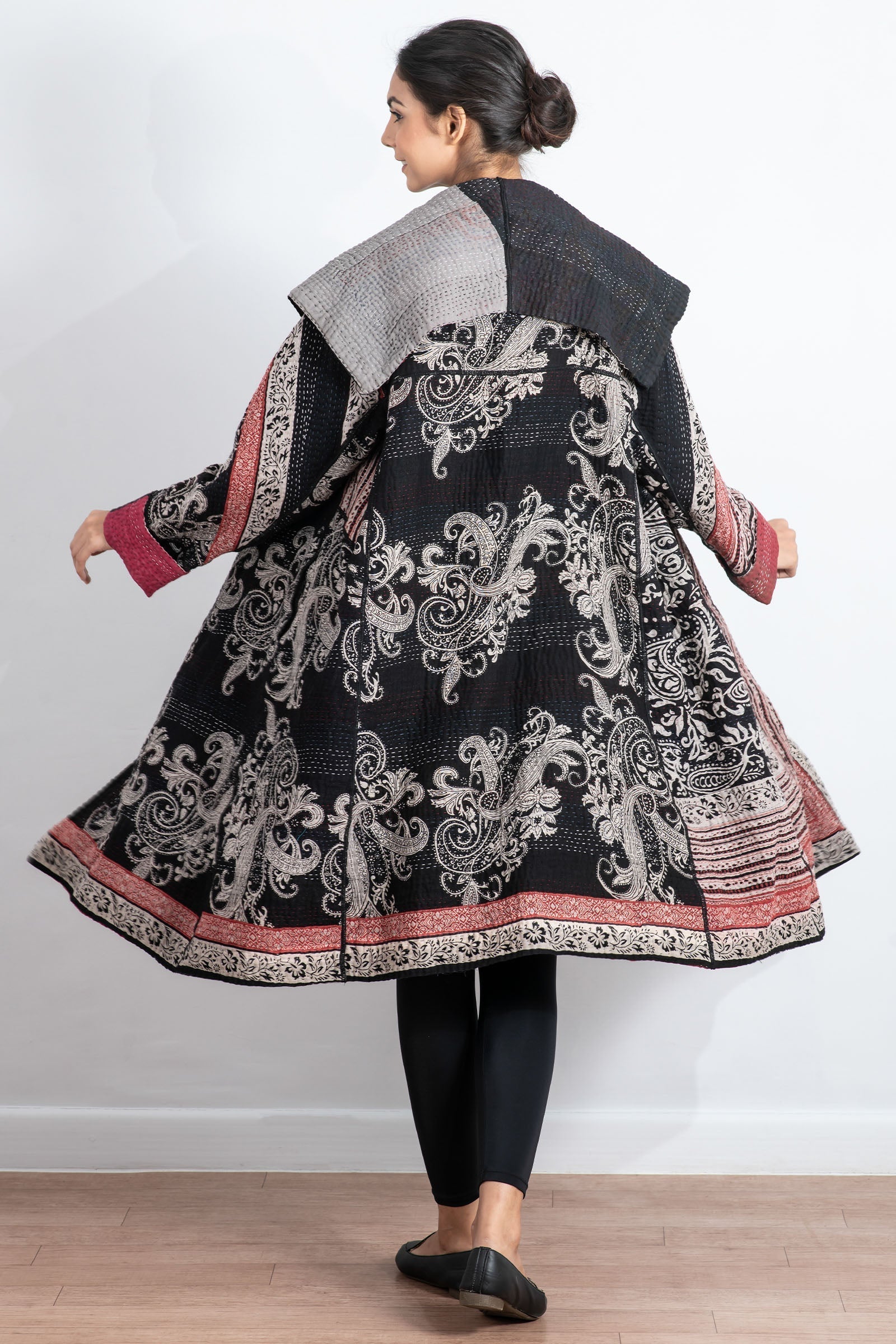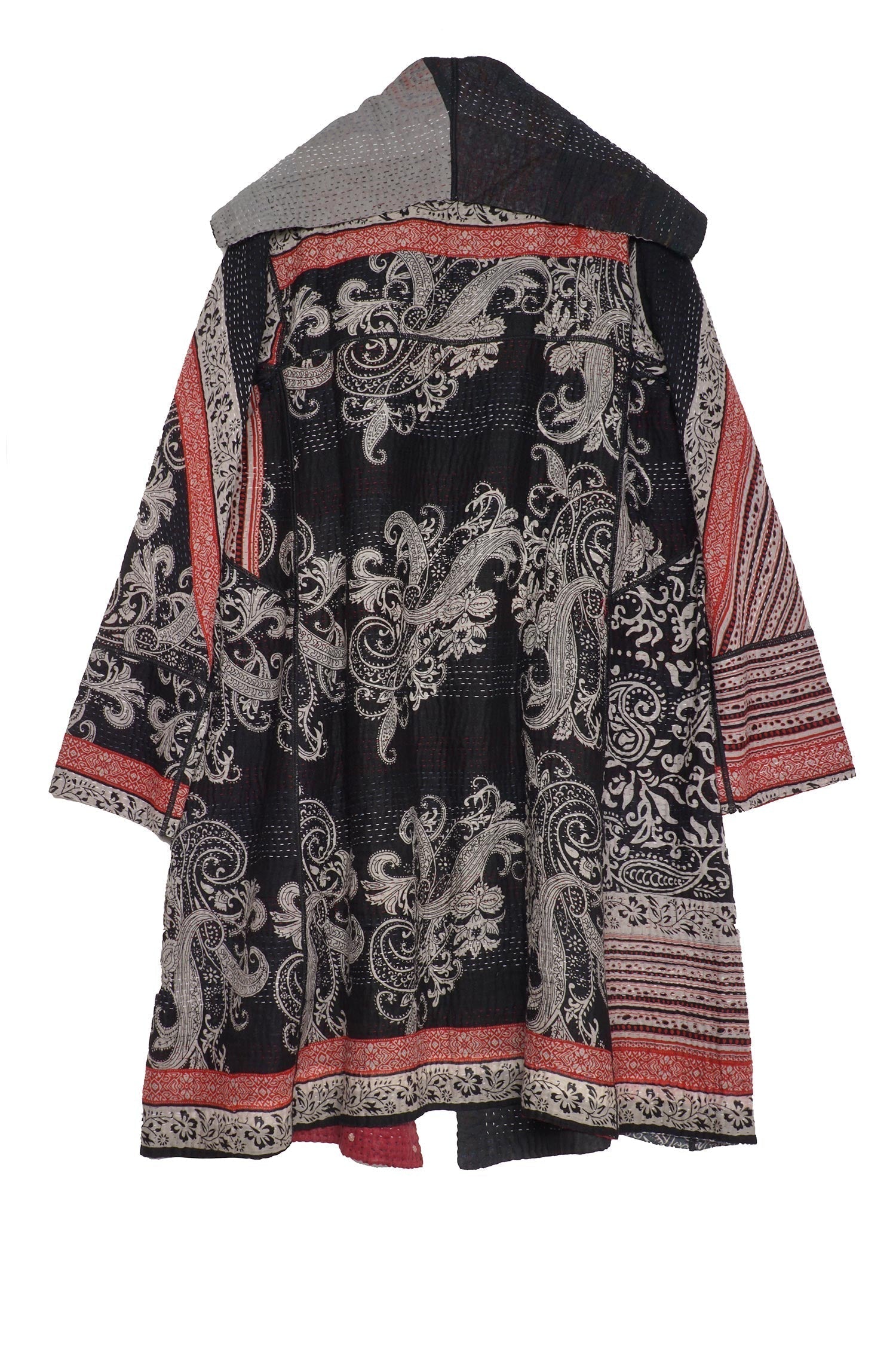 PAISLEY & PATCH KANTHA A-LINE COAT - py4309-blk -
