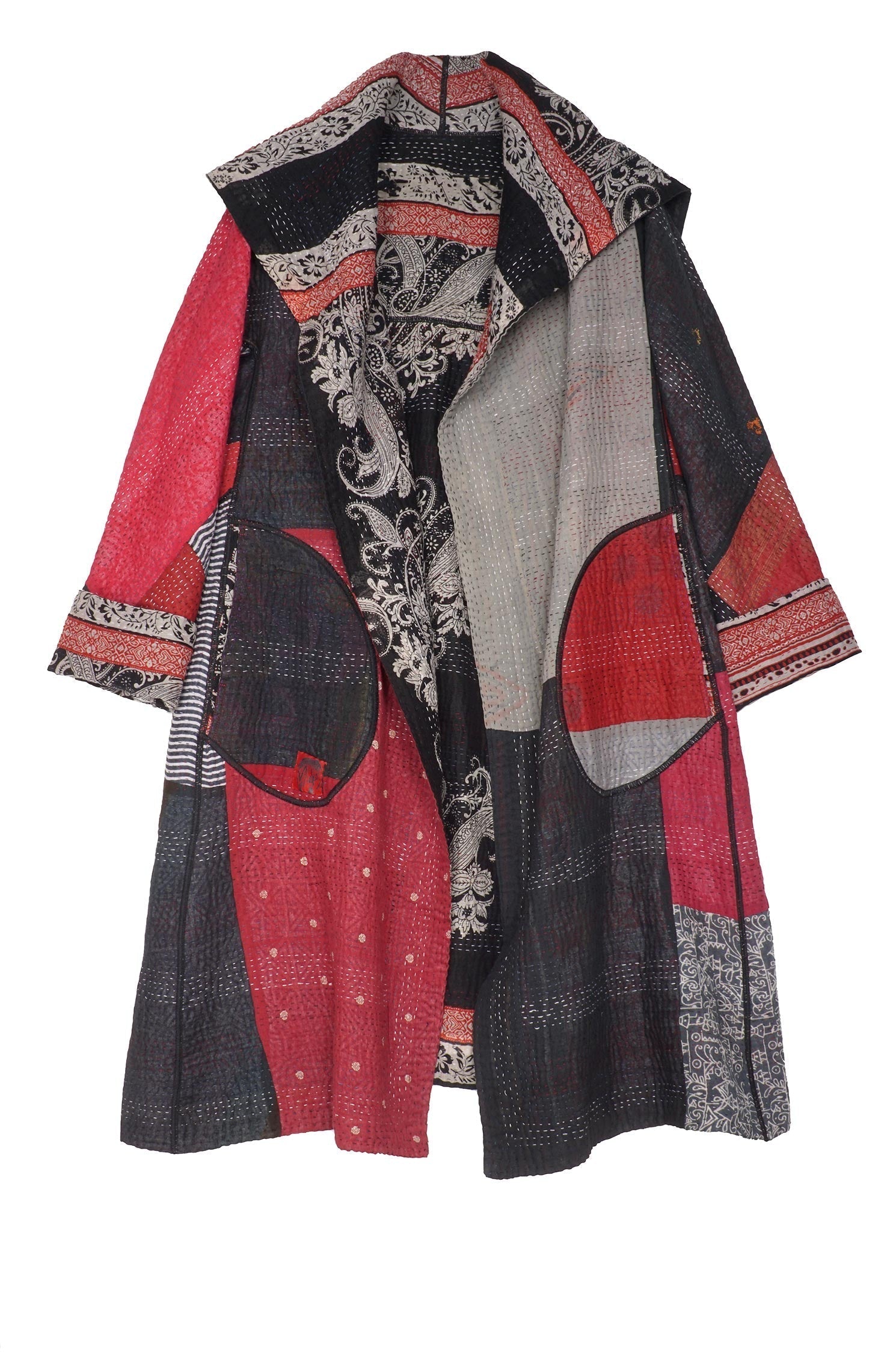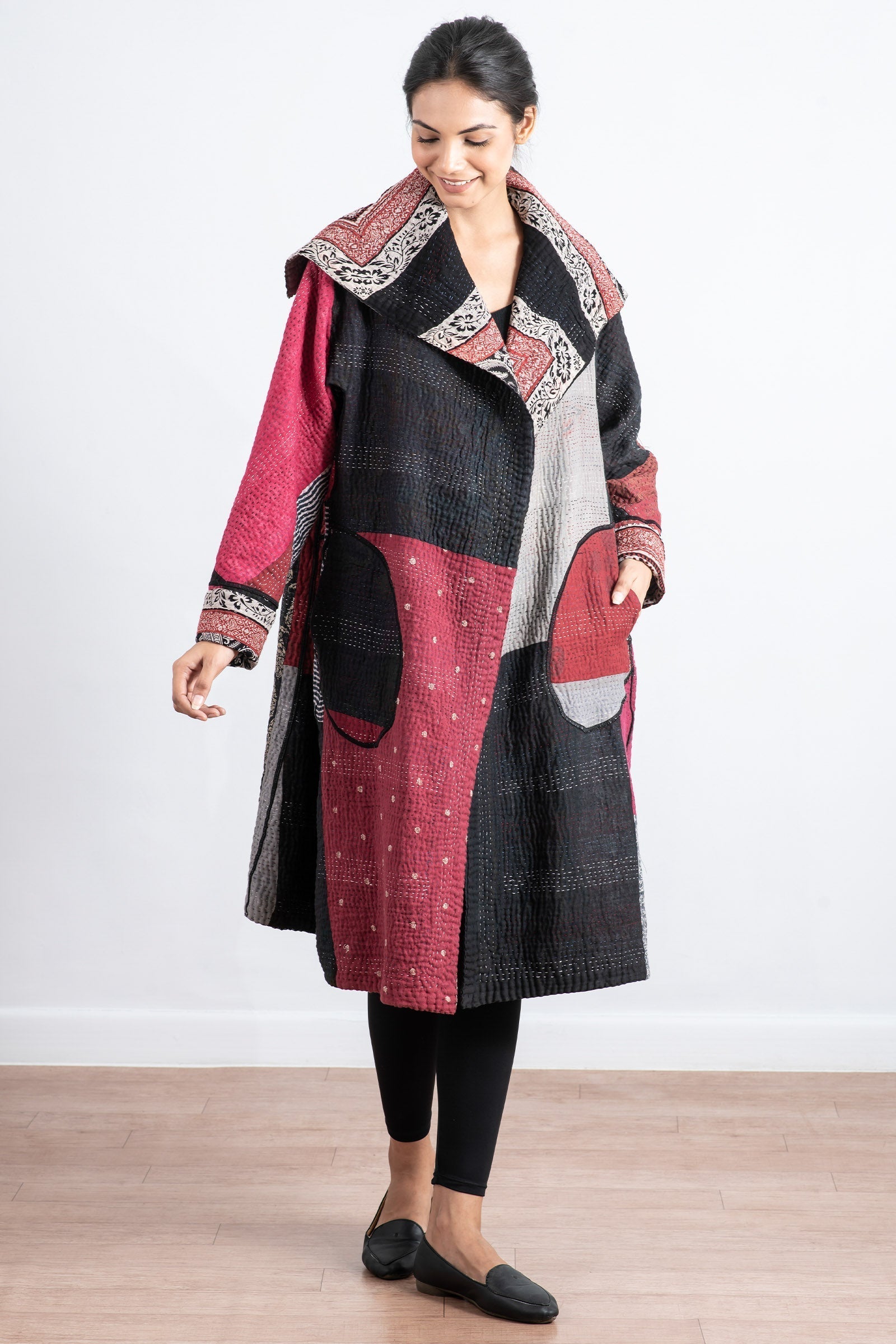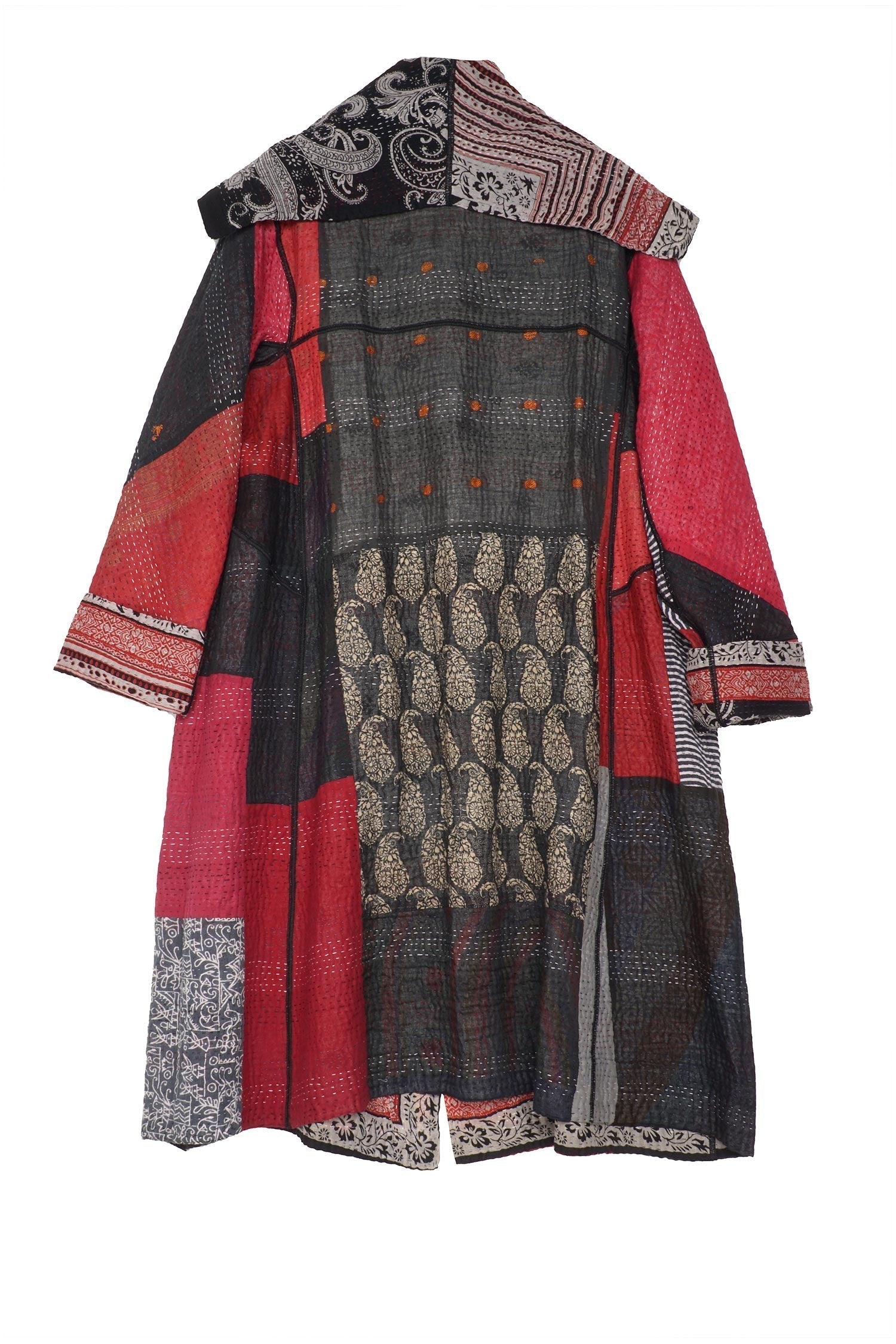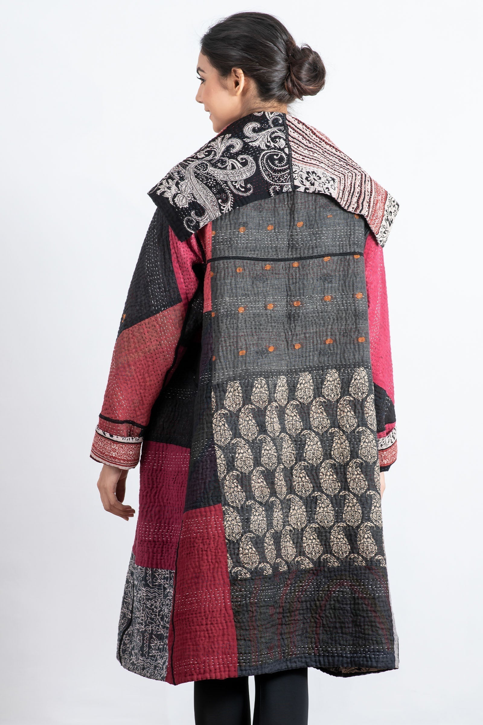 PAISLEY & PATCH KANTHA A-LINE COAT - py4309-blk -