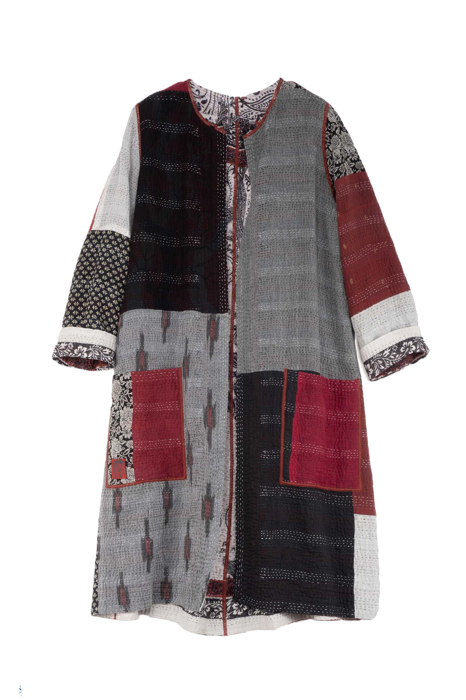 4 Layer Vintage Saris with Hand Stitches on Entire Garment - Reversible