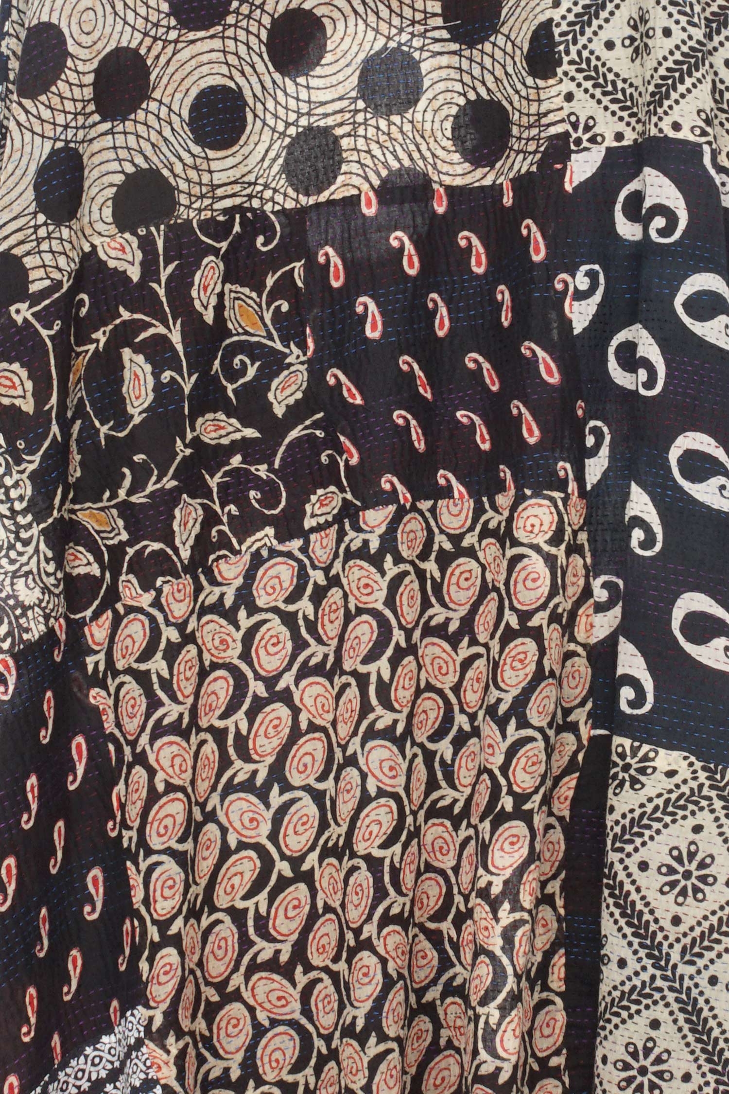 PATCH & CIRCLE PRINT KANTHA POINTY HEM DRESS - pc2415-blk -
