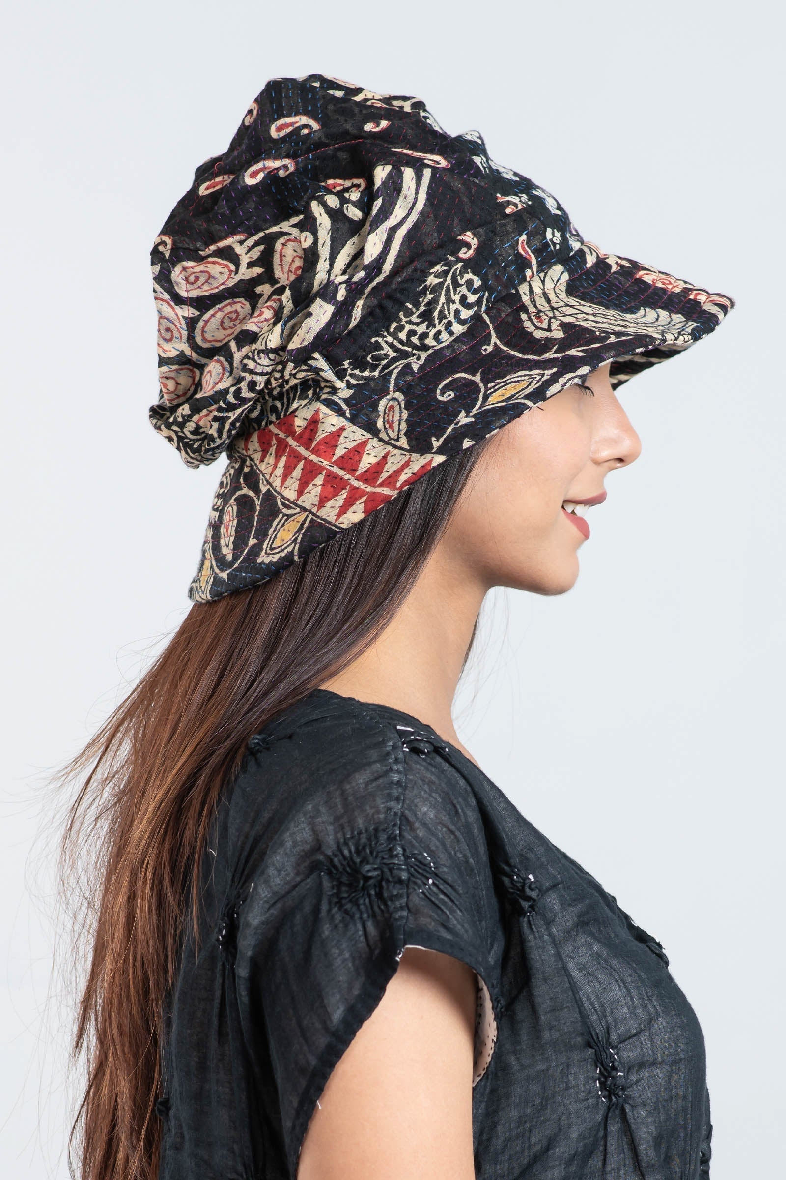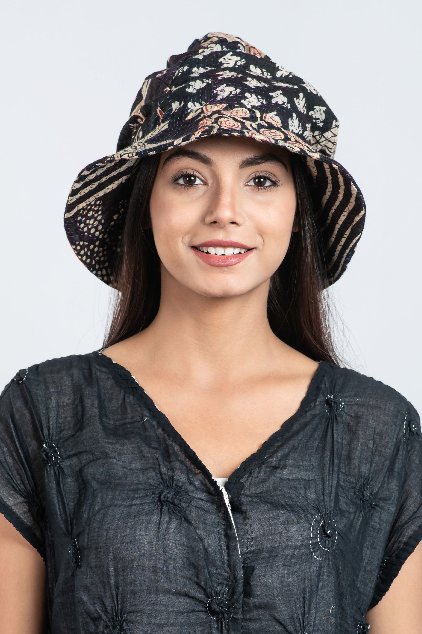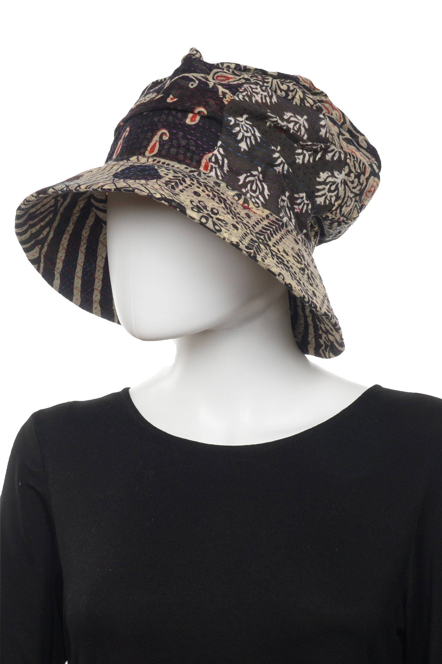 PATCHED PRINT KANTHA FULL BRIM HAT - pp2889-blk -