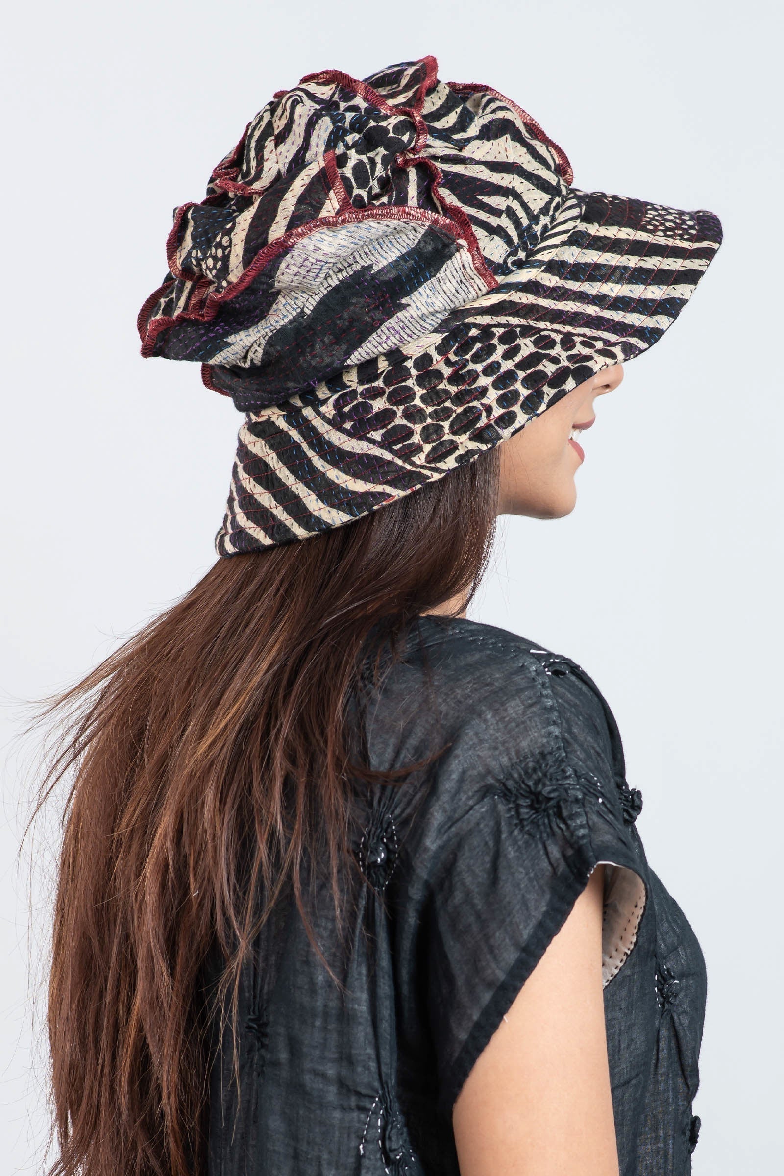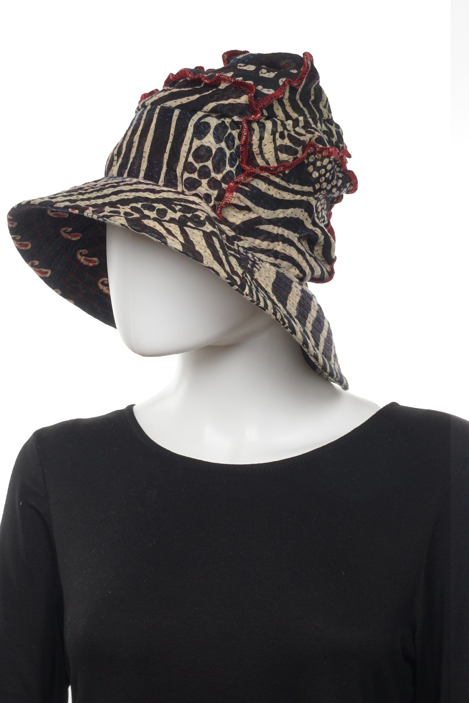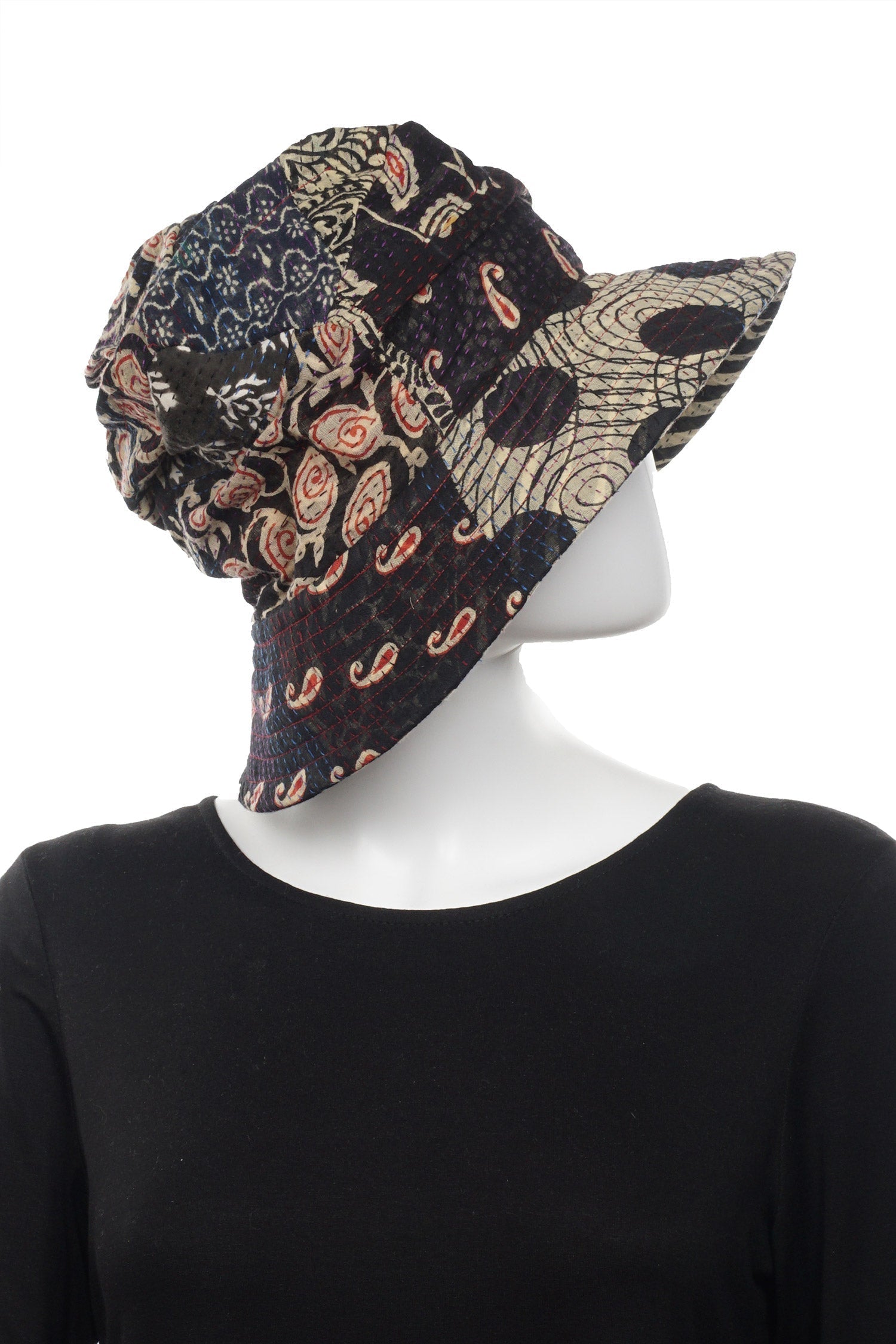 PATCHED PRINT KANTHA FULL BRIM HAT - pp2889-blk -