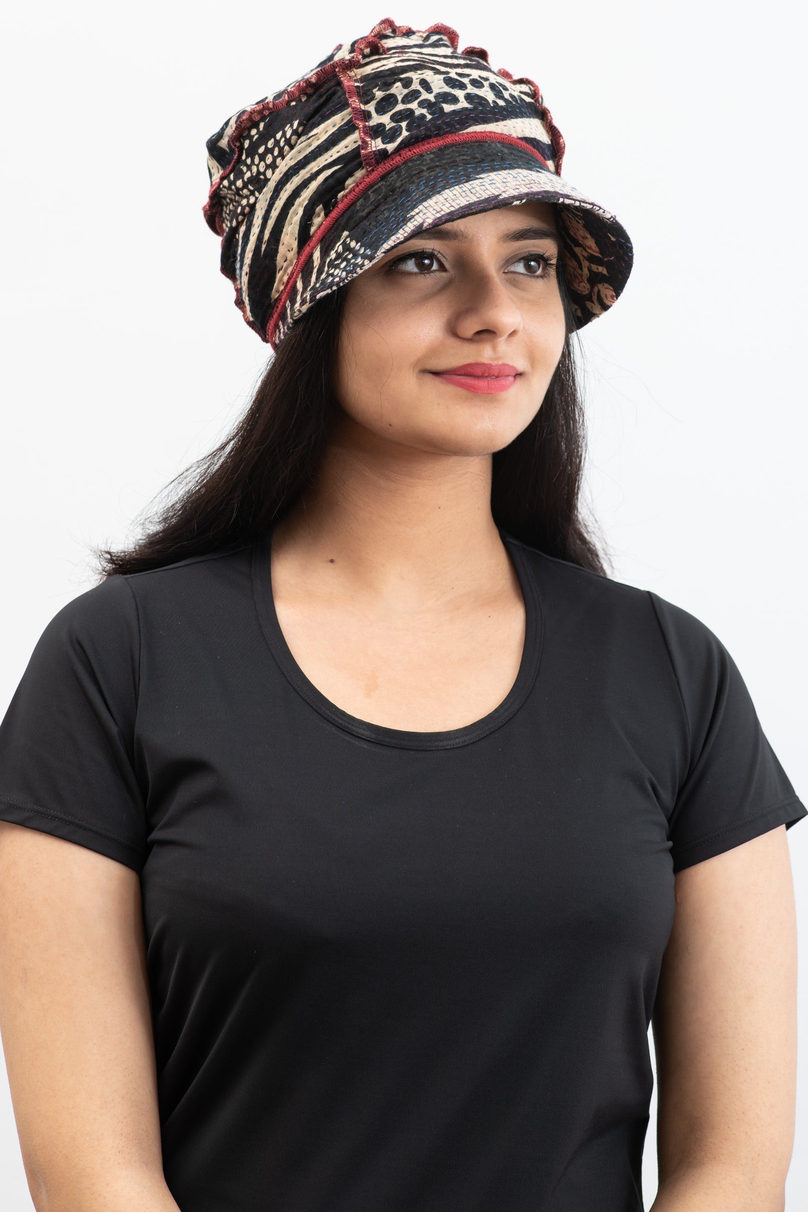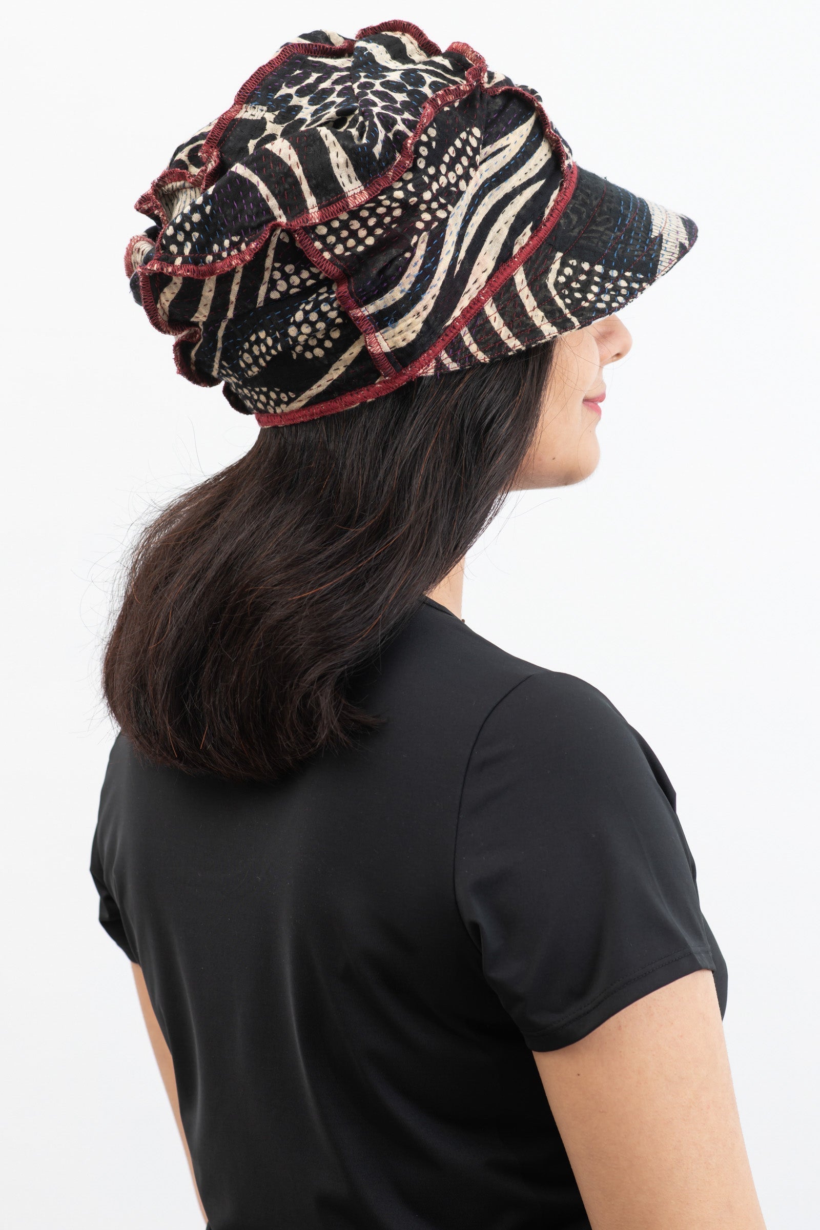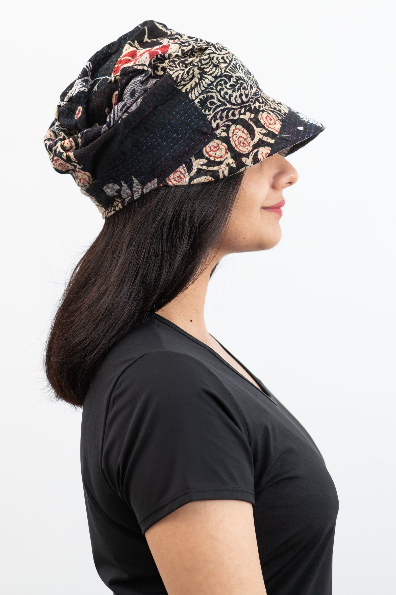 PATCHED PRINT KANTHA HALF BRIM HAT - pp2881-blk -