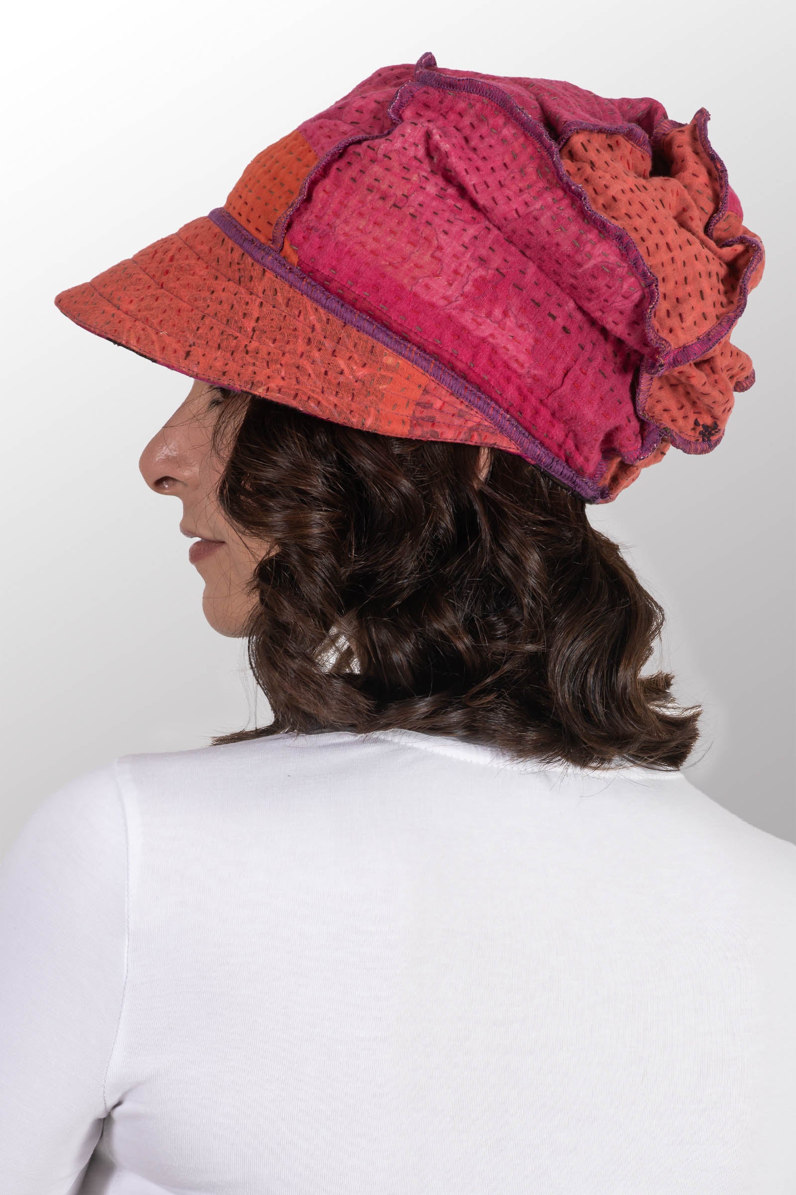 POLKA DOTS & LEAVES KANTHA HALF BRIM HAT - dl4881-pik -