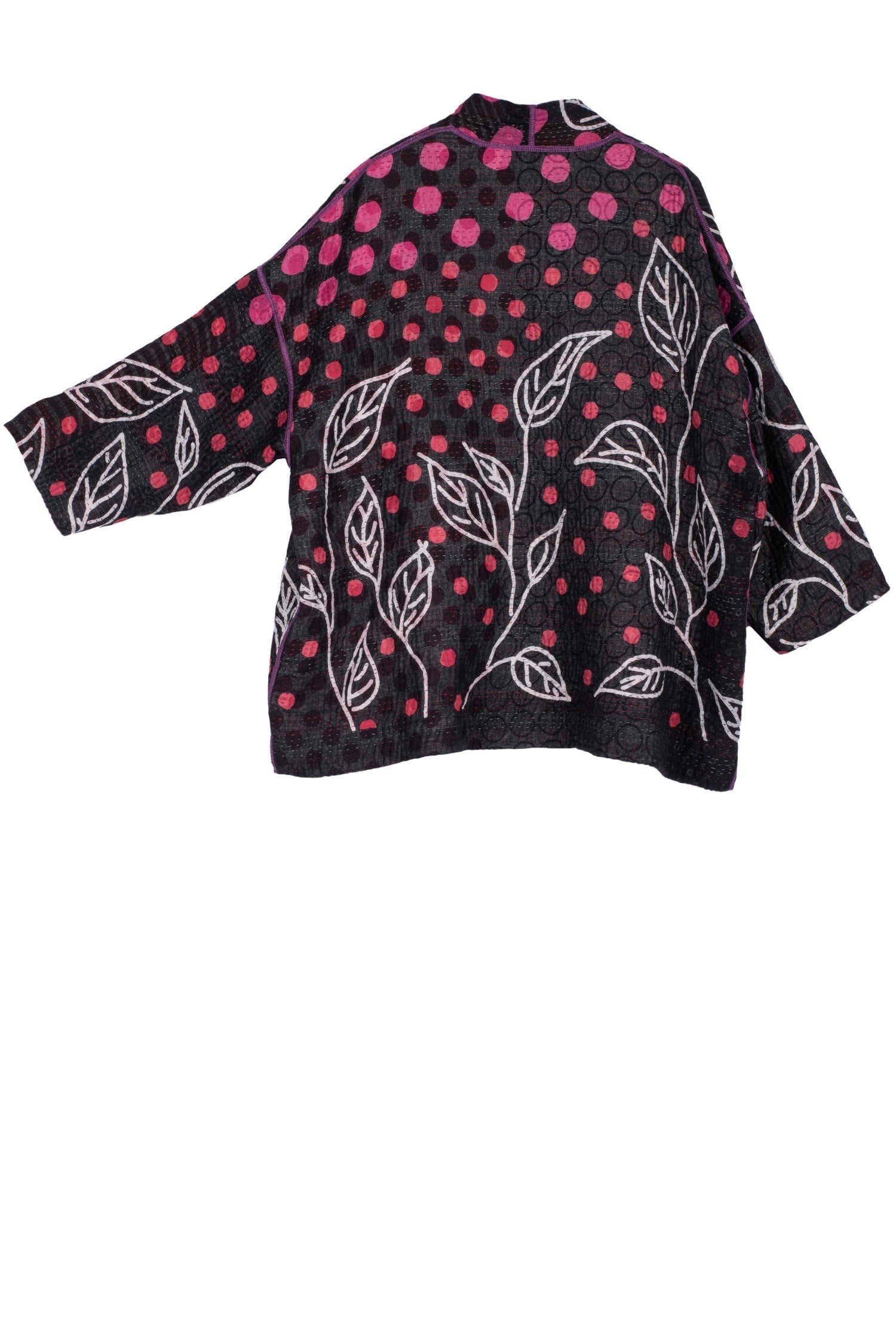 POLKA DOTS & LEAVES KANTHA MINI KIMONO JKT - dl4055-pik -