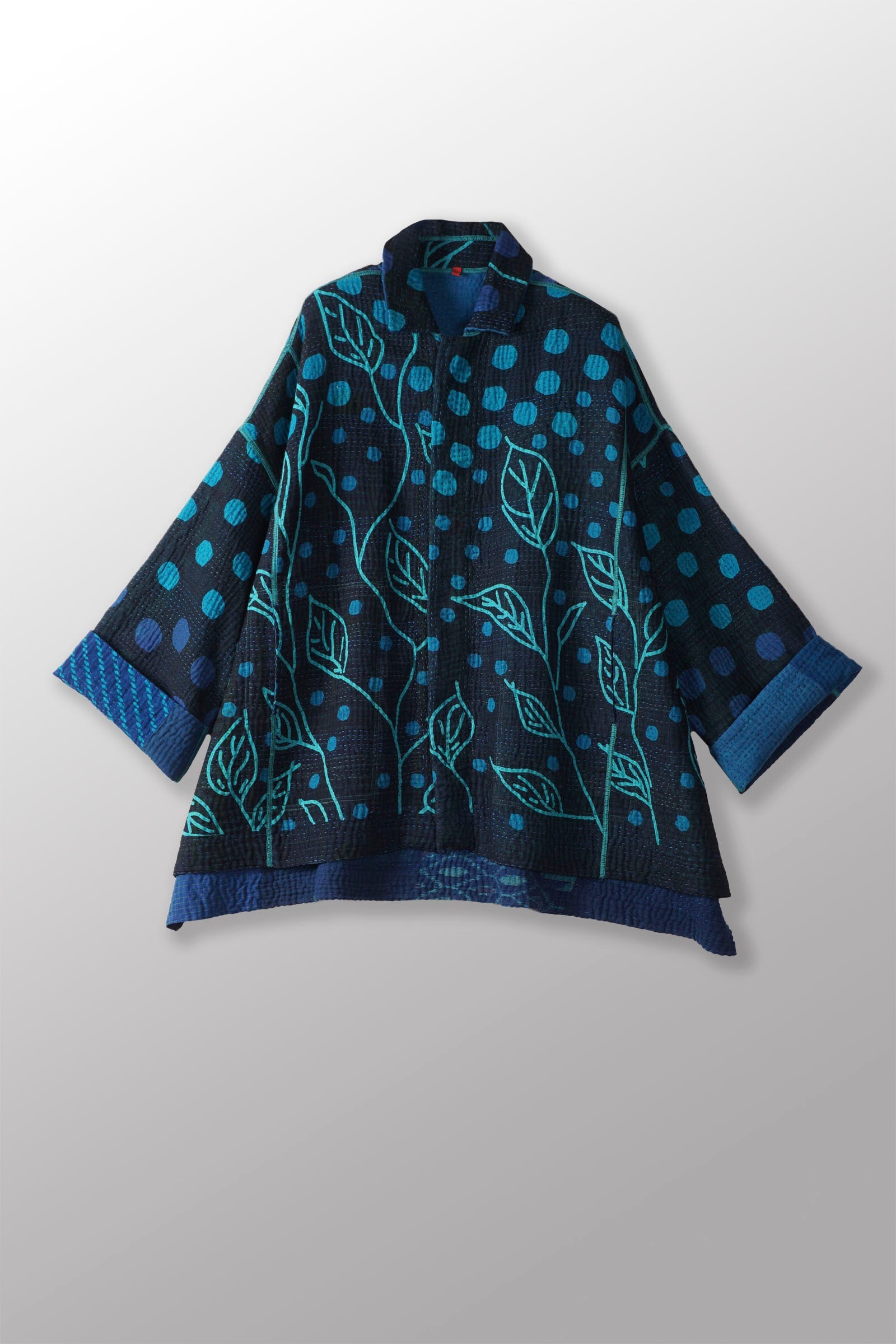 POLKA DOTS & LEAVES KANTHA OVERSIZED MINI COAT - dl4332-tuq -
