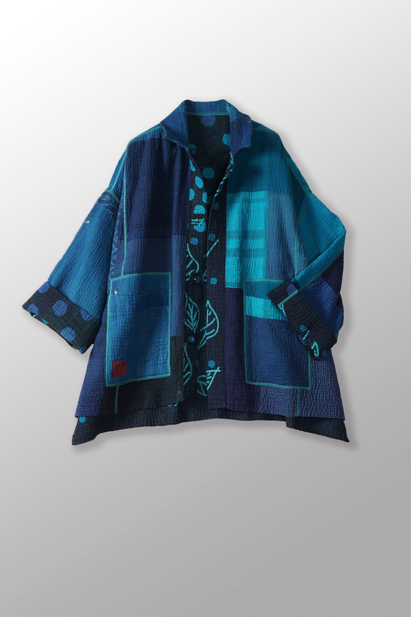 4 Layer Vintage Saris with Hand Stitches on Entire Garment - Reversible