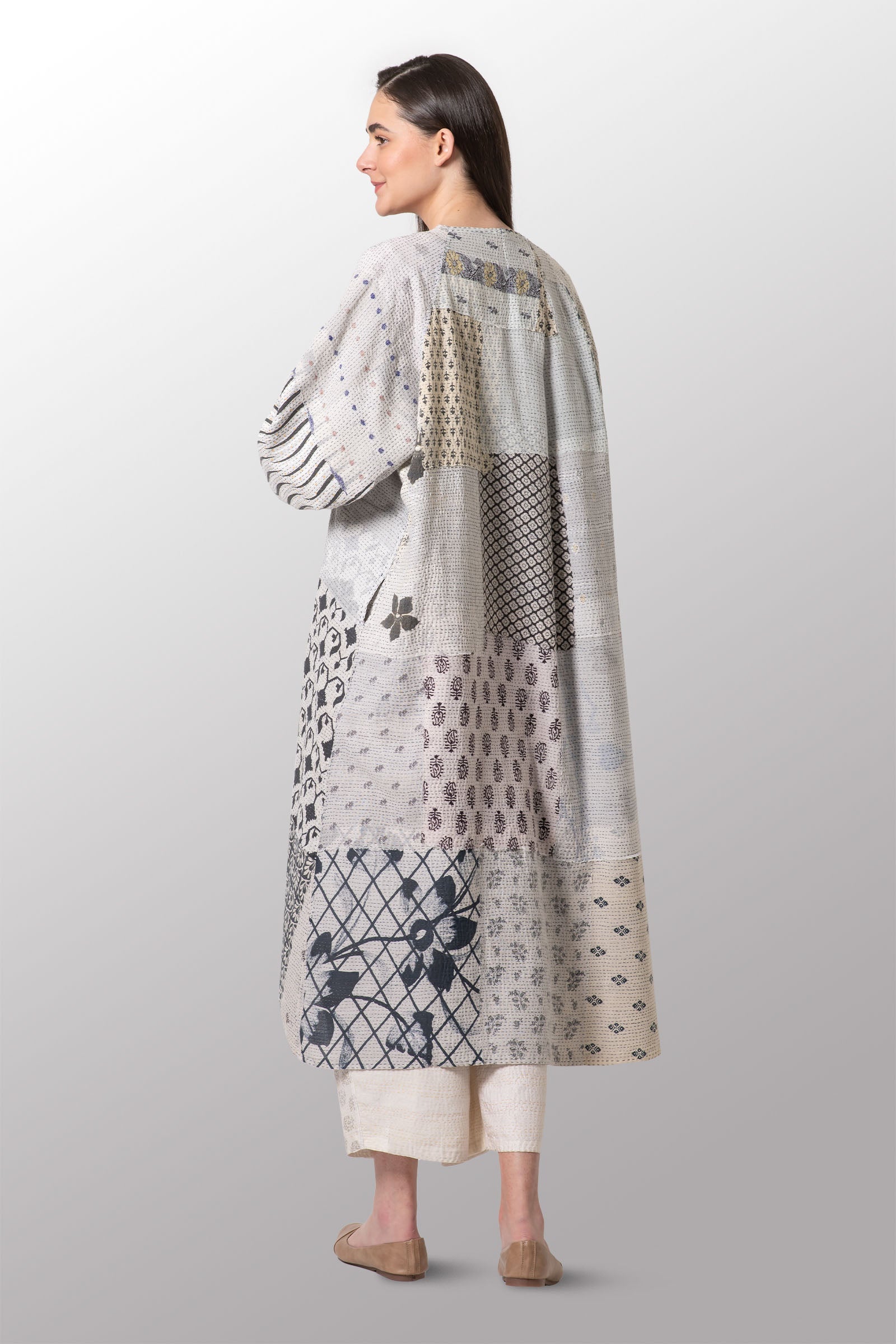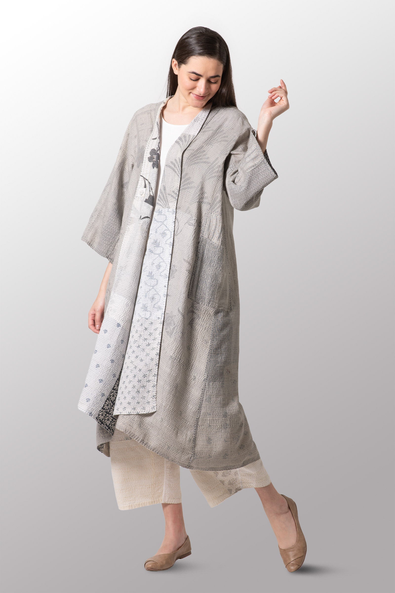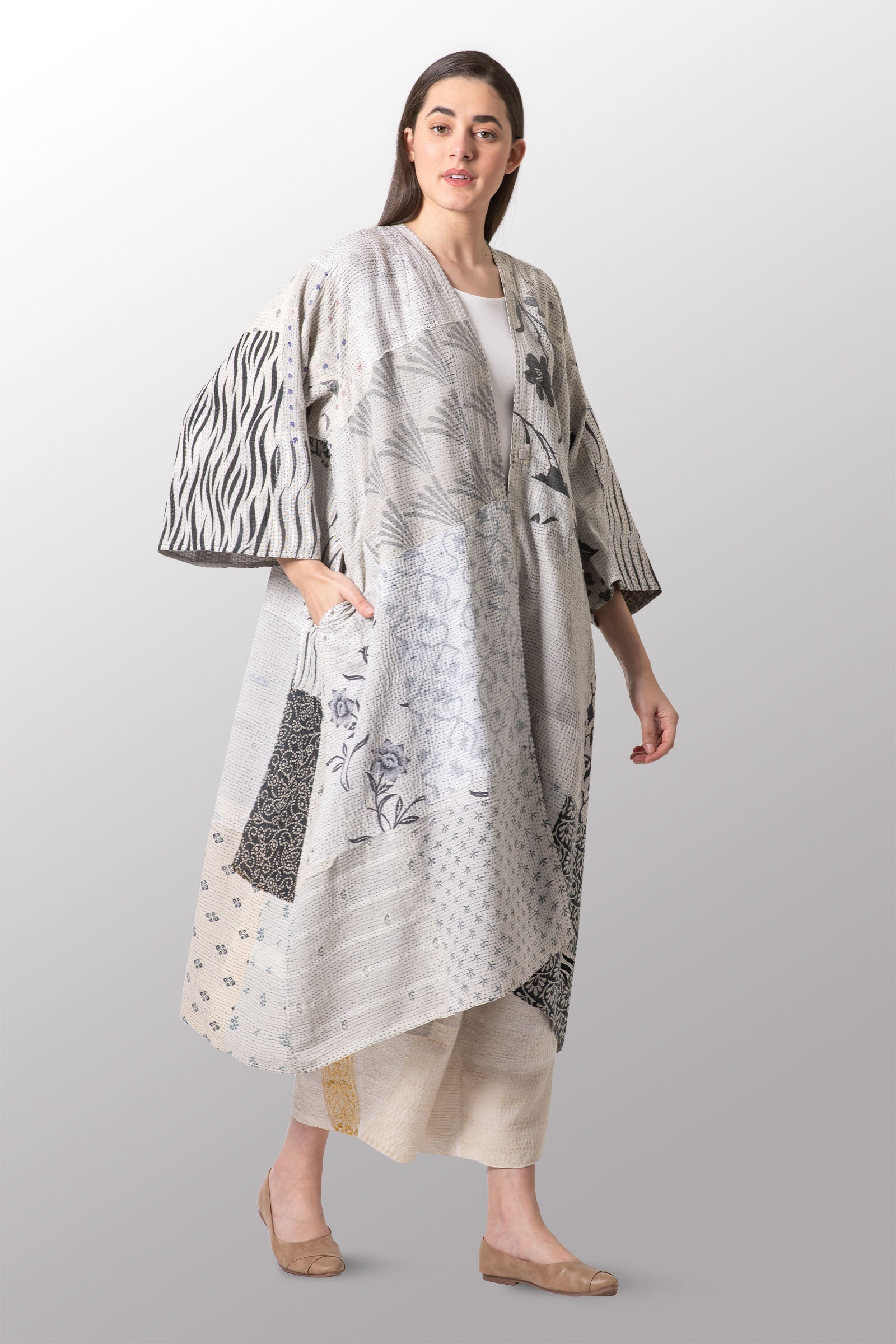 POWDER PATCH KANTHA KIMONO MAXI - pd2318-gry -