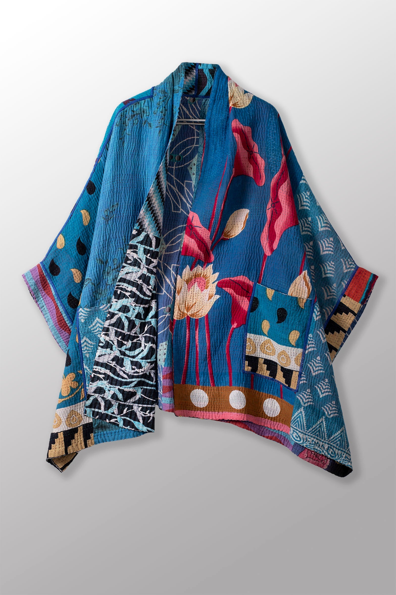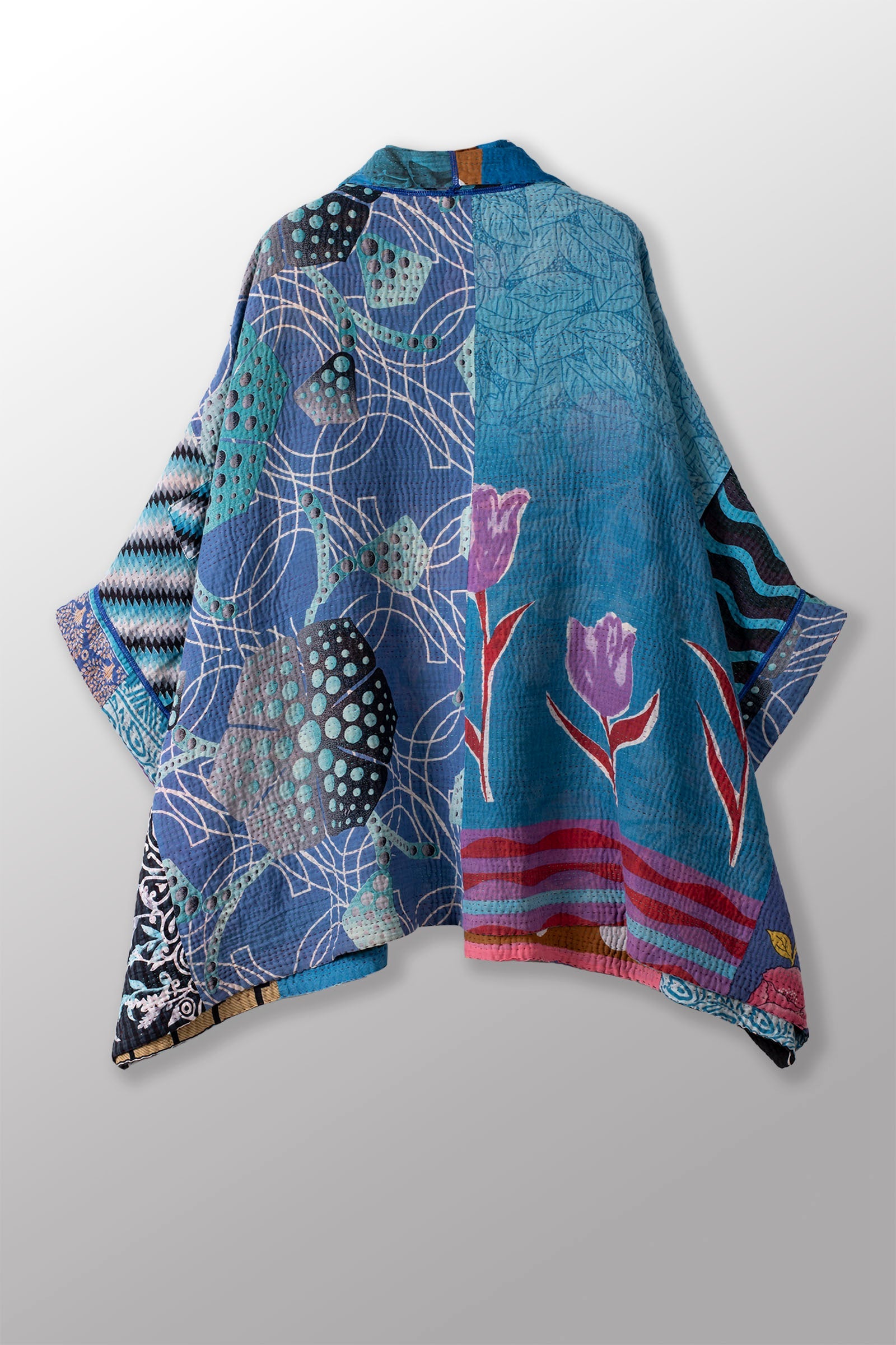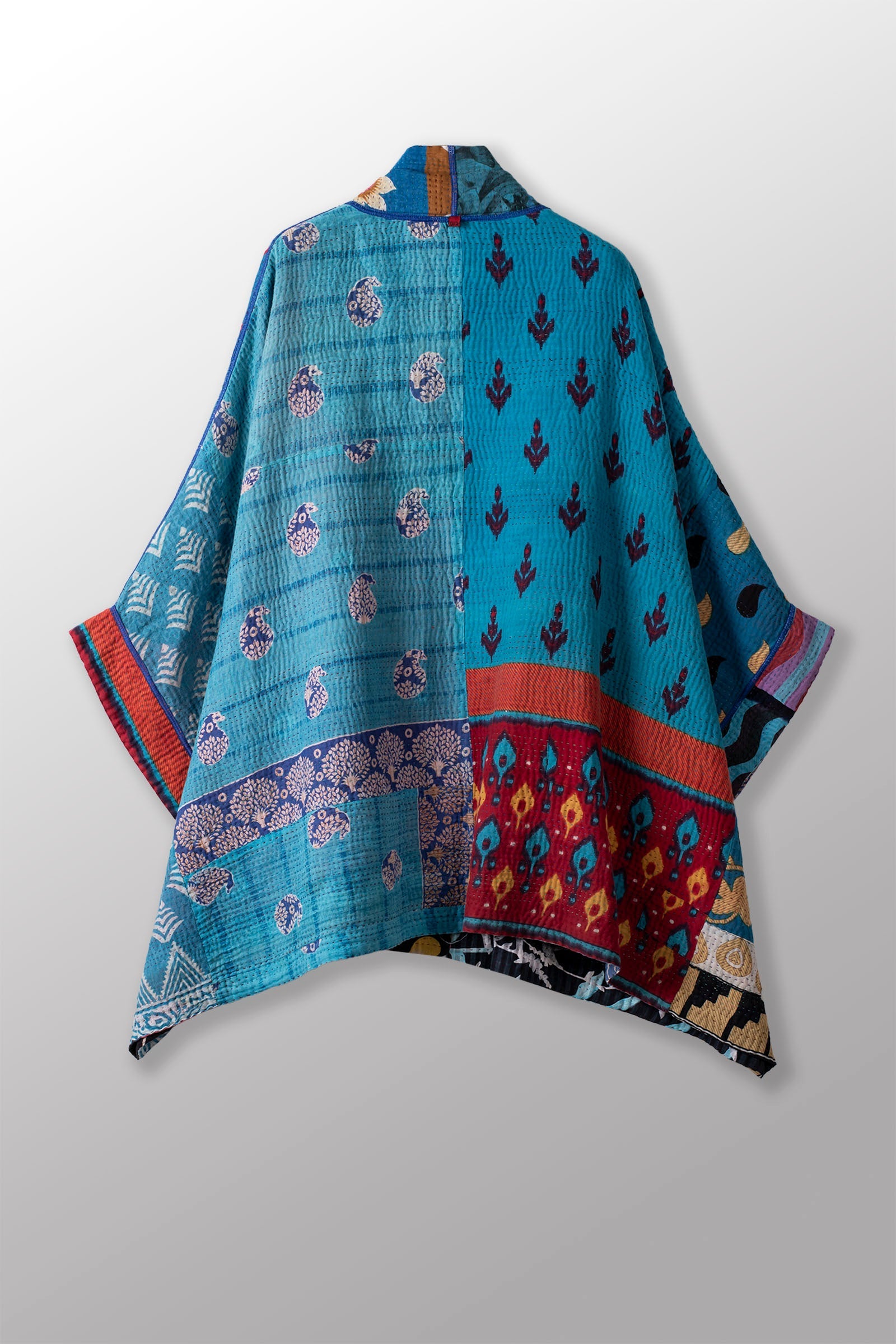 PUZZLE KANTHA DOUBLE COLLAR PONCHO - pz4323-blu -
