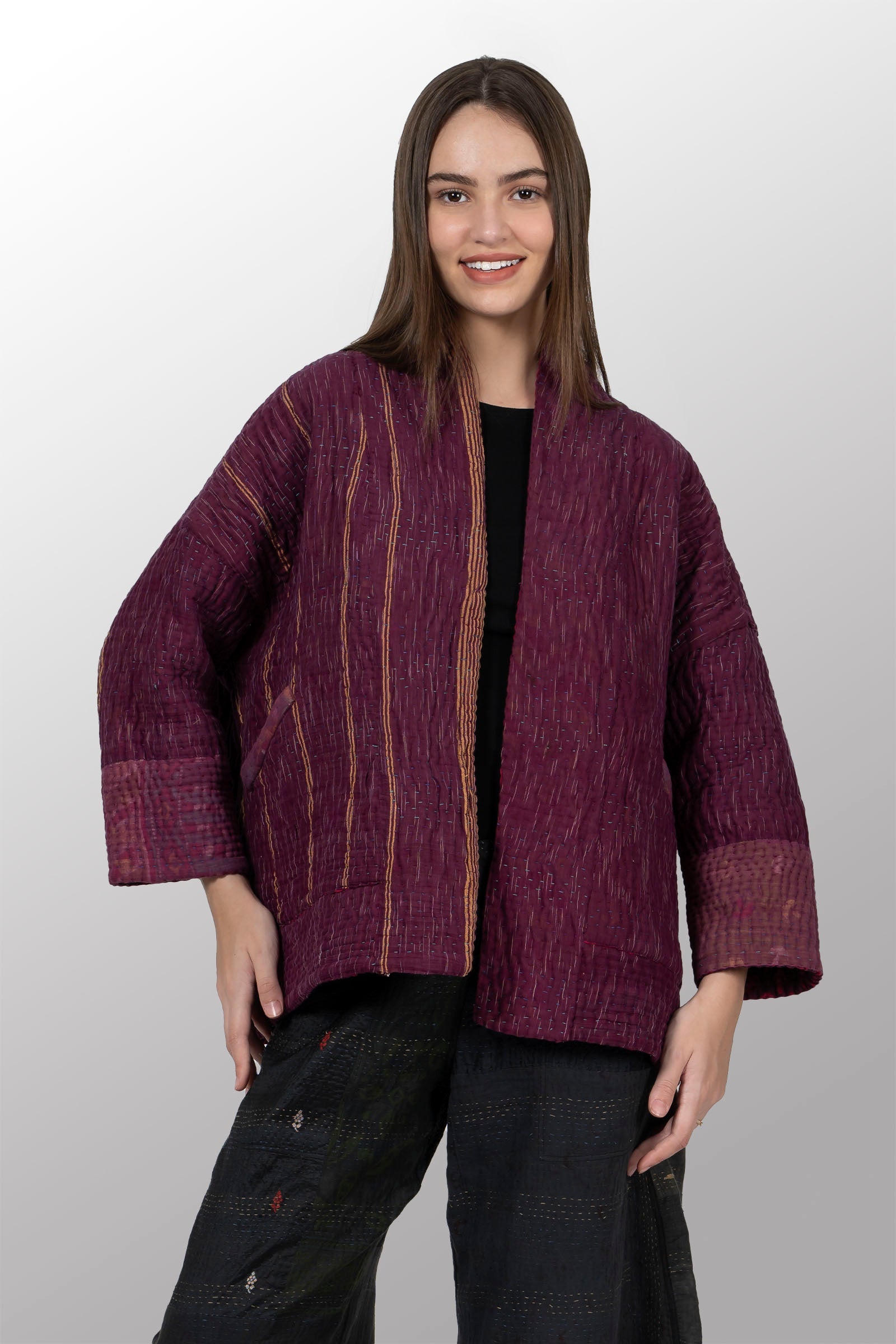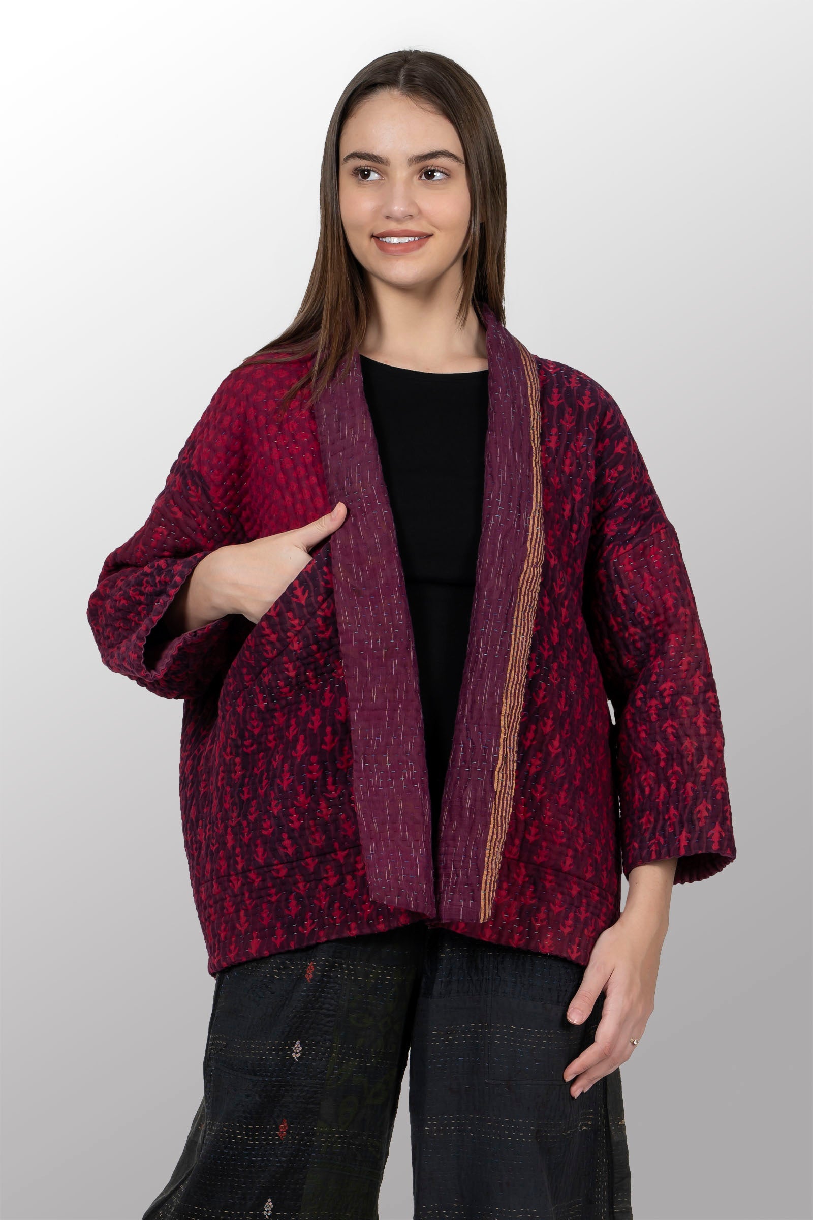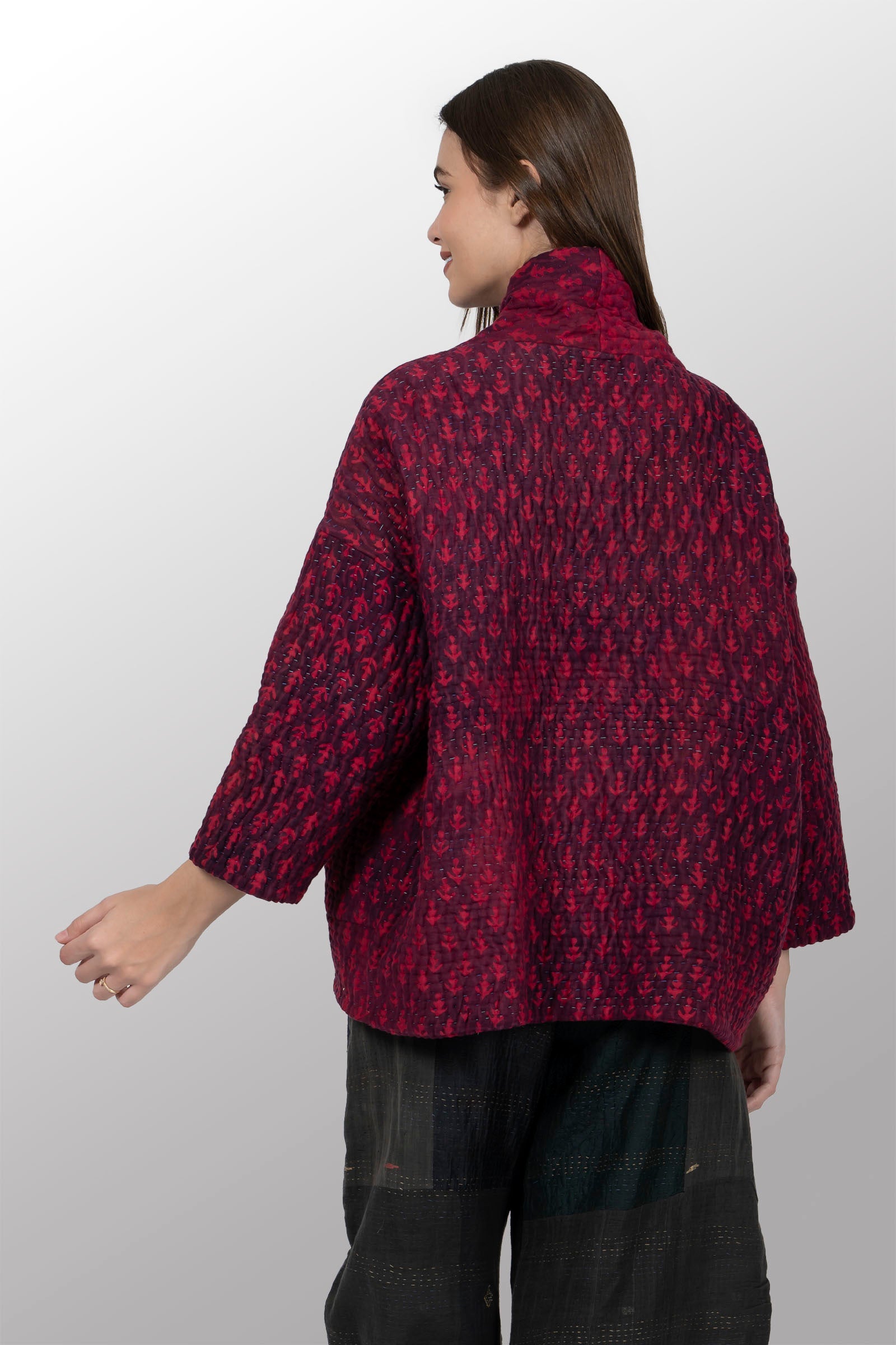 QUILTED OVERDYE COTTON KANTHA BIG POCKET JACKET - oq5057-cred001a -