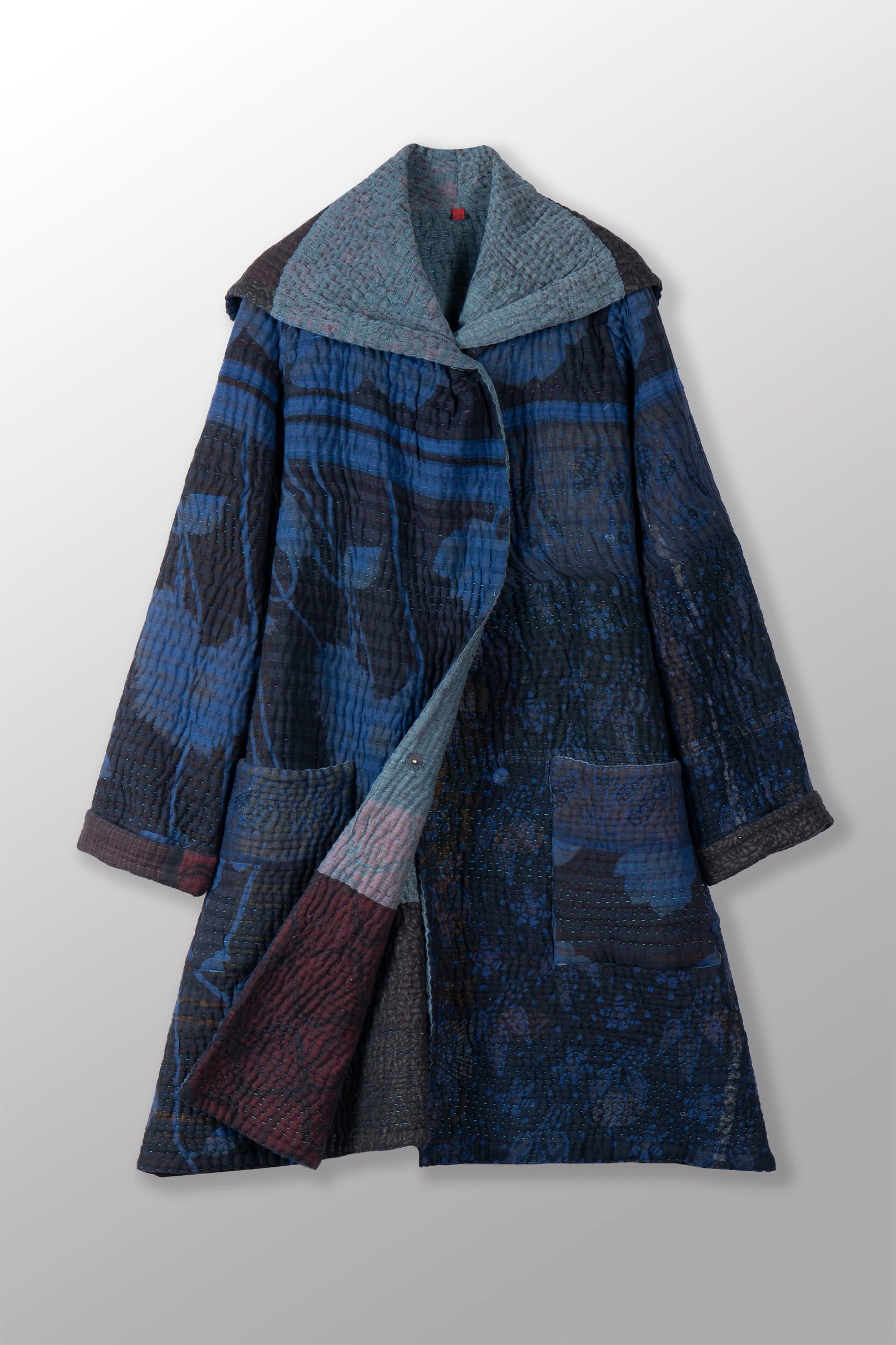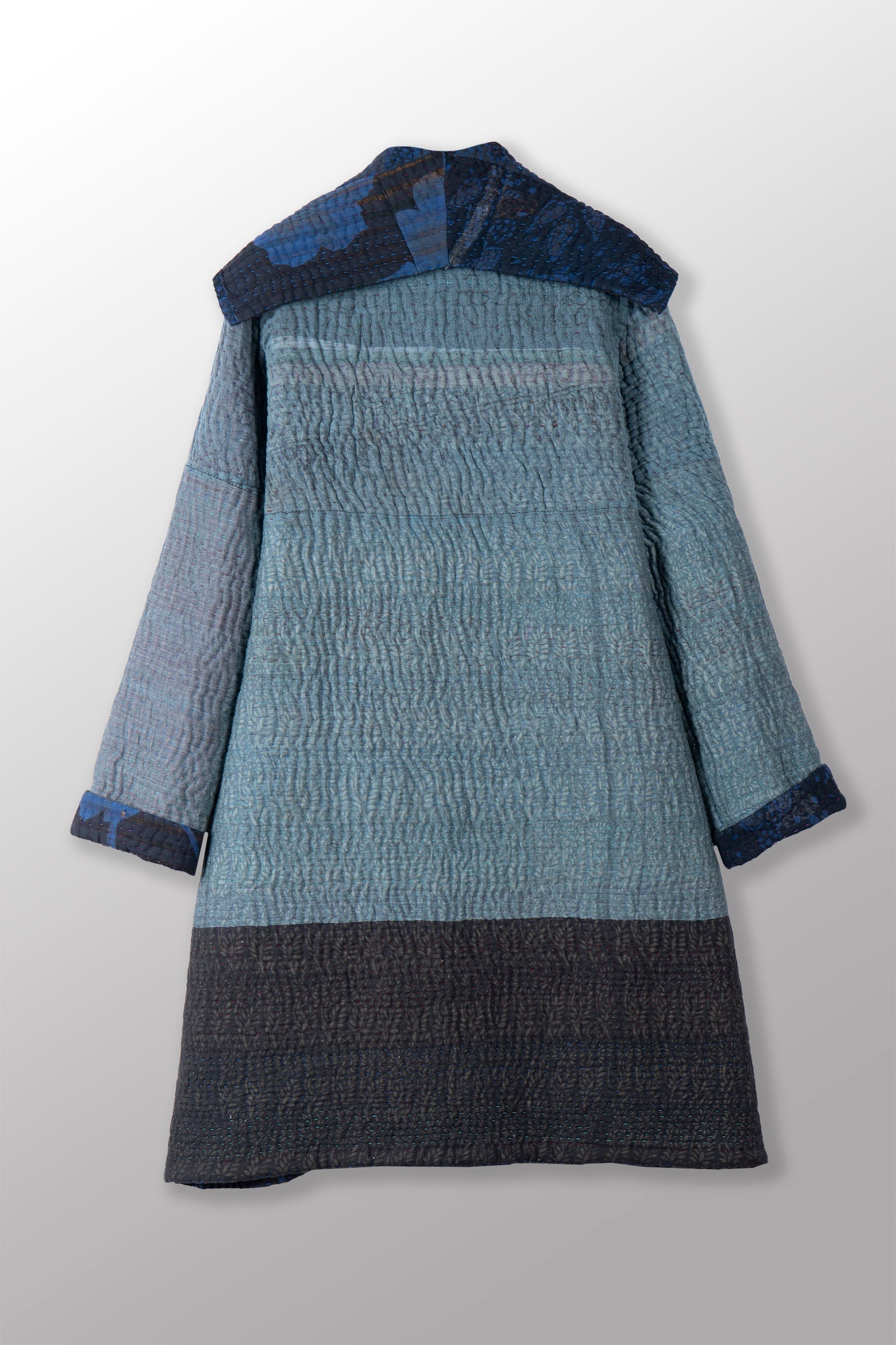 QUILTED OVERDYE COTTON KANTHA POCKET MEDIUM COAT - oq5346-cblu008s -