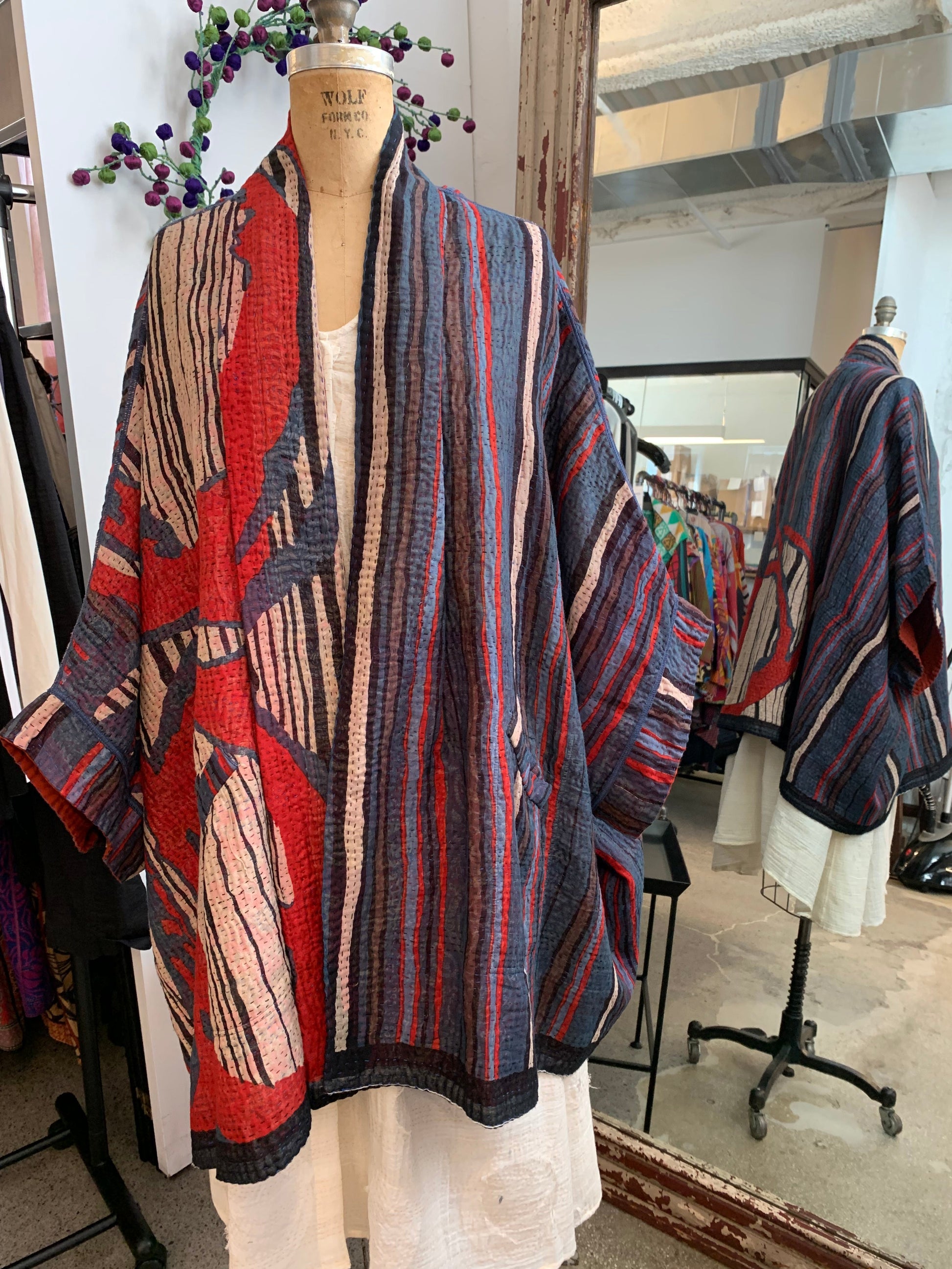 4 Layer Vintage Saris with Hand Stitches on Entire Garment - Reversible