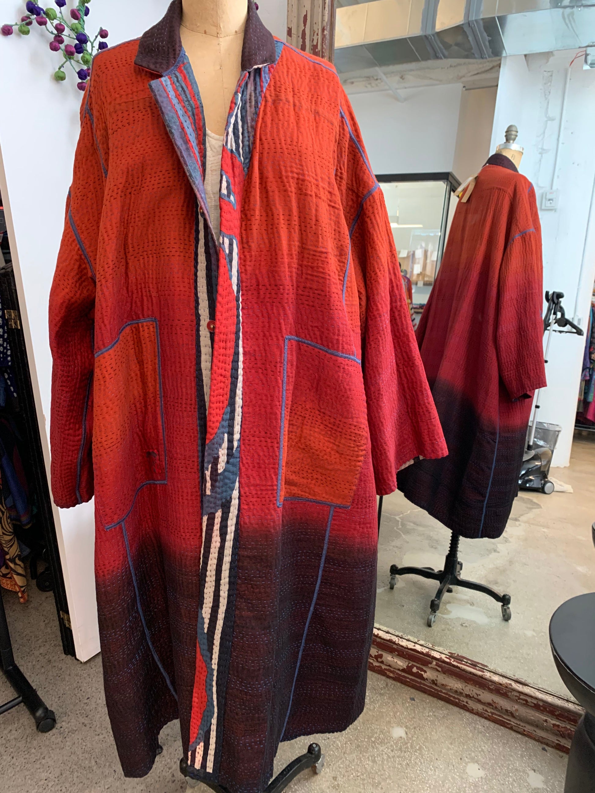 STRIPE AND BENDS KANTHA NEW OVERSIZED COAT - sb4342-red -