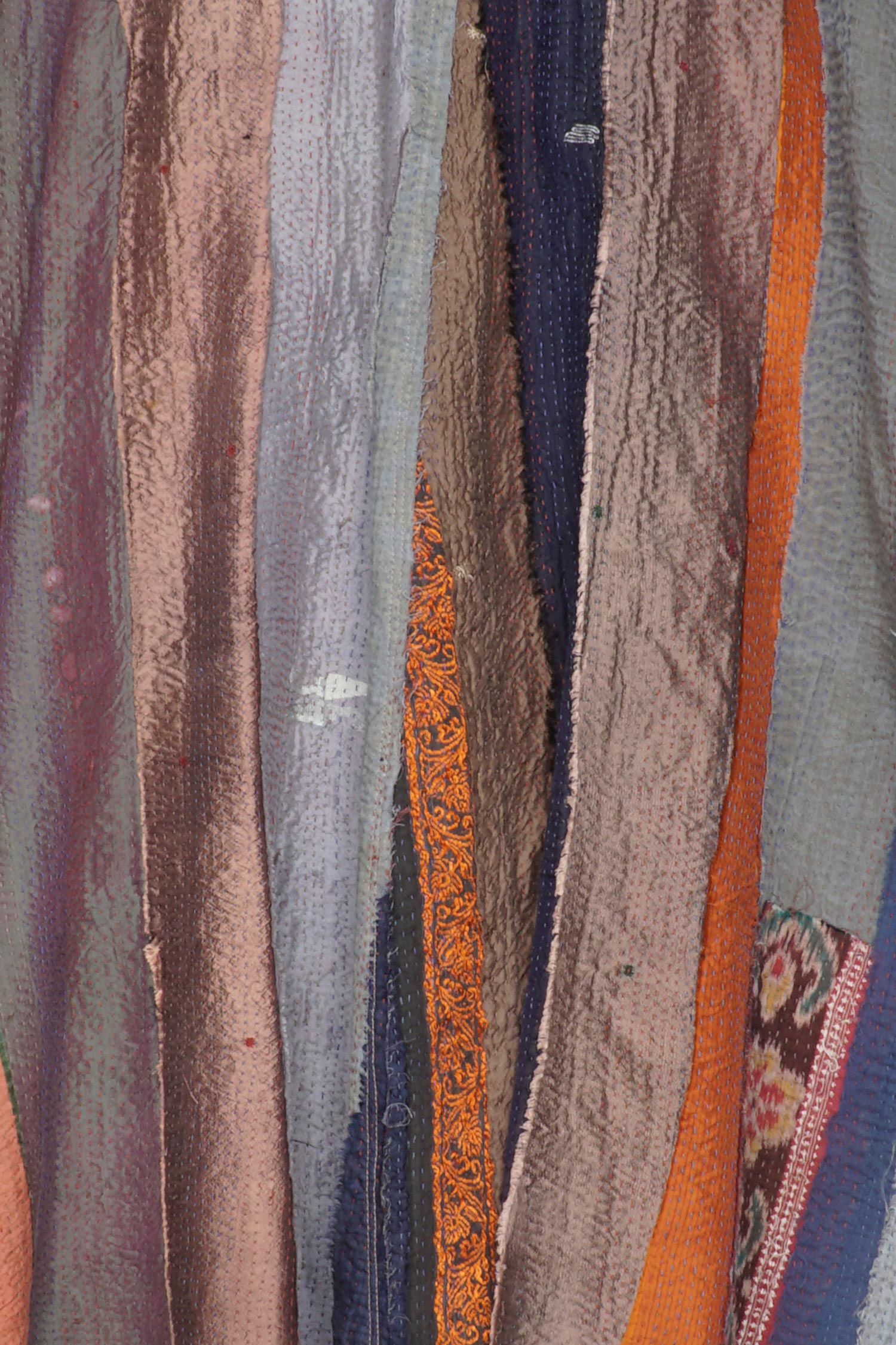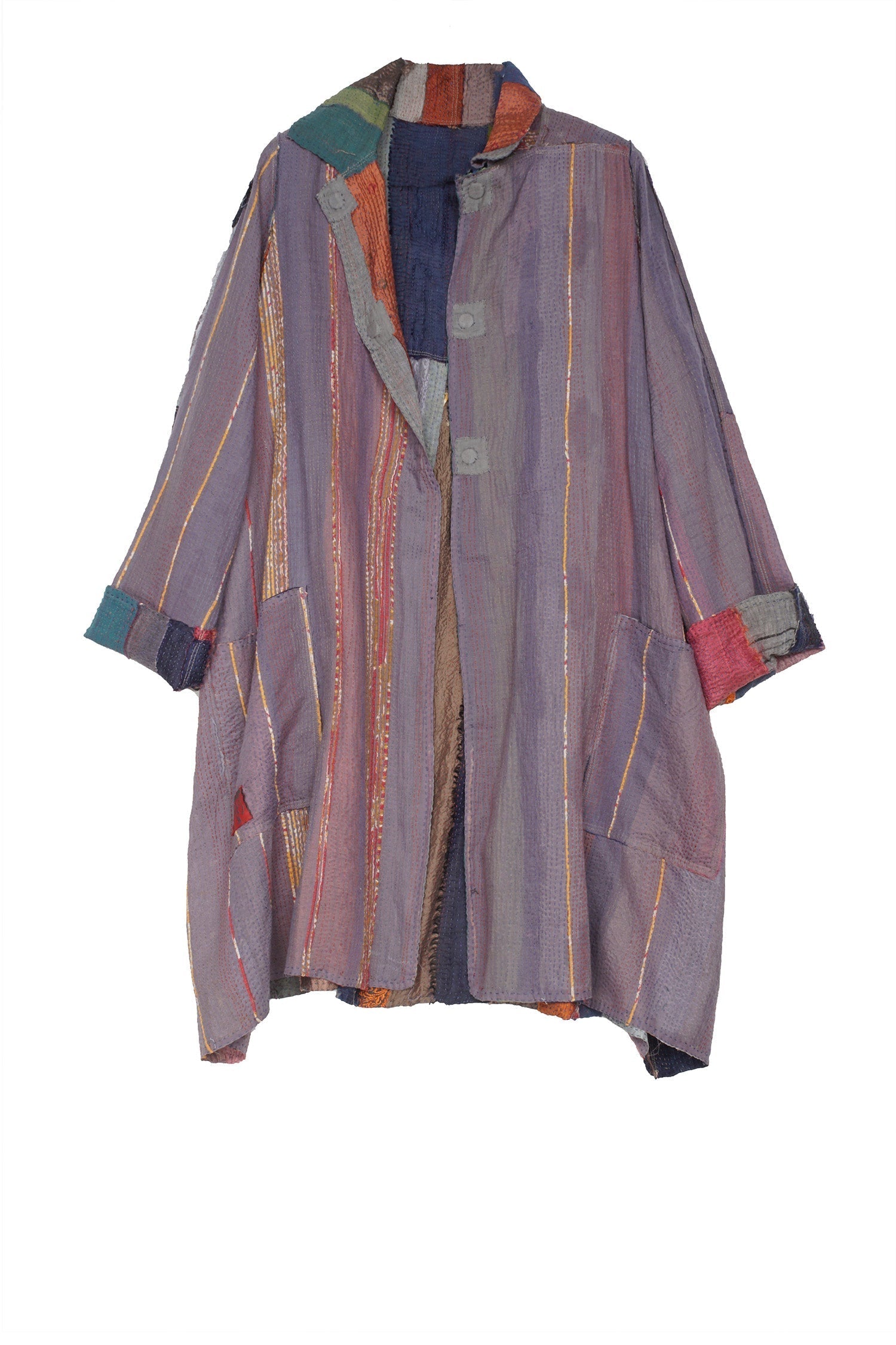 STRIPE FRAYED & HANDWOVEN KANTHA A-LINE DUSTER - ft2311-ntl -