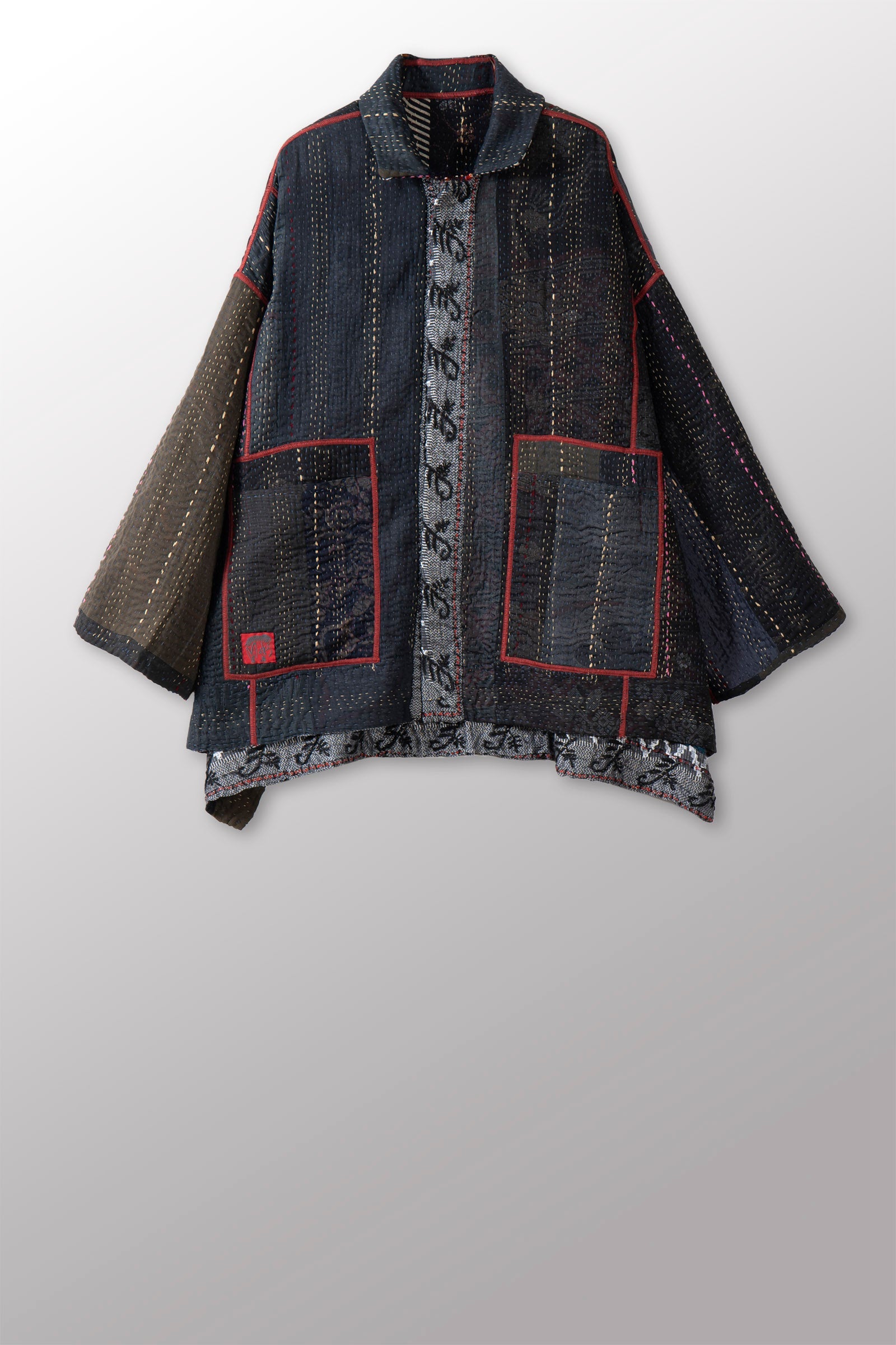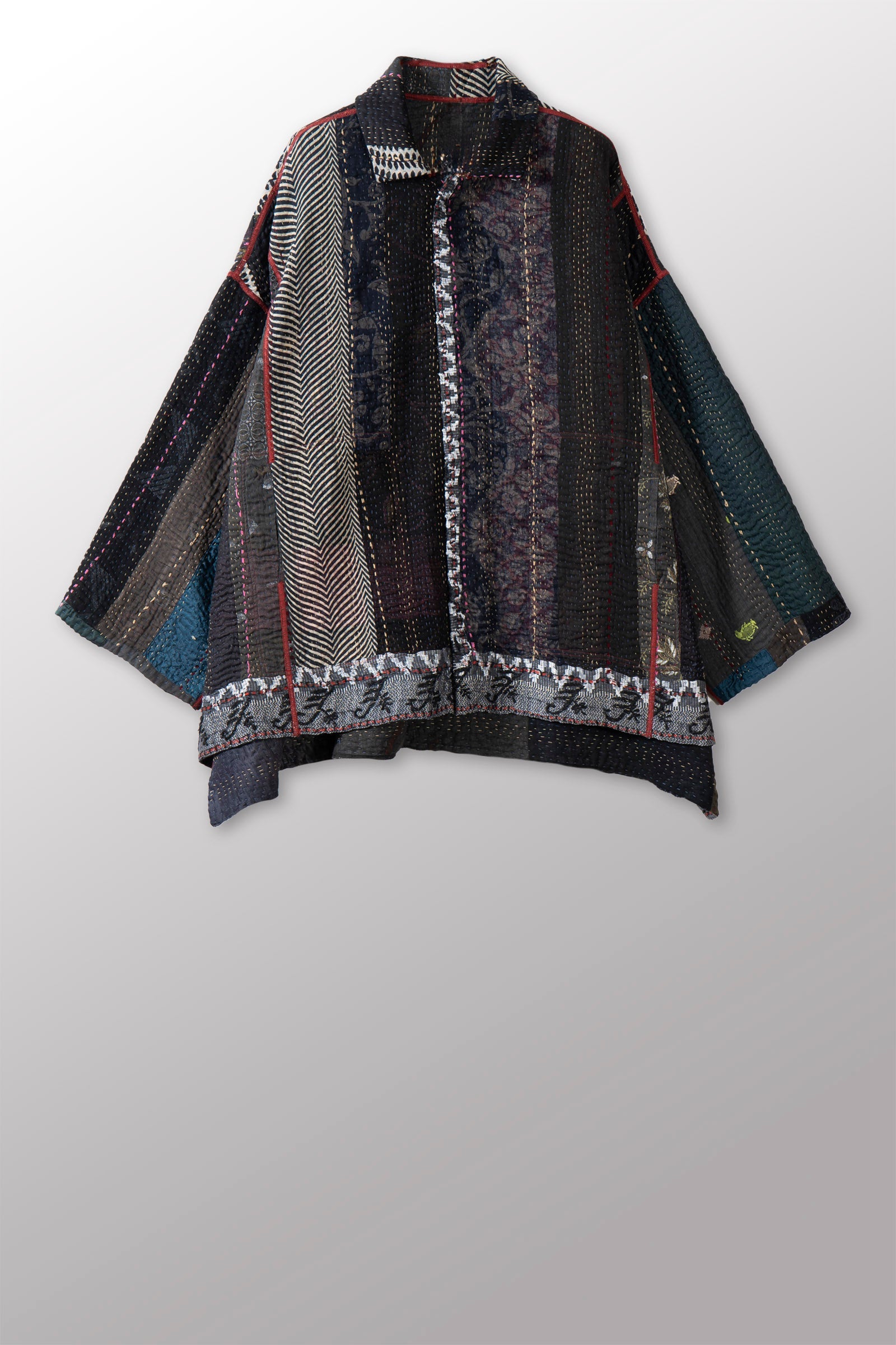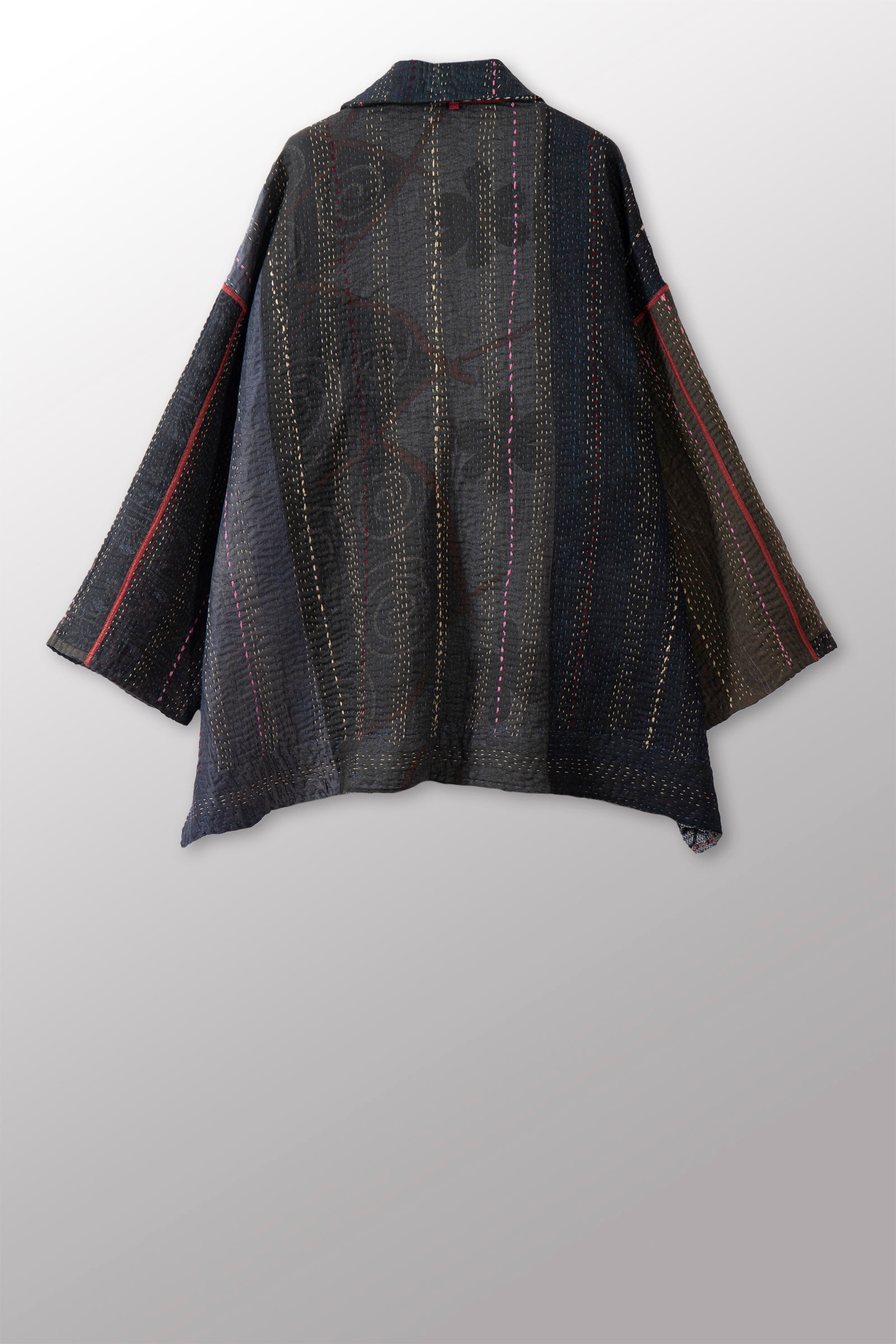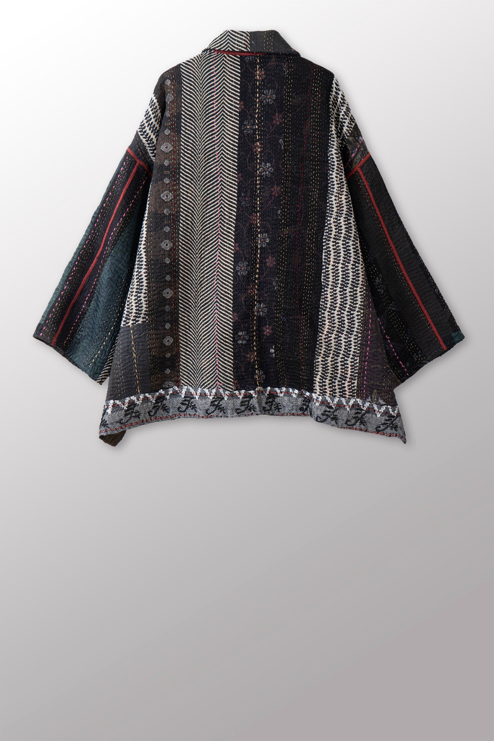 STRIPE RALLIS KANTHA OVERSIZED MINI COAT - pr4332-blk -