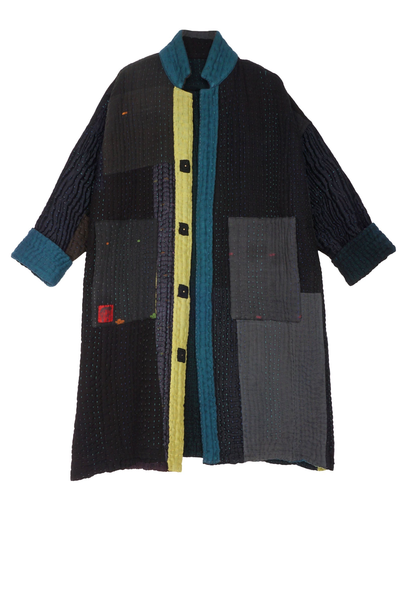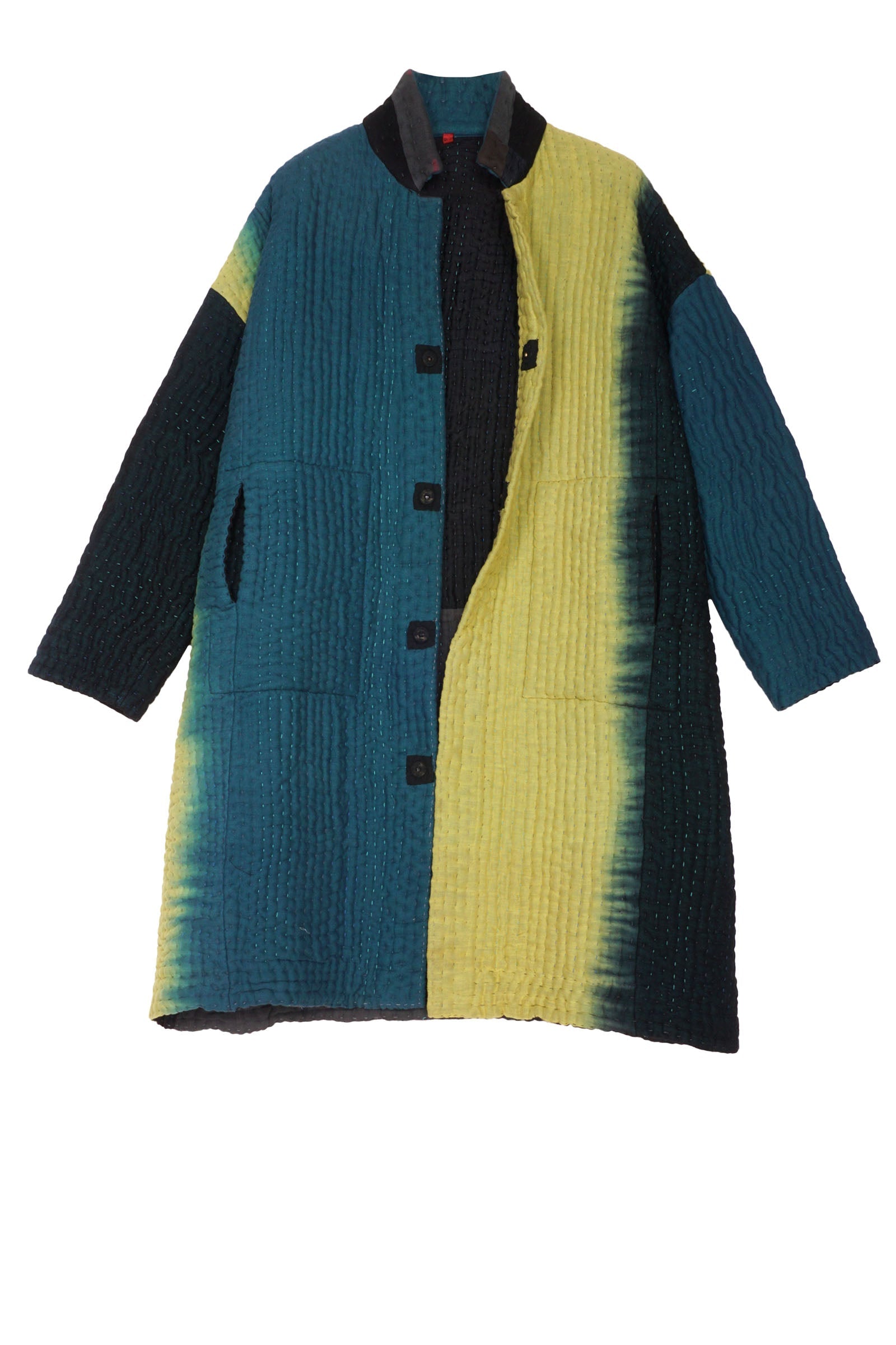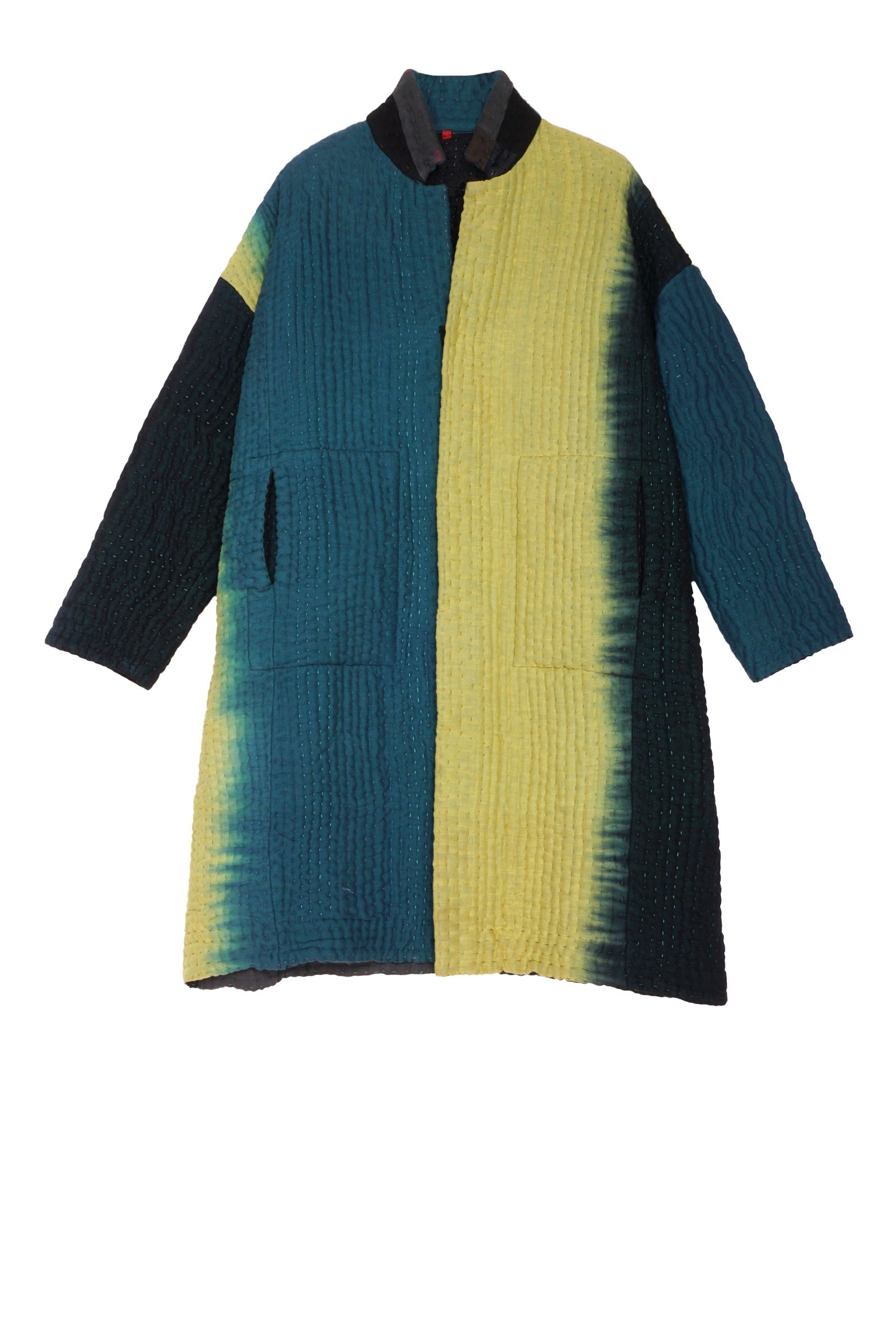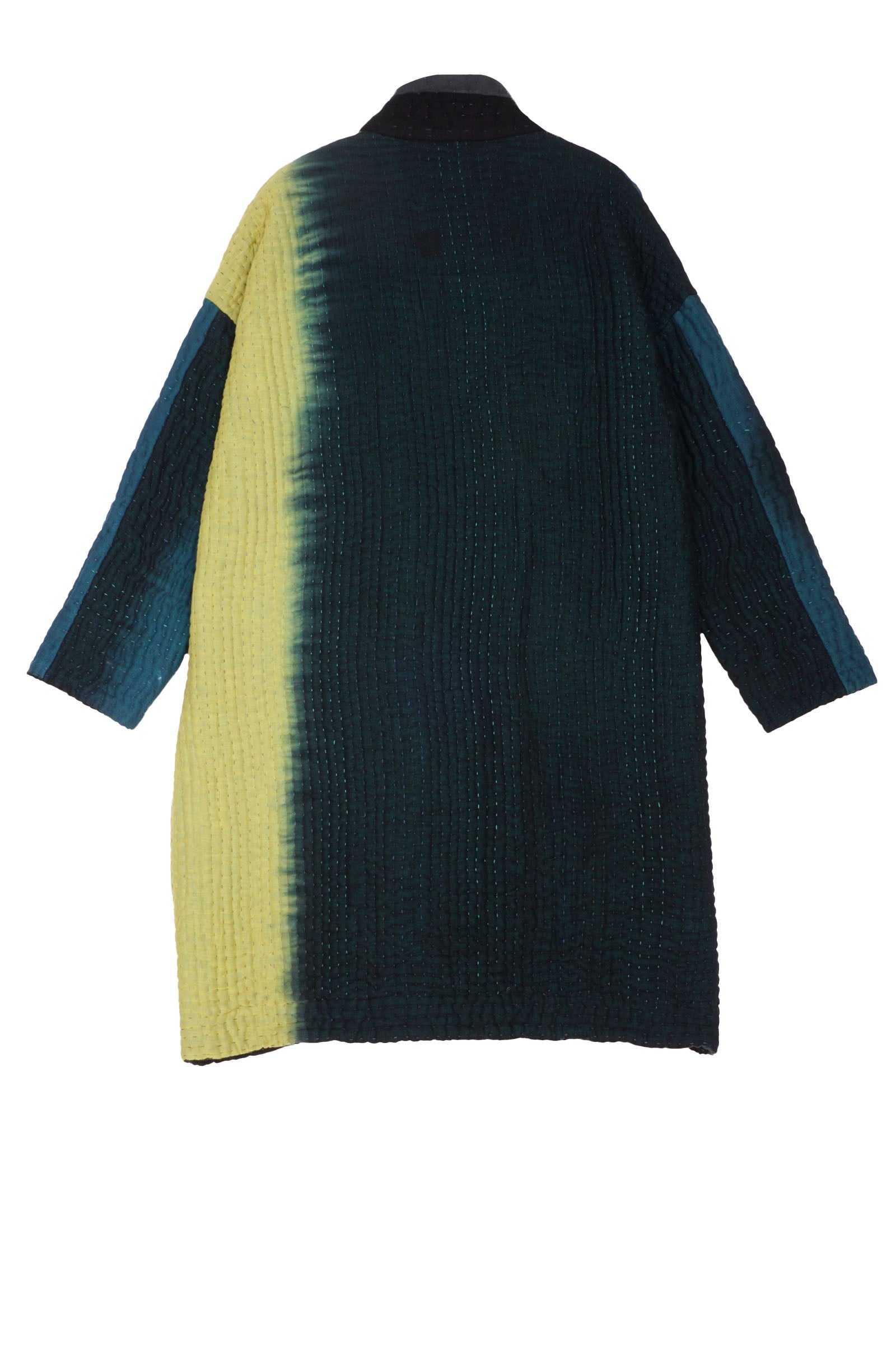 TEAL OMBRE AND PATCH KANTHA OVERSIZED MEDIUM COAT - up6331-blk -
