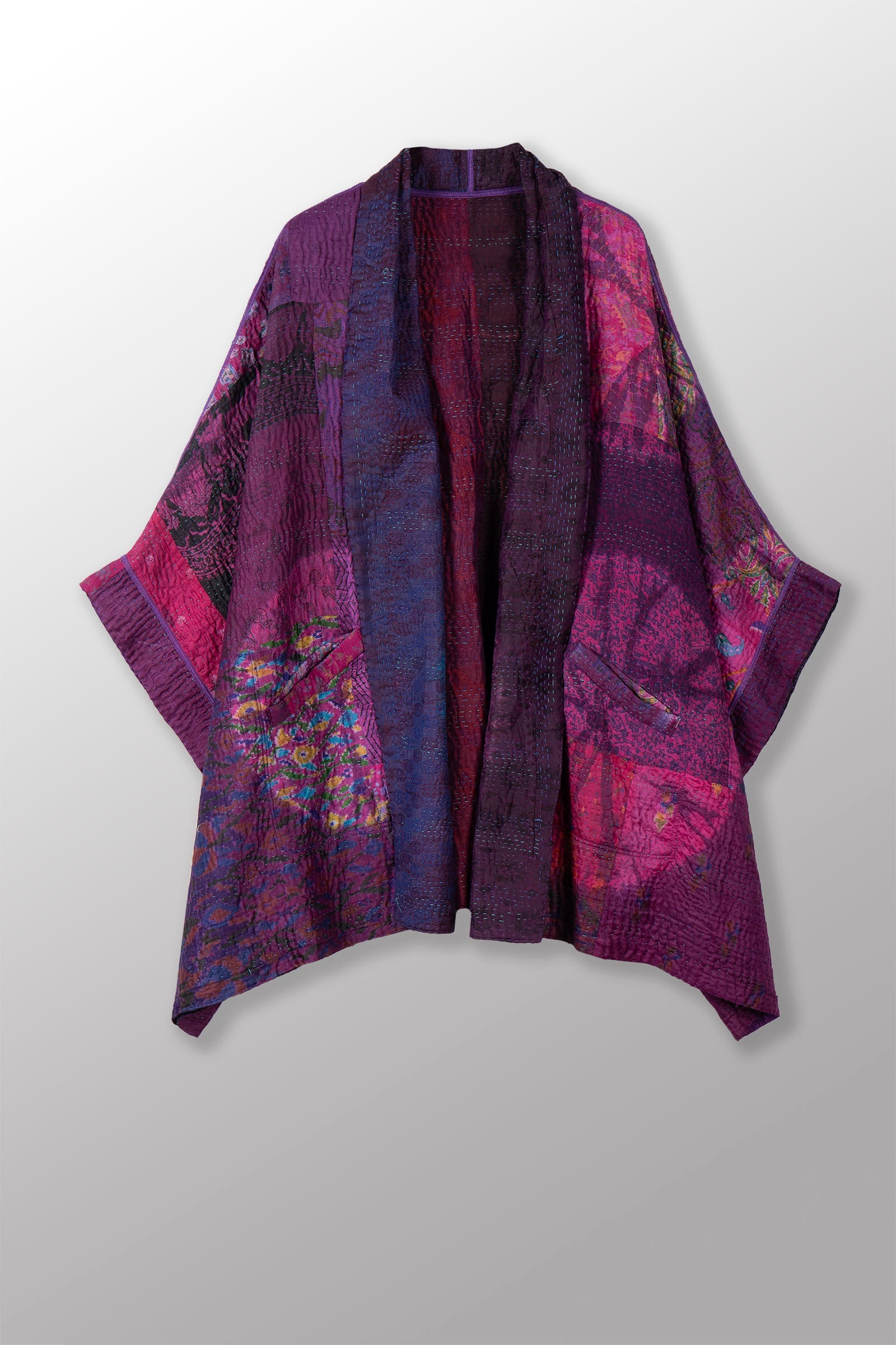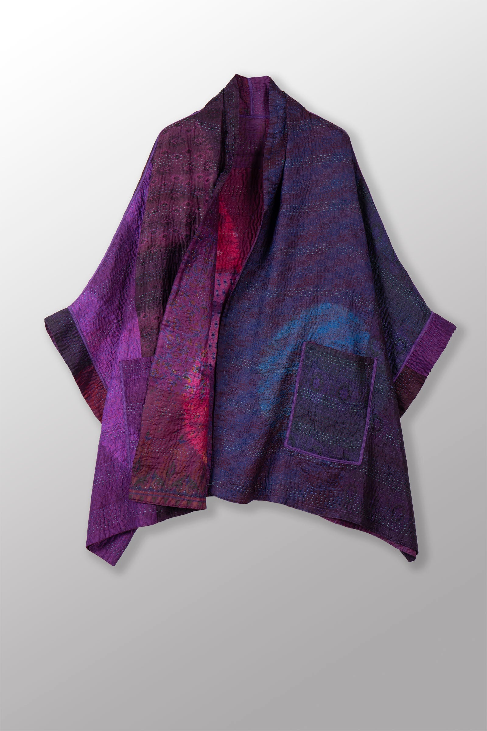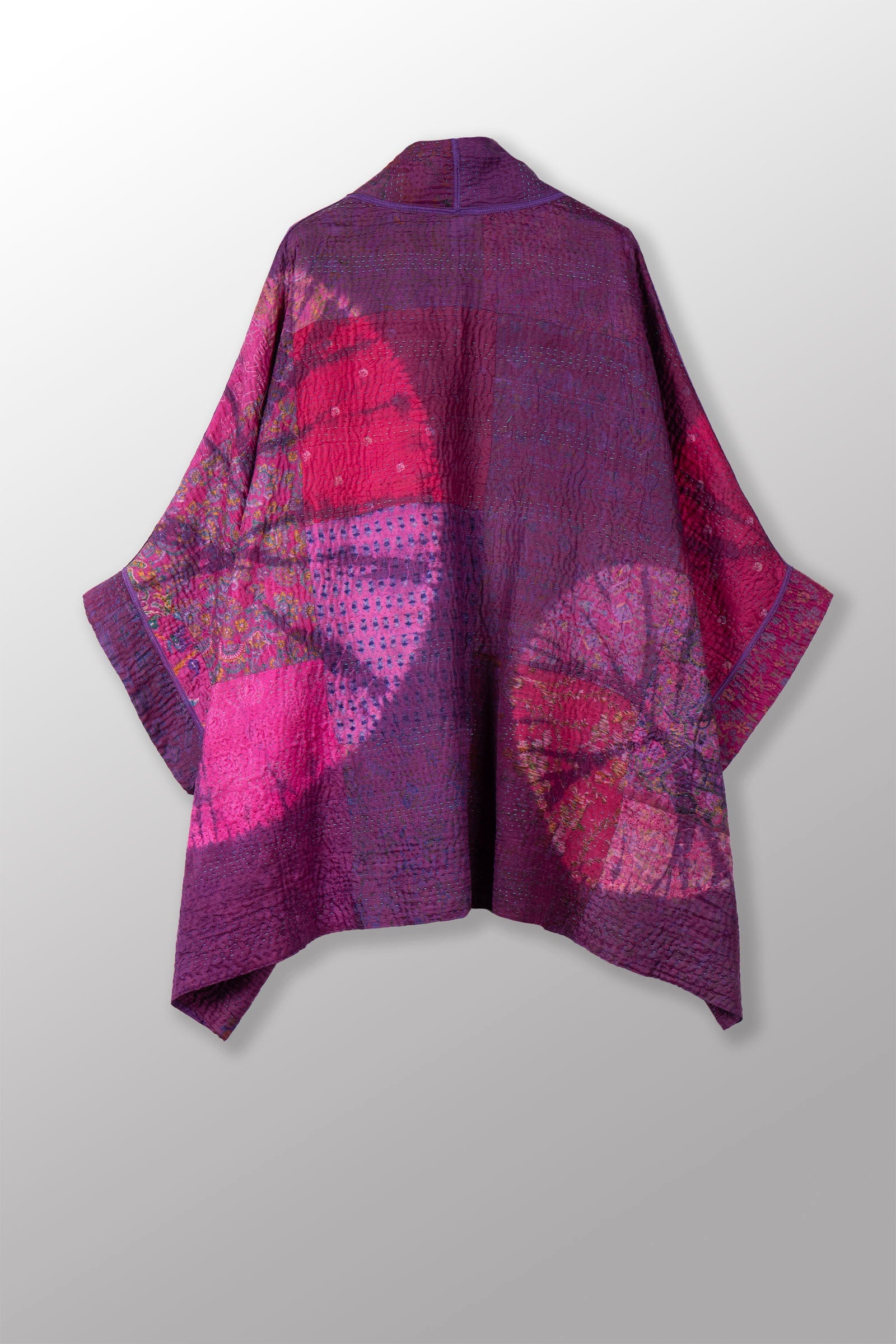 TIE DYE CIRCLE SHIBORI KANTHA DOUBLE COLLAR PONCHO - td4323-prp -