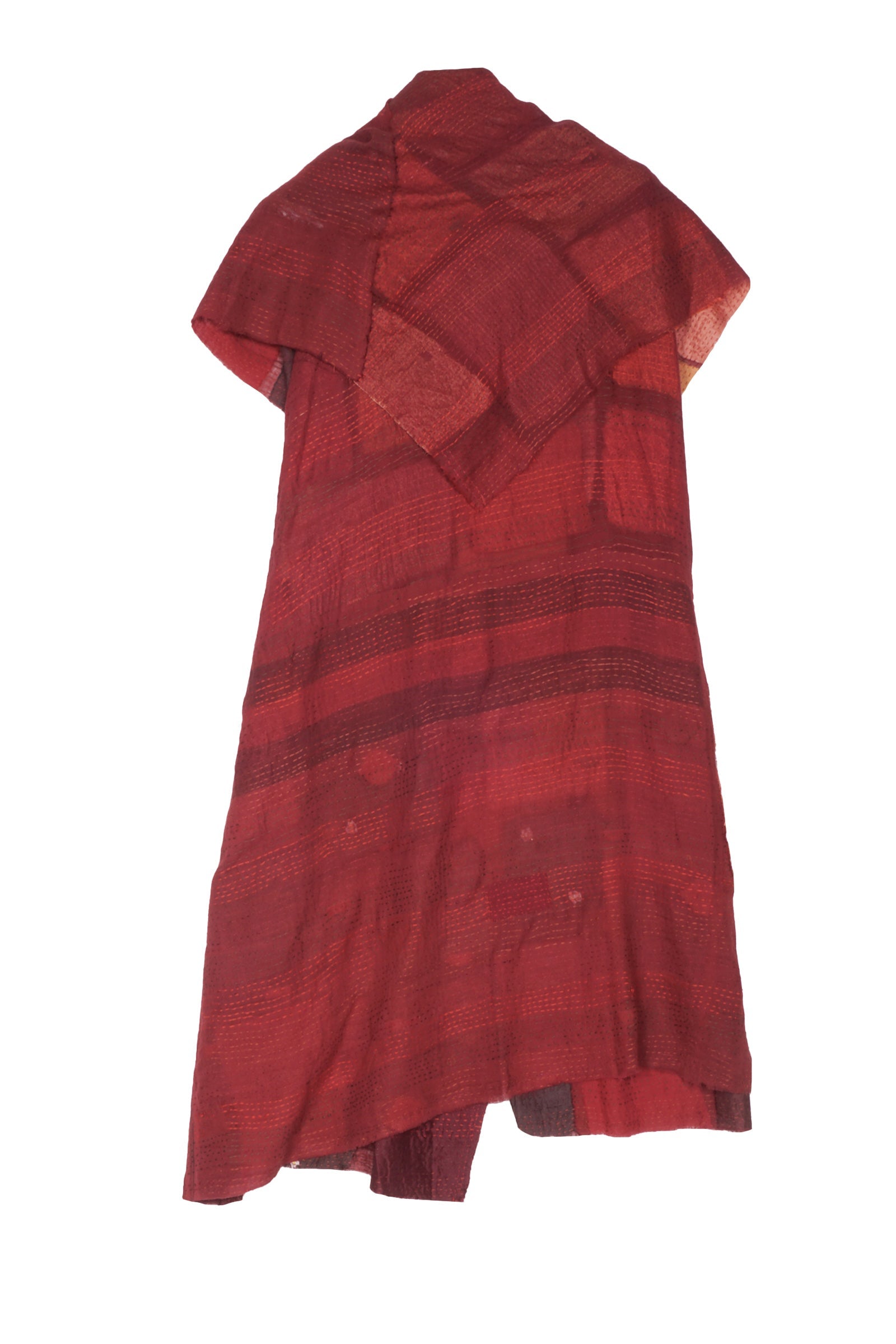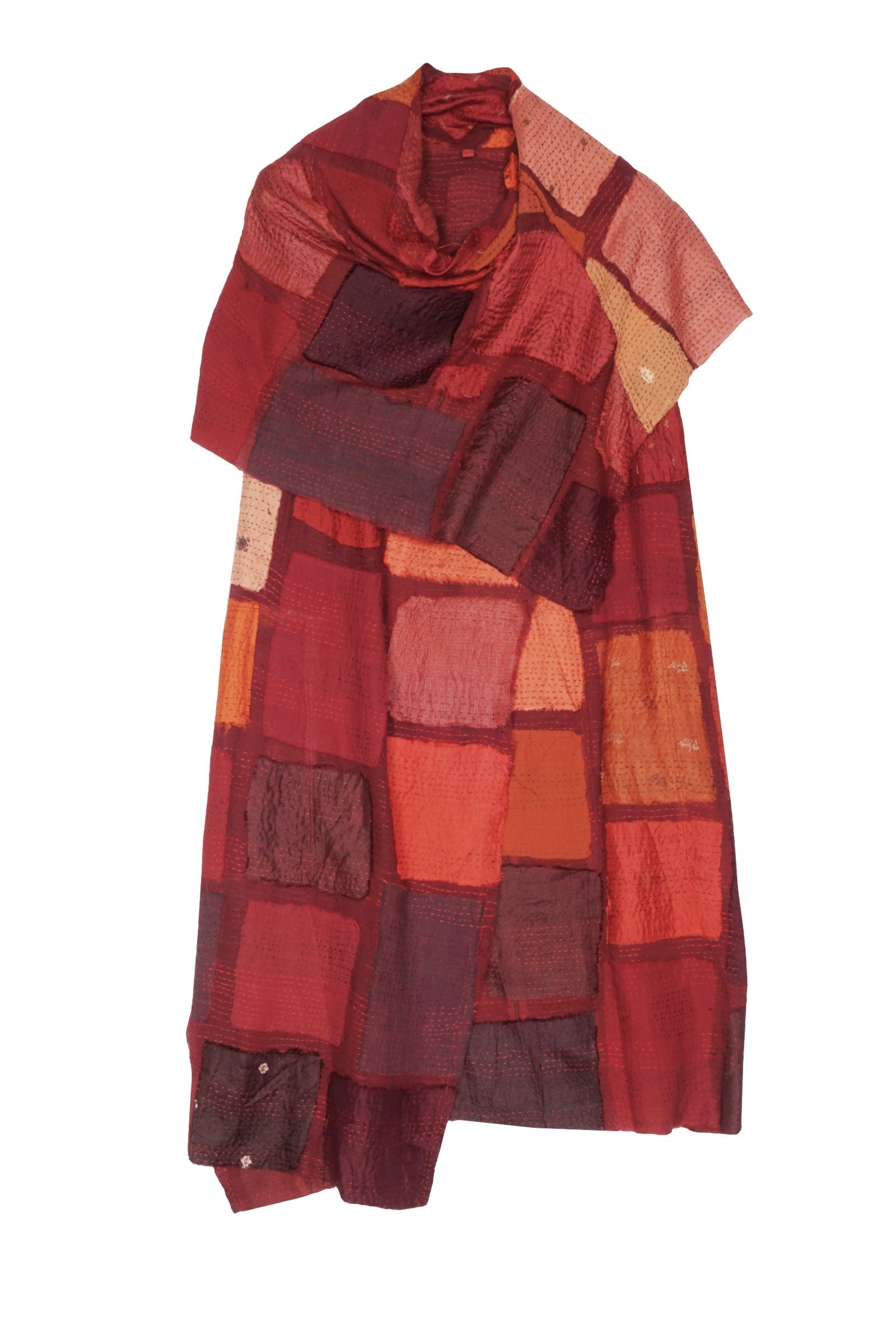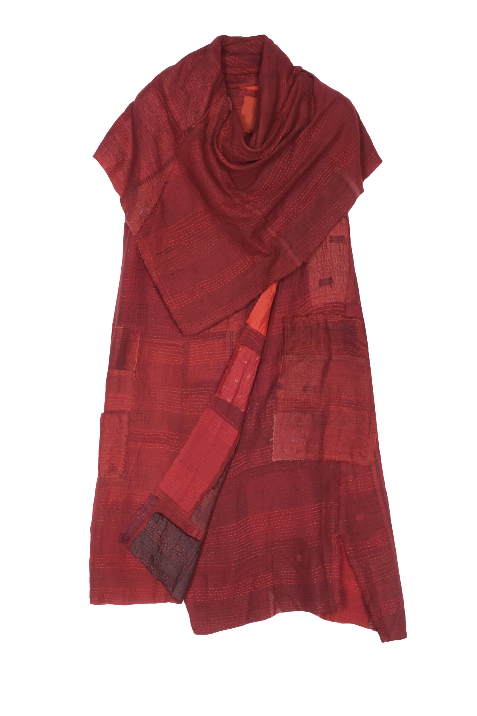 TONAL TILE PATCH KANTHA COWL NECK DRESS - tt2416-red -